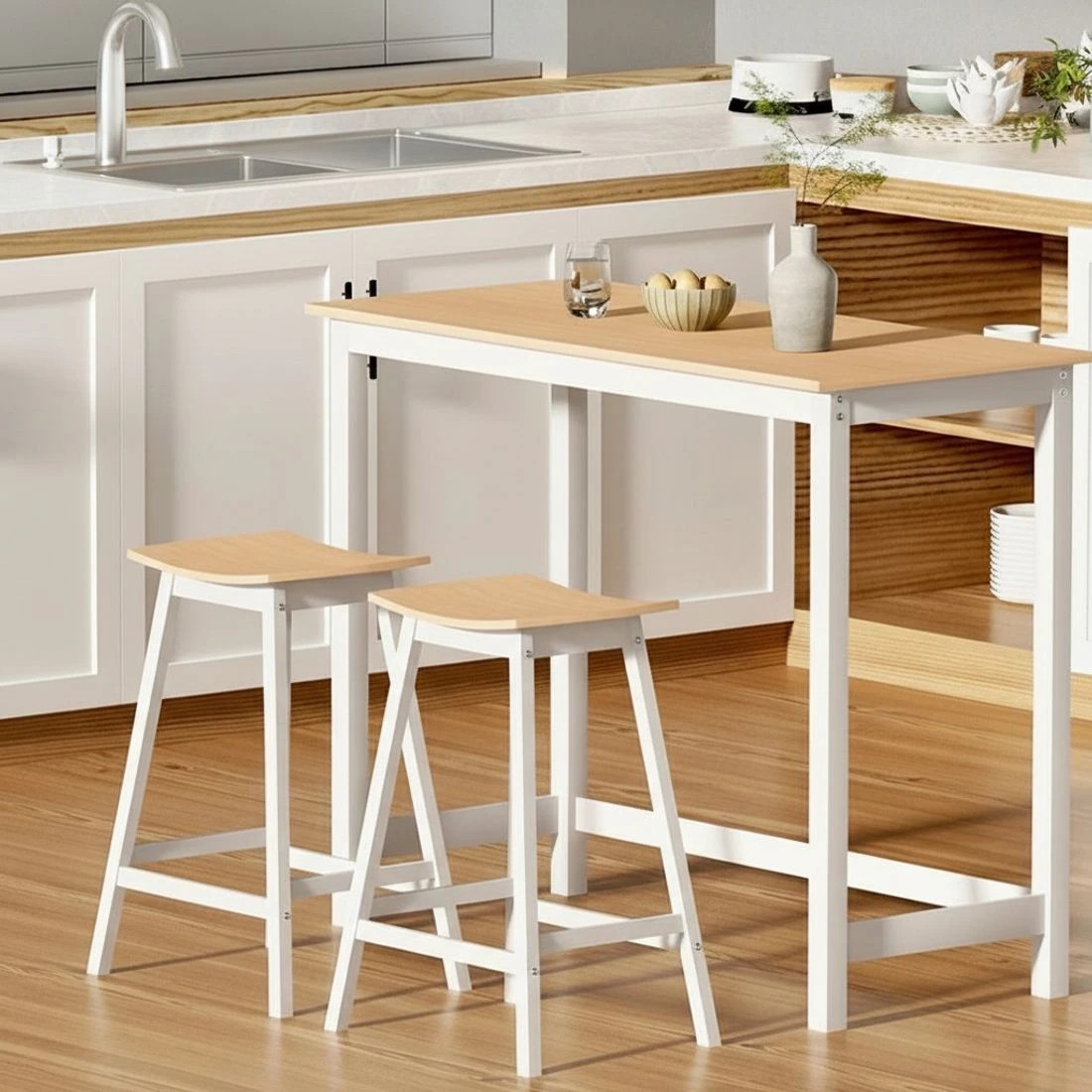 Artiss Ari Bar Table 108cm Rectangular Tall Pub Table Dining Bar Table Modern Wood Finish Sturdy Easy Assembly - Brown