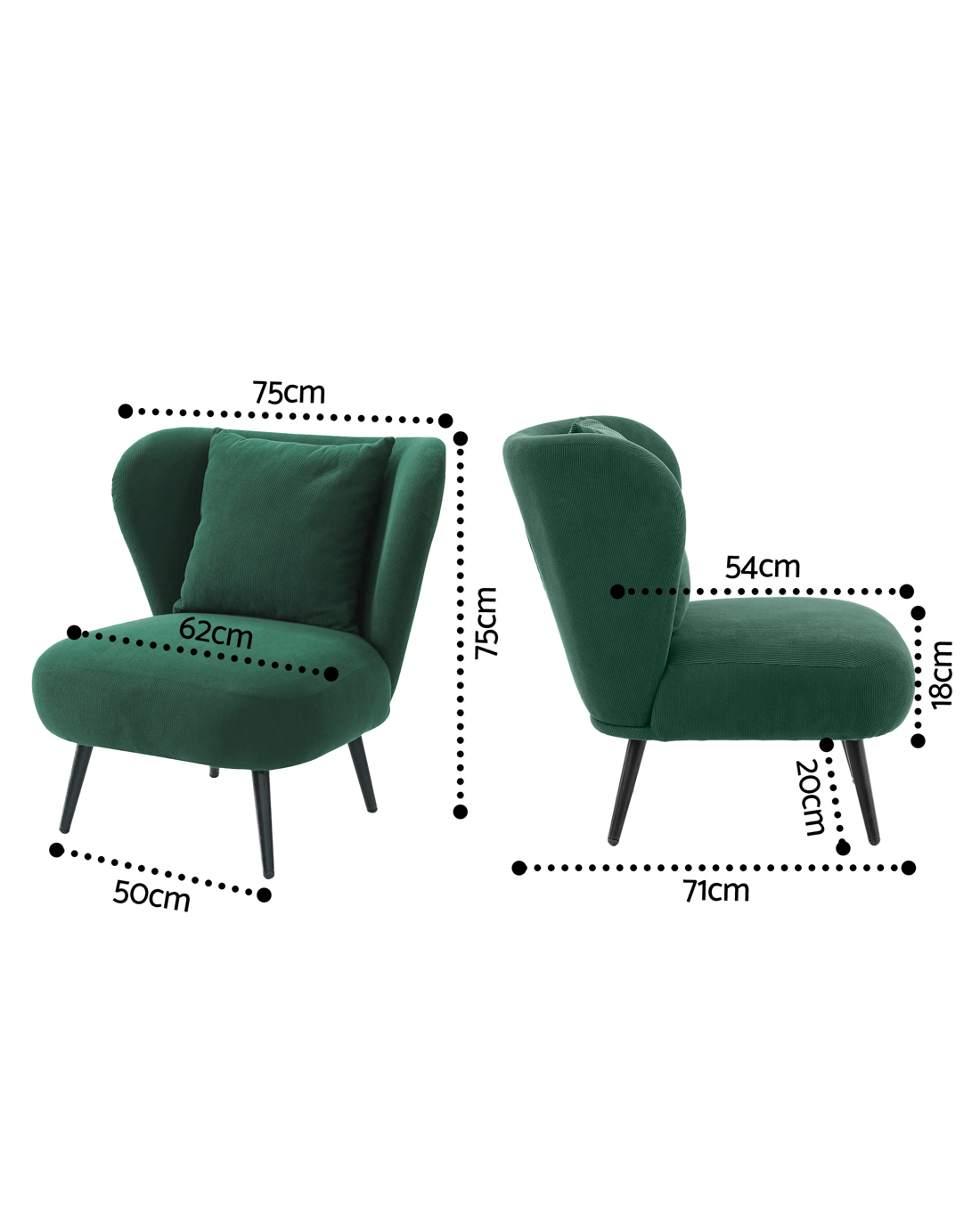 Artiss Armchair Accent Chair Lounge Tub Sofa Couch Corduroy Velvet - Green