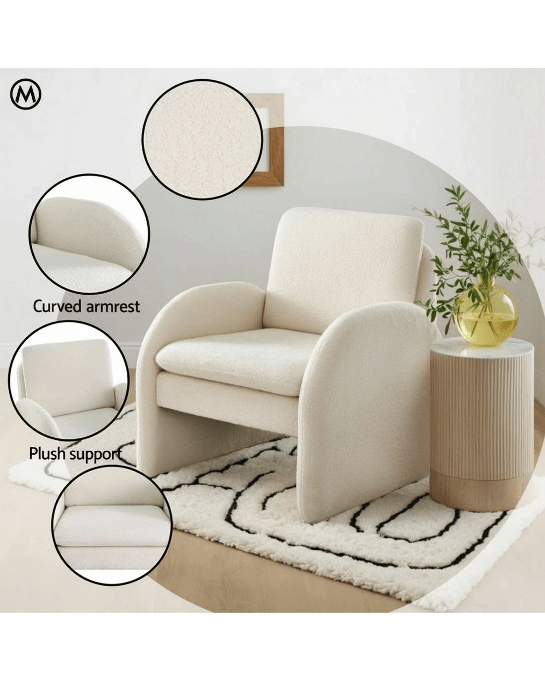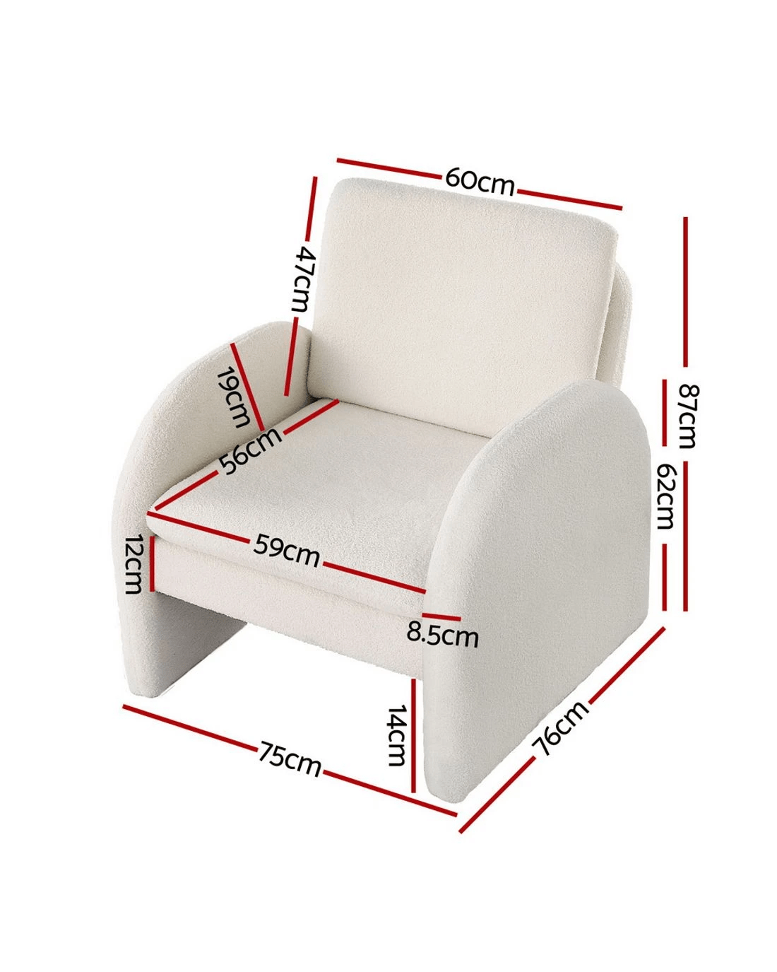Artiss Armchair Accent Chair Lounge Tub Sofa Couch Curved Arm Seat Boucle - White