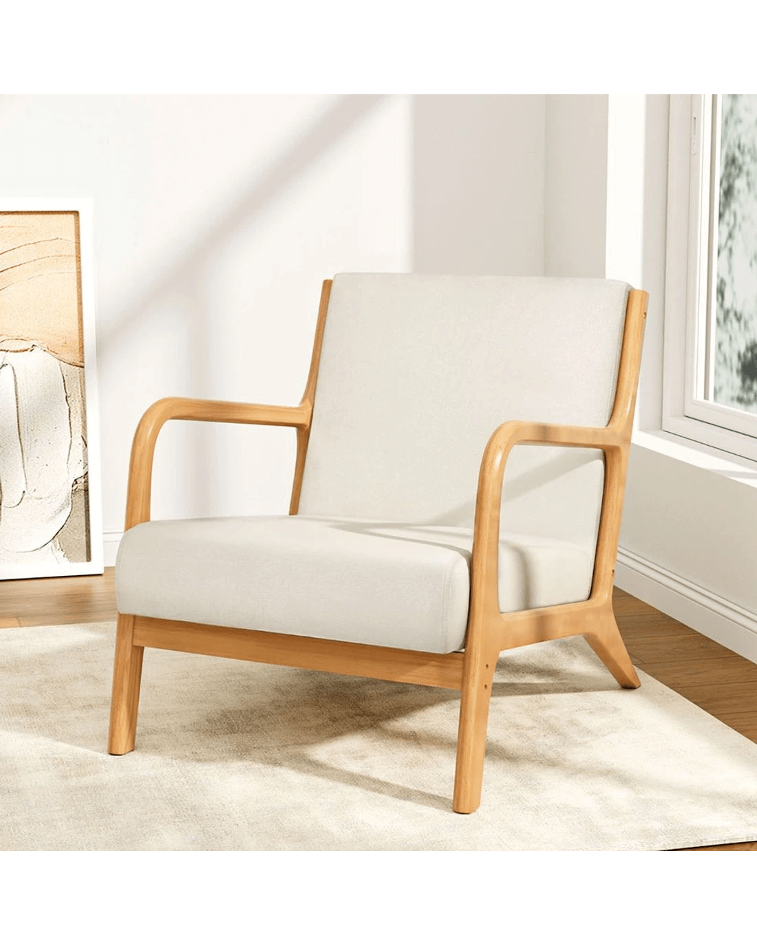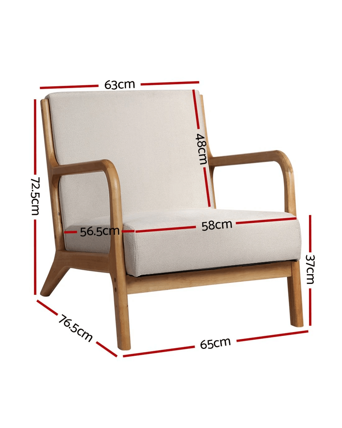Snuggle up and fall in love with our most eye-catching Artiss Olive Armchair. Not an ordinary one but stands out in every aspect, whether it's craftsmanship, style, upholstery, comfort, or quality that speaks for itself. It is something you would surely want to add to your space. It's perfect for your relaxation zone after a long, tiring day. Artiss Olive armchair offers a wide and welcoming seat for you to relax and is ideal for every corner of your space where you want to add soft and comfy touches. Crafted with great attention to details, this armchair feature stylish design, gorgeous upholstery with high-resilience foam, extra thick padding, and solid structure. It is quite sturdy and will withstand the test of time. Our Olive armchair is upholstered in premium soft faux fabric that epitomises elegance with its smooth appearance and adds a cosy and relaxing feel to your space. Its cosy and plush backrest creates a relaxing feel that makes you feel comfortable snuggled. Plus, the sturdy rubber wood legs with floor protectors will offer optimum stability and protection to your floors and add elegance to your space with its gorgeous presence. Our Olive armchair is super comfortable to relax on and possess stylish, elegant, and contemporary good looks, making it a must-have piece of furniture for your home.