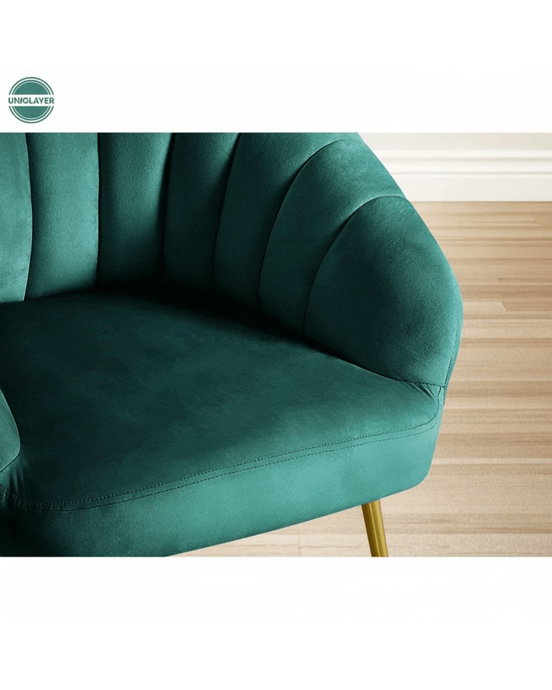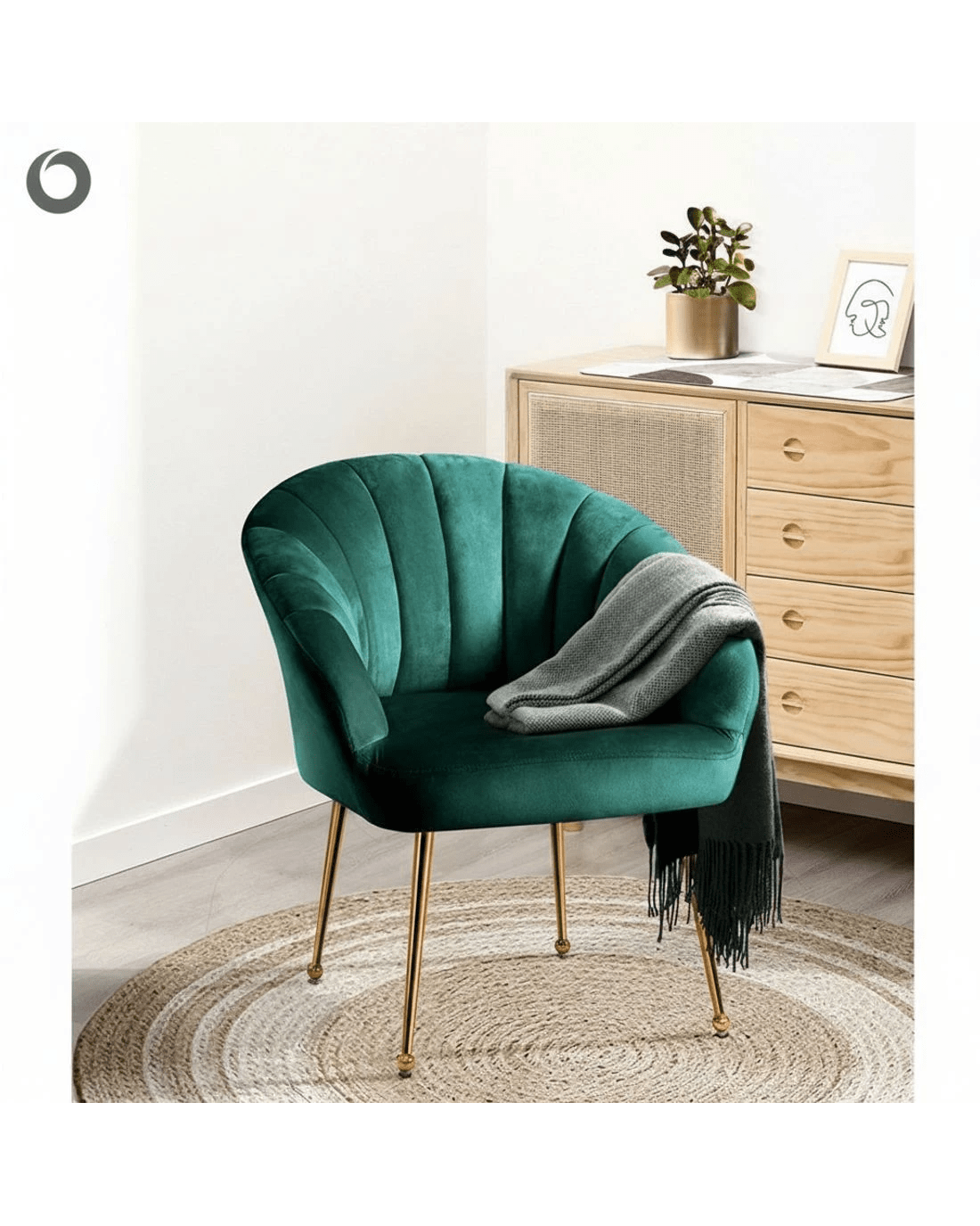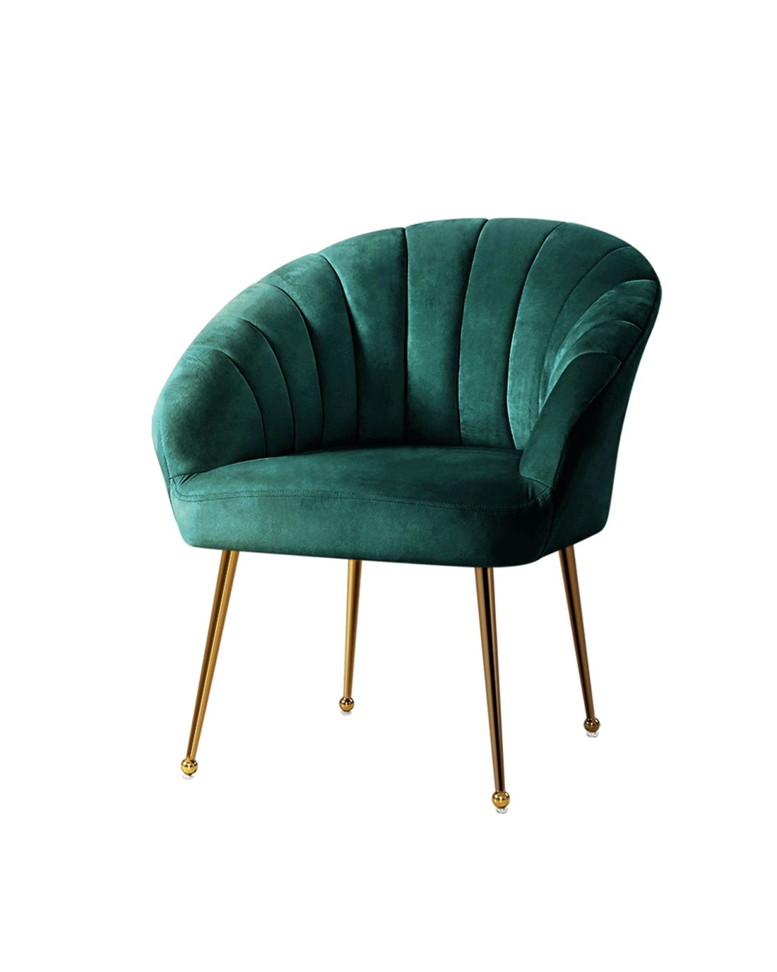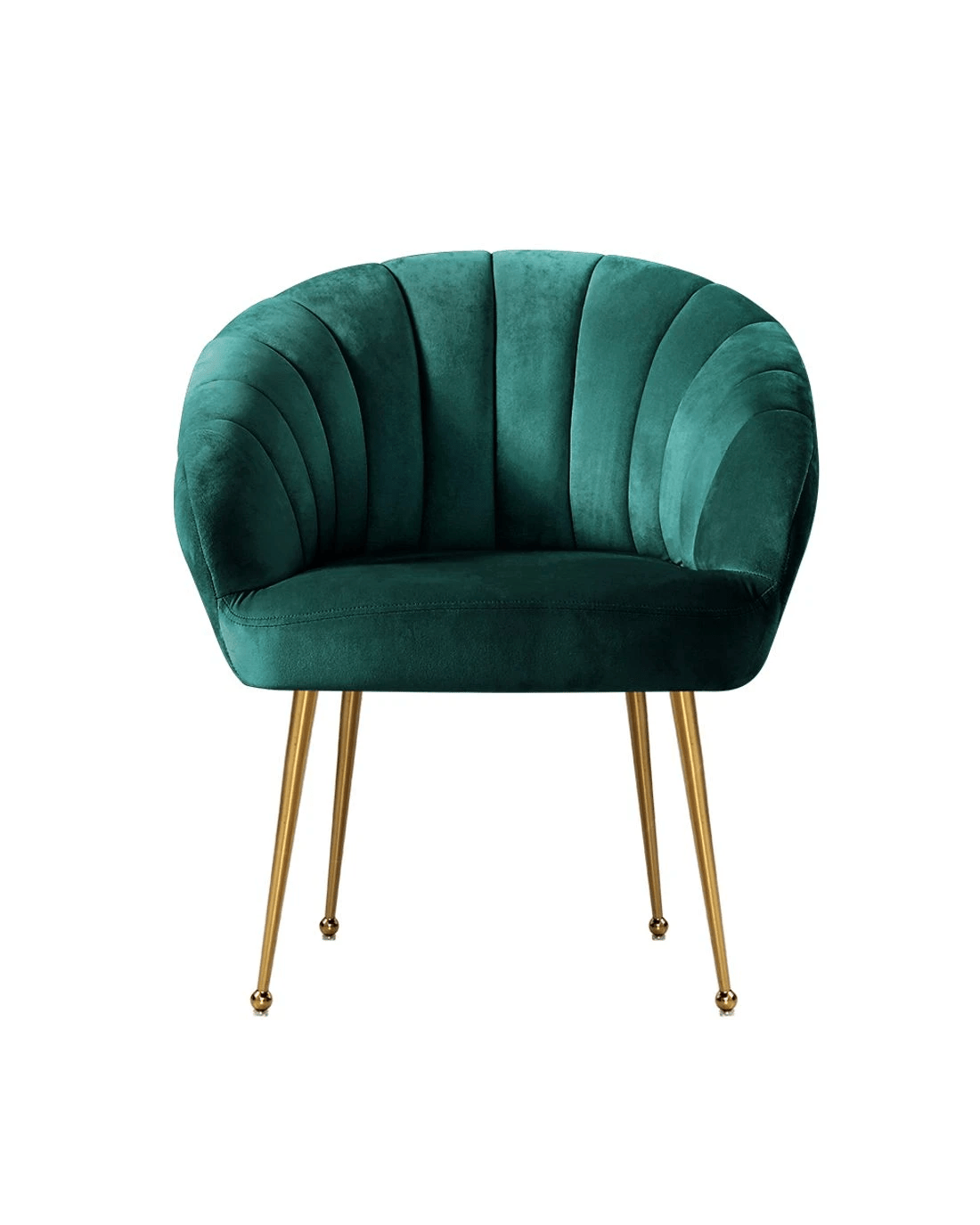 Artiss Eloise armchair offers a wide and welcoming seat for you to relax and is ideal for every corner of your space where you want to add soft and comfy touches. Crafted with great attention to details, this armchair feature solid wood construction with high resilience foam. It is quite sturdy and will withstand the test of time. Our Eloise armchair is upholstered in soft velvet fabric that epitomises luxury with its smooth and shiny appearance and adds a cosy and relaxing feel to your space. Plus, the splayed golden metal legs with floor protectors will offer optimum stability and protection to your floors and add a luxurious charm to your space with its gorgeous presence.
