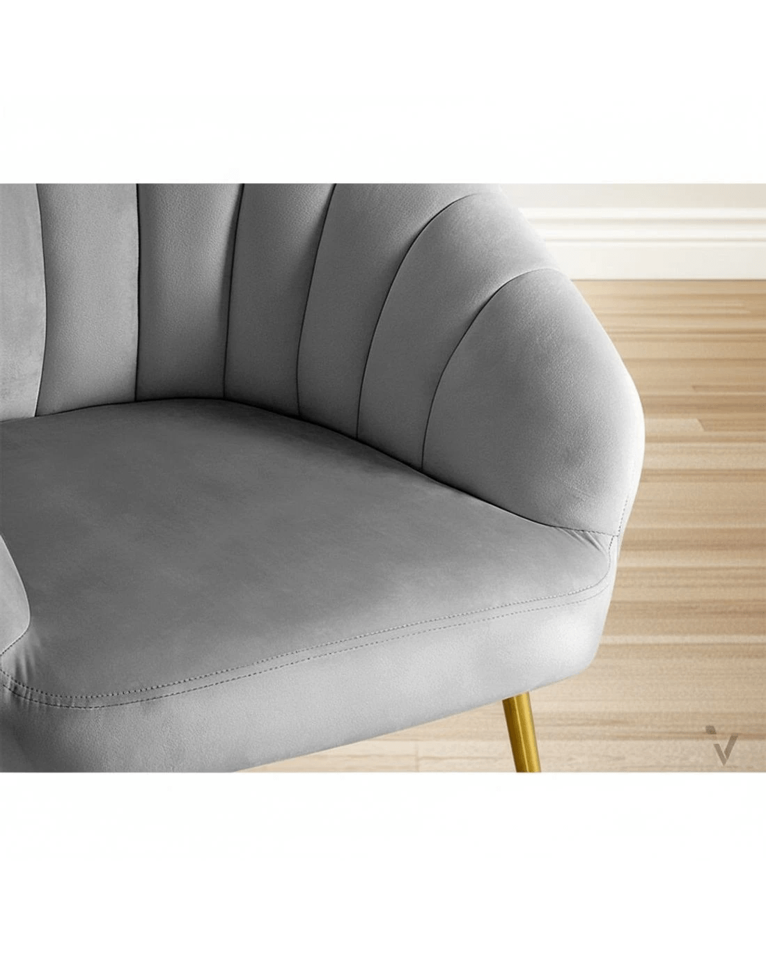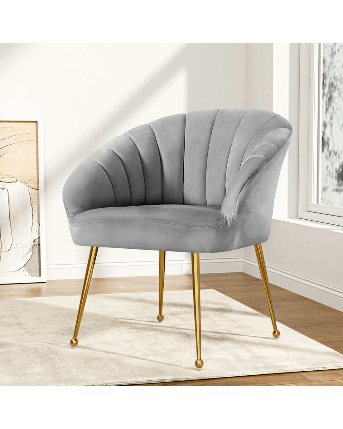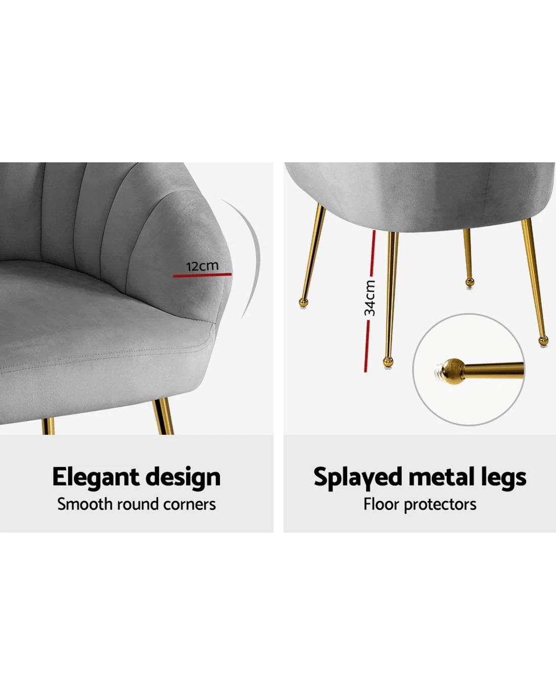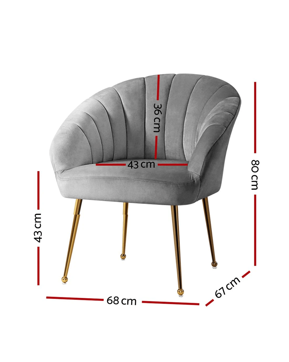 Artiss Eloise armchair offers a wide and welcoming seat for you to relax and is ideal for every corner of your space where you want to add soft and comfy touches. Crafted with great attention to details, this armchair feature solid wood construction with high resilience foam. It is quite sturdy and will withstand the test of time. Our Eloise armchair is upholstered in soft velvet fabric that epitomises luxury with its smooth and shiny appearance and adds a cosy and relaxing feel to your space. Plus, the splayed golden metal legs with floor protectors will offer optimum stability and protection to your floors and add a luxurious charm to your space with its gorgeous presence.