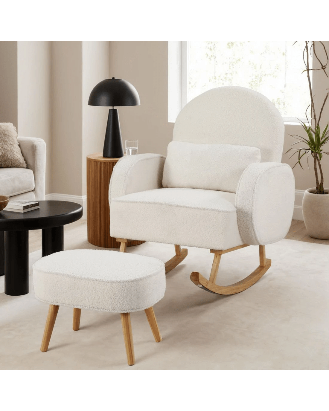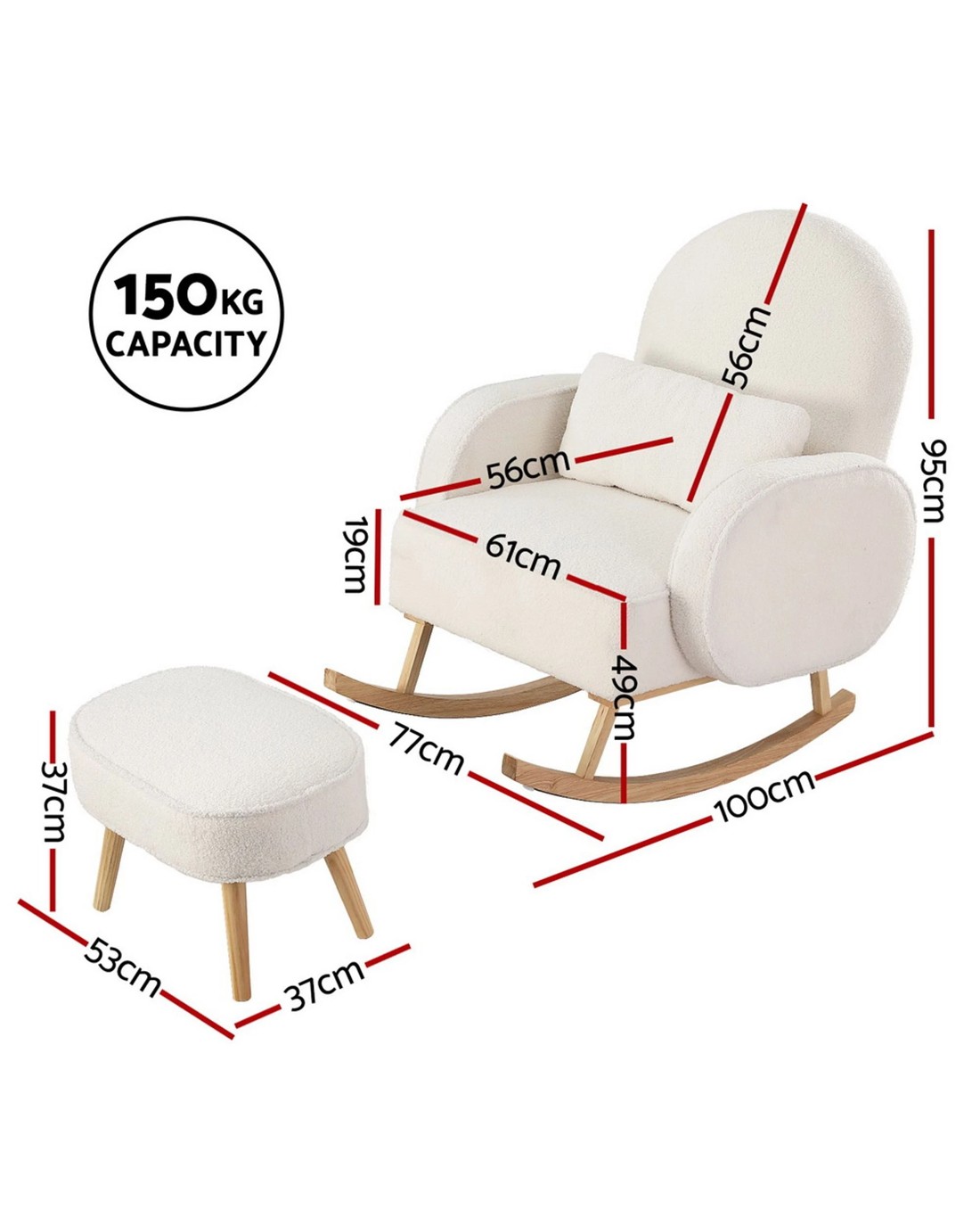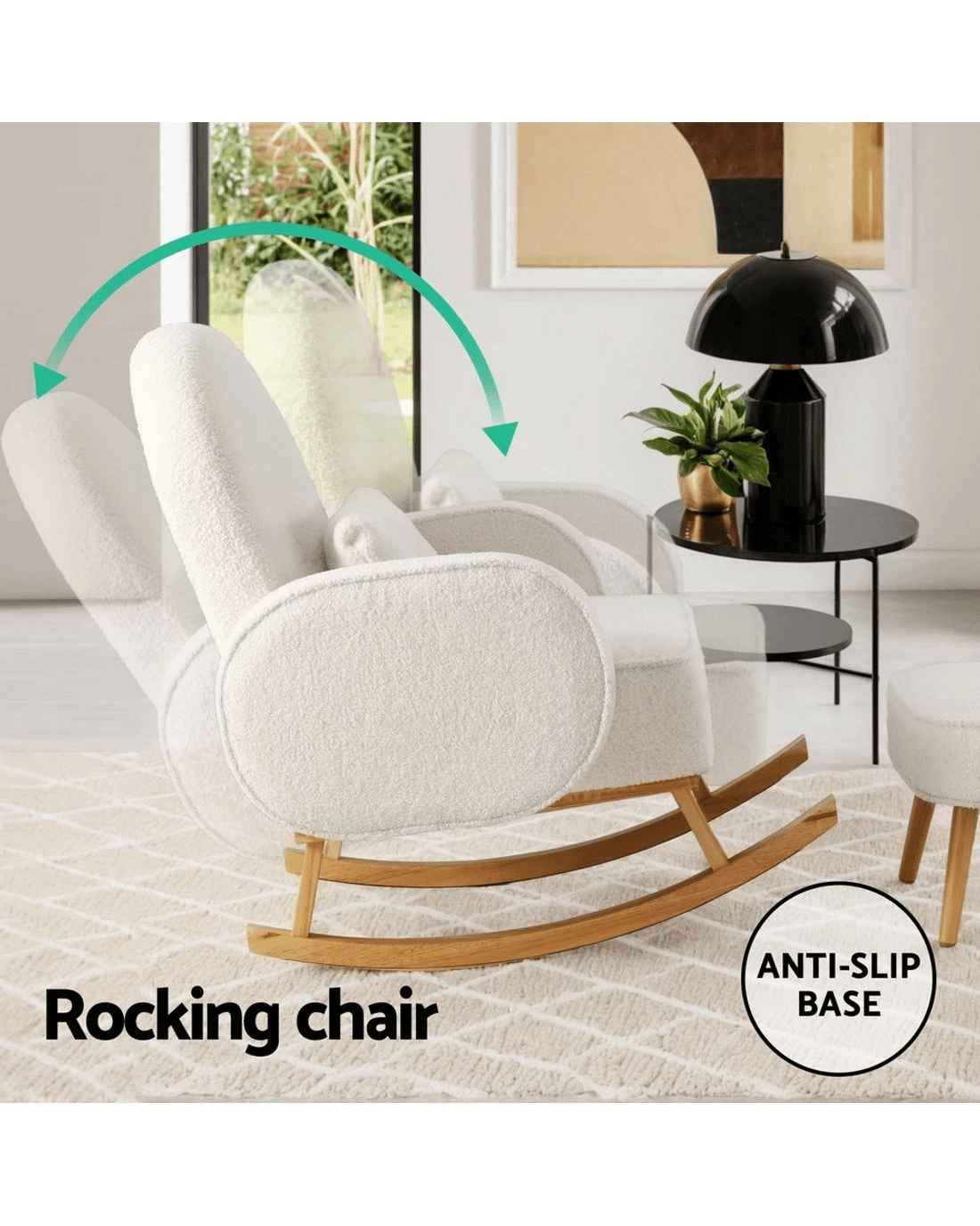 Artiss Armchair Rocking Chair Ottoman Lounge Footrest Round Nursing Boucle - White