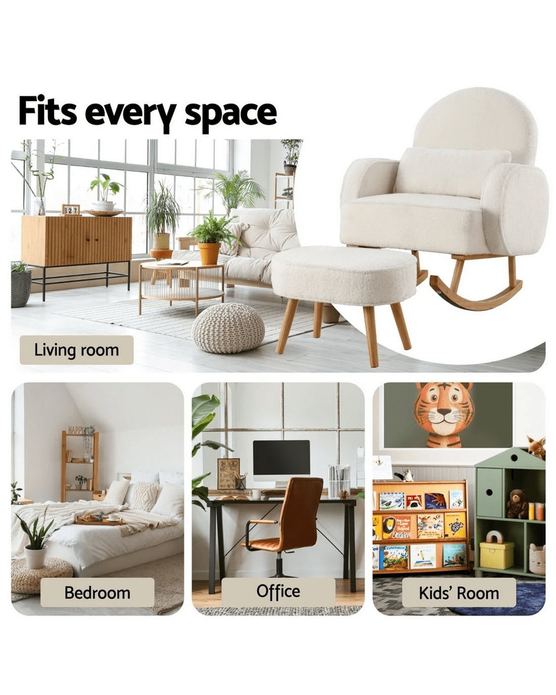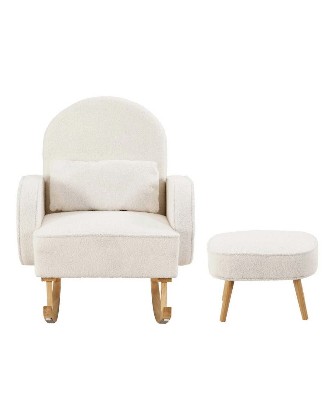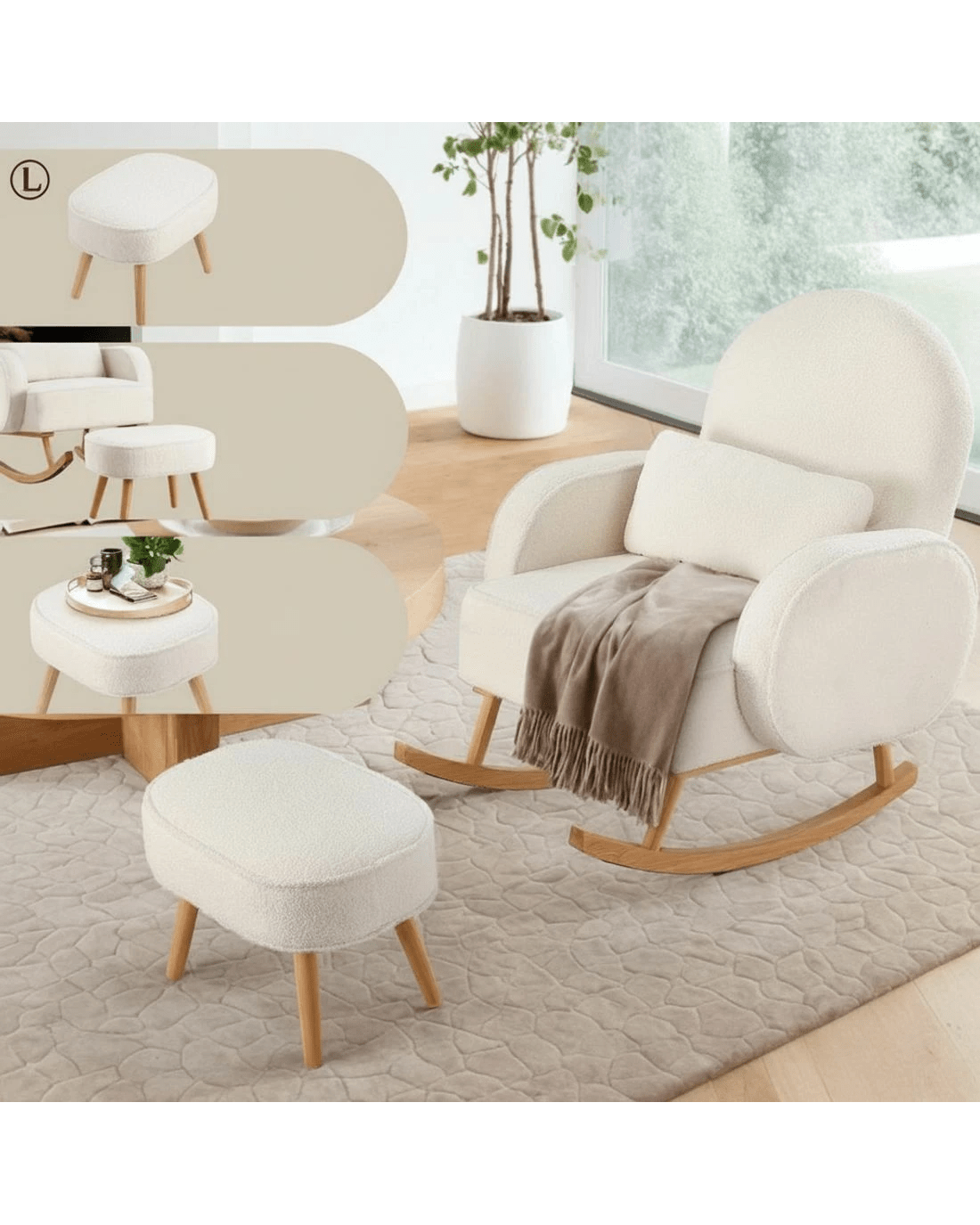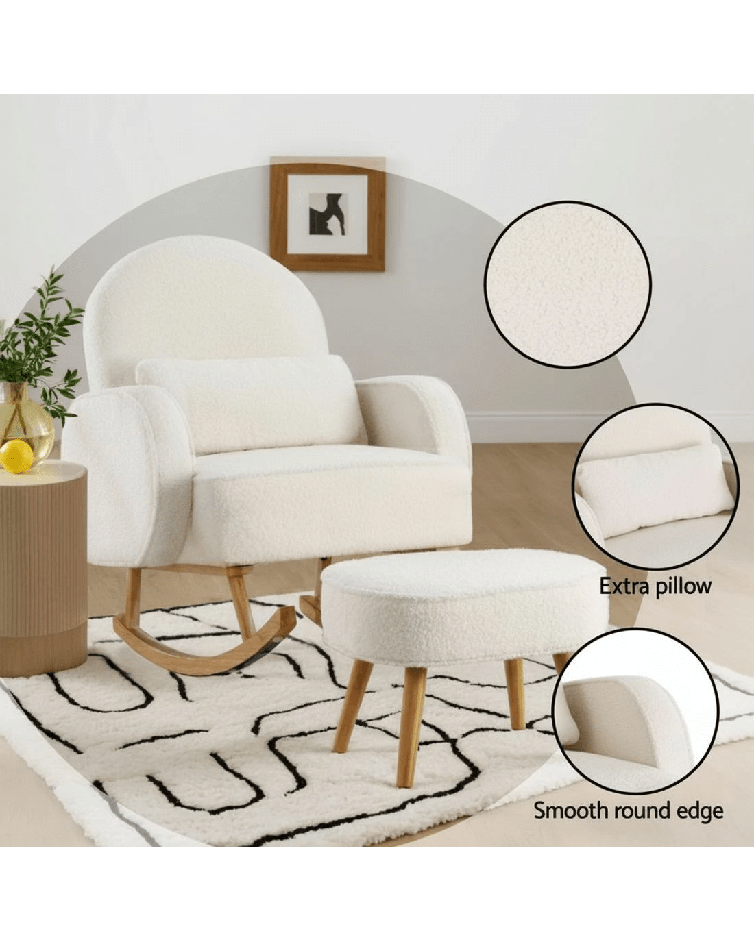 Artiss Armchair Rocking Chair Ottoman Lounge Footrest Round Nursing Boucle - White