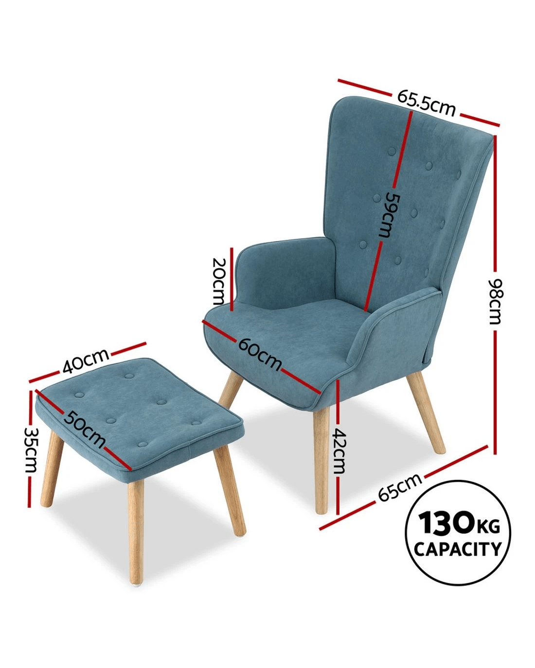 Made with the highest quality craftsmanship, nothing can get you a heavenly comfortable feeling any closer than this. It features a Scandinavian-inspired style that will effortlessly enrich your living room decor. Furthermore, it is available in four gorgeous colours. So style the way you want to achieve the desired look. The armchair is upholstered in premium velvet fabric with a rich high resilience foam padding for comfort, and the tufted design also adds extra elegance. Likewise, the ottoman also shares the same attributes. Not least, the sturdy rubber wood legs are splayed to give this ensemble better support and durability, as well as a unique stance from any angle.
