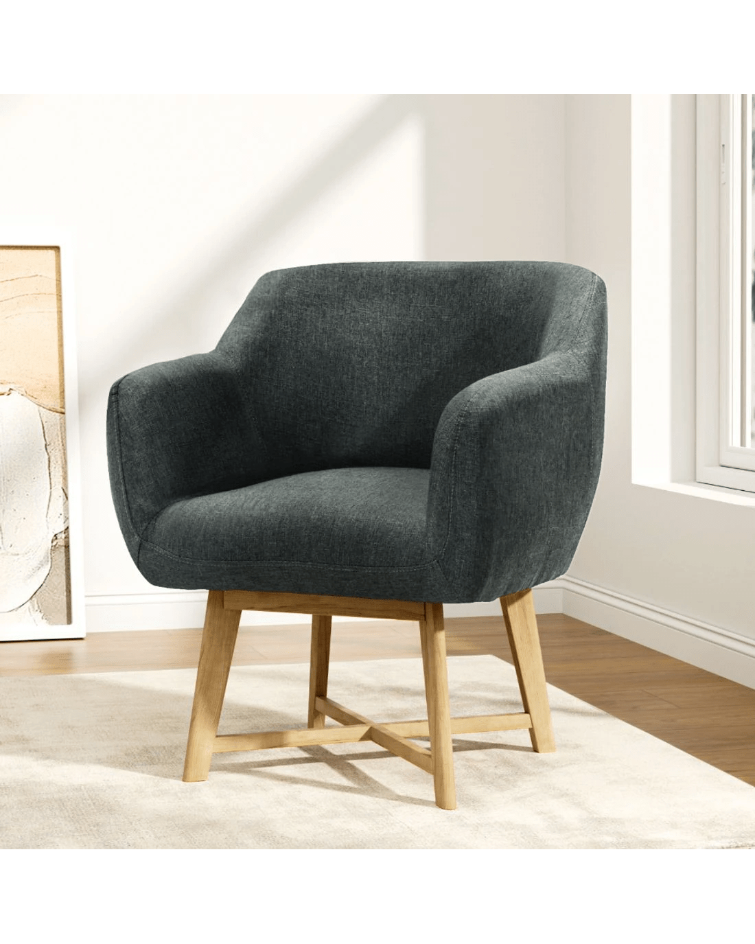 The Artiss Aston Armchair is as comfortable and as charming as it looks. With its thick padding of high resilience foam and faux linen upholstery, the armchair is perfect as a reading chair or a favourite relaxation seat. The criss-cross gives the chair loads of character as well as providing a very stable base. Not least, the workmanship is meticulous with the fluid corners and solid rubber wood frame. The Aston armchair will blend well with any setting with its neutral grey and natural wood hues.