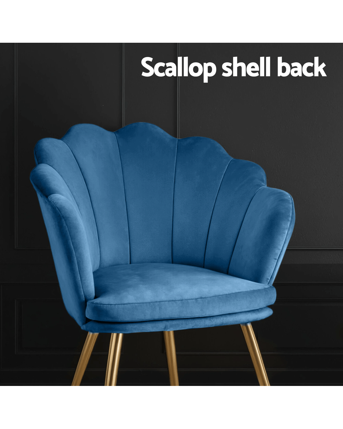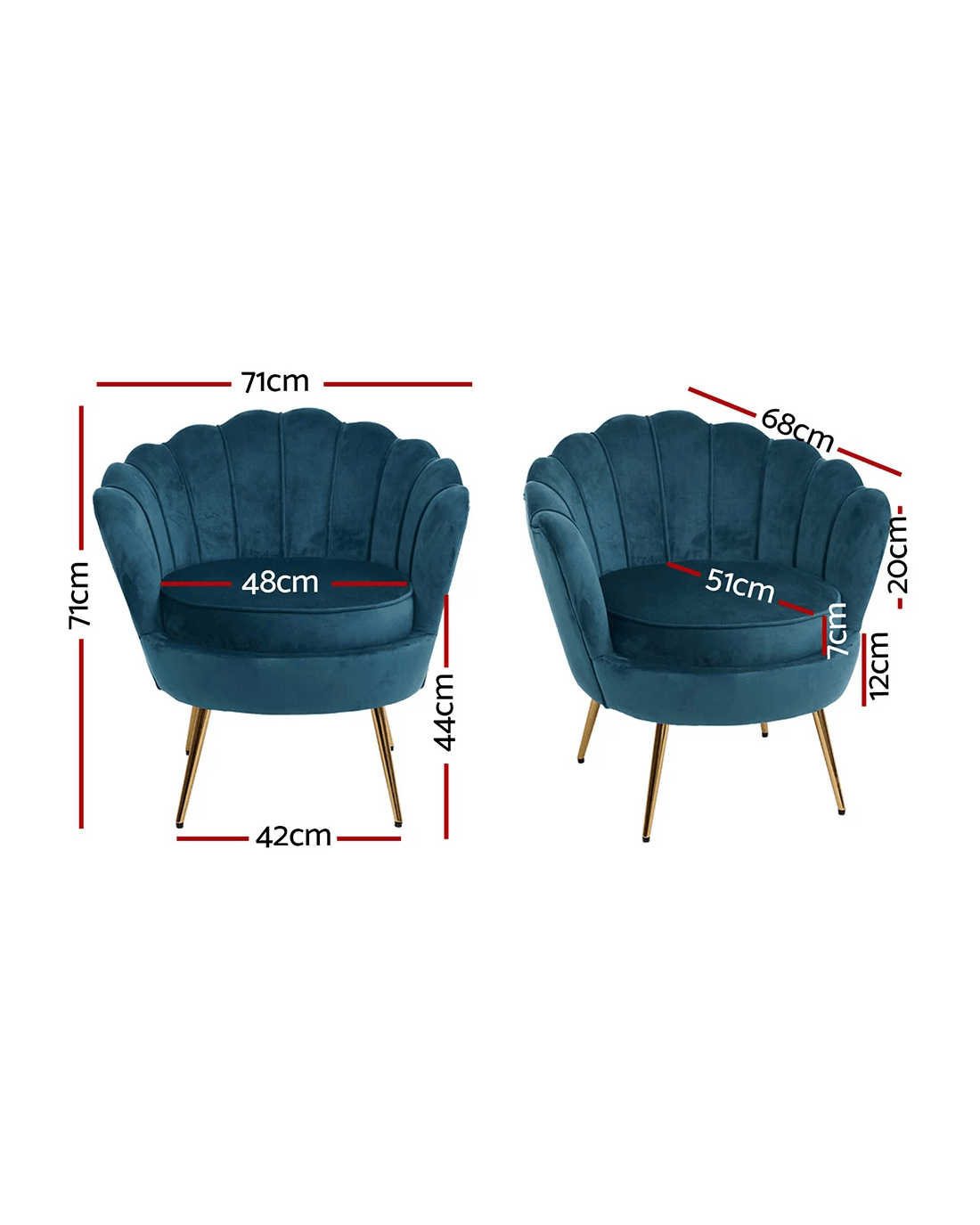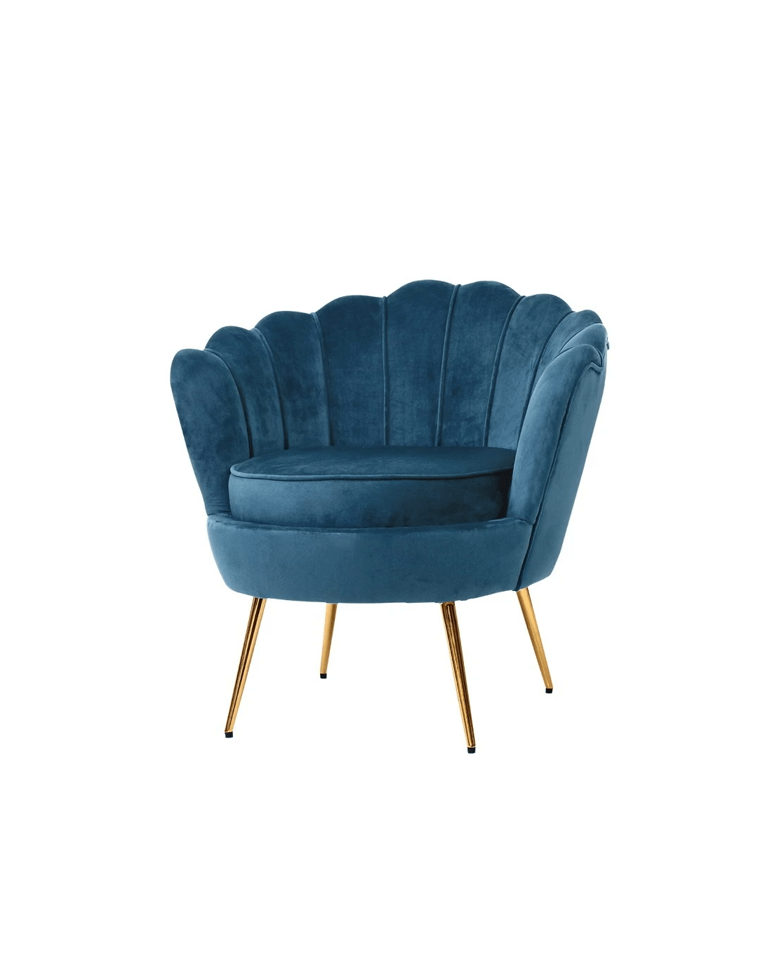 Iconic design. Timeless appeal. Our Artiss Armchair is the epitome of trendsetting style designed for the bold and passionate. With its thick padding of high resilience foam and velvet fabric upholstery, the armchair is perfect as a reading chair or a favourite relaxation seat. The vintage-style scallop shell back wraps around and hugs your body to provide perfect support and comfort. The splayed metal legs in glamorous gold give the armchair loads of character as well as providing a very stable base. Not least, the workmanship is meticulous with the fluid corners and sturdy wooden frame. The armchair will blend well with any setting from classic to contemporary and will also soften the flow of rooms with angular furniture and accents.