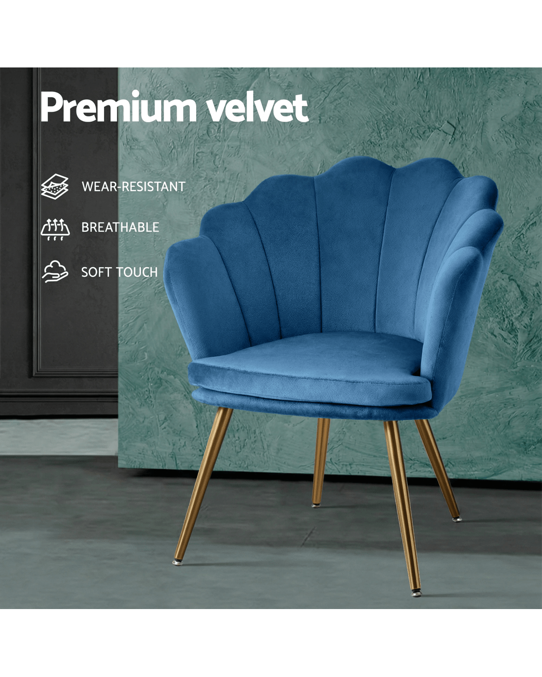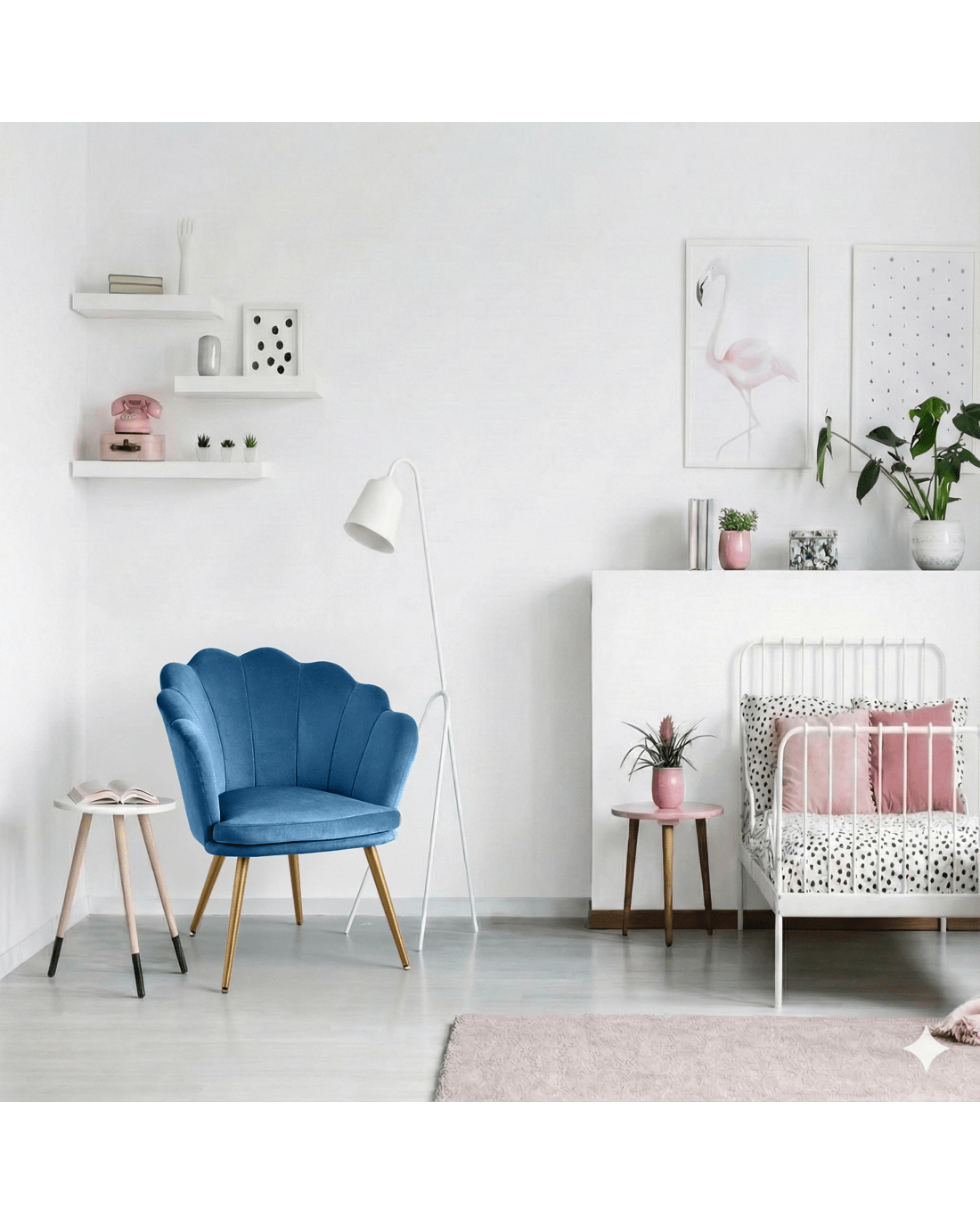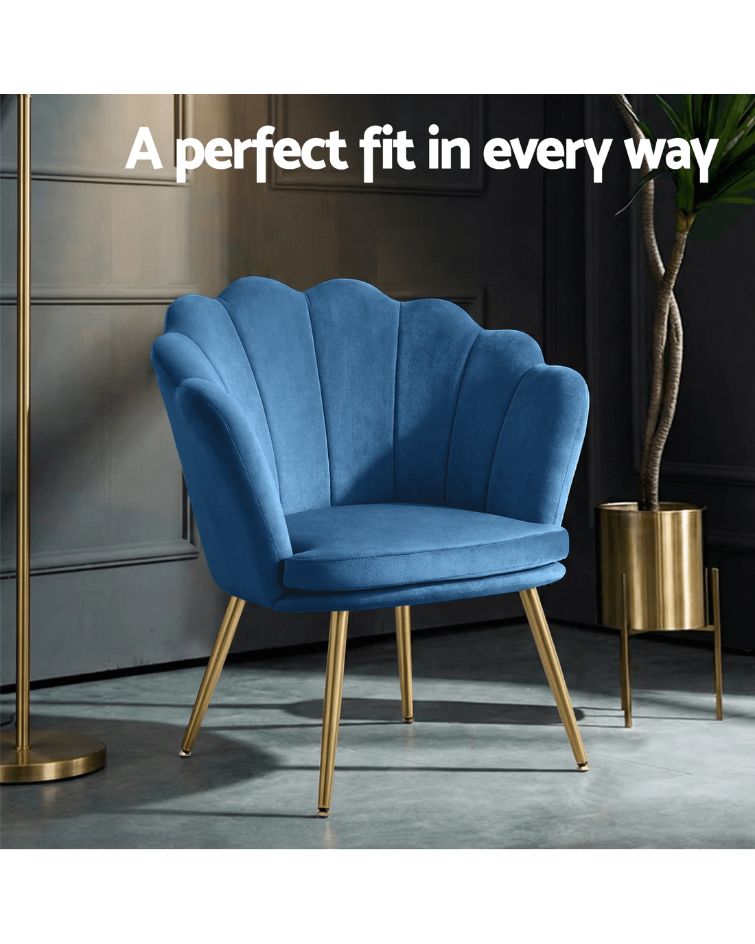 Iconic design. Timeless appeal. Our Artiss Armchair is the epitome of trendsetting style designed for the bold and passionate. With its thick padding of high resilience foam and velvet fabric upholstery, the armchair is perfect as a reading chair or a favourite relaxation seat. The vintage-style scallop shell back wraps around and hugs your body to provide perfect support and comfort. The splayed metal legs in glamorous gold give the armchair loads of character as well as providing a very stable base. Not least, the workmanship is meticulous with the fluid corners and sturdy wooden frame. The armchair will blend well with any setting from classic to contemporary and will also soften the flow of rooms with angular furniture and accents.
