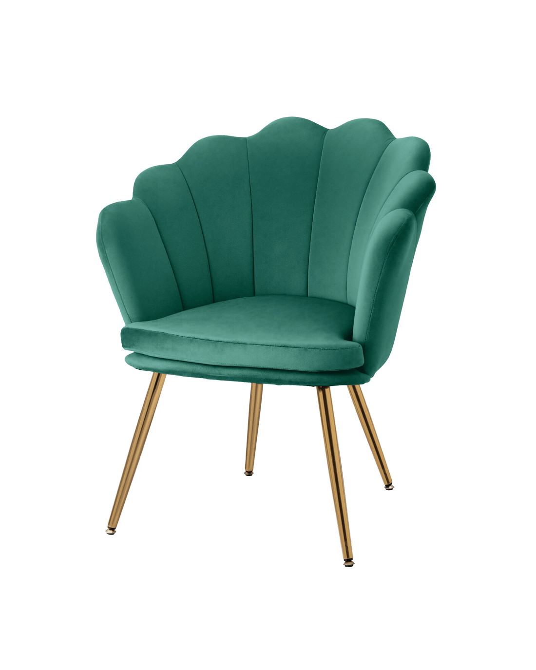 Iconic design. Timeless appeal. Our Artiss Armchair is the epitome of trendsetting style designed for the bold and passionate. With its thick padding of high resilience foam and velvet fabric upholstery, the armchair is perfect as a reading chair or a favourite relaxation seat. The vintage-style scallop shell back wraps around and hugs your body to provide perfect support and comfort. The splayed metal legs in glamorous gold give the armchair loads of character as well as providing a very stable base. Not least, the workmanship is meticulous with the fluid corners and sturdy wooden frame. The armchair will blend well with any setting from classic to contemporary and will also soften the flow of rooms with angular furniture and accents.
