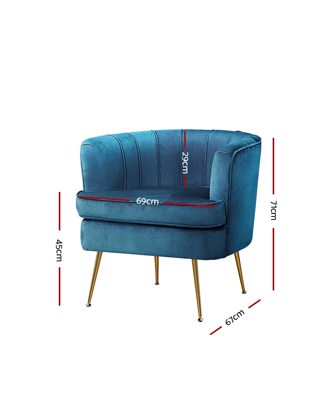 Artiss Norvia armchair offers a wide and welcoming seat for you to relax and is ideal for every corner of your space where you want to add soft and comfy touches. Crafted with great attention to details, this armchair feature solid wood construction with high resilience foam. It is quite sturdy and will withstand the test of time. Our Norvia armchair is upholstered in soft velvet fabric that epitomises luxury with its smooth and shiny appearance and adds a cosy and relaxing feel to your space. Plus, the splayed golden metal legs with floor protectors will offer optimum stability and protection to your floors and add a luxurious charm to your space with its gorgeous presence.