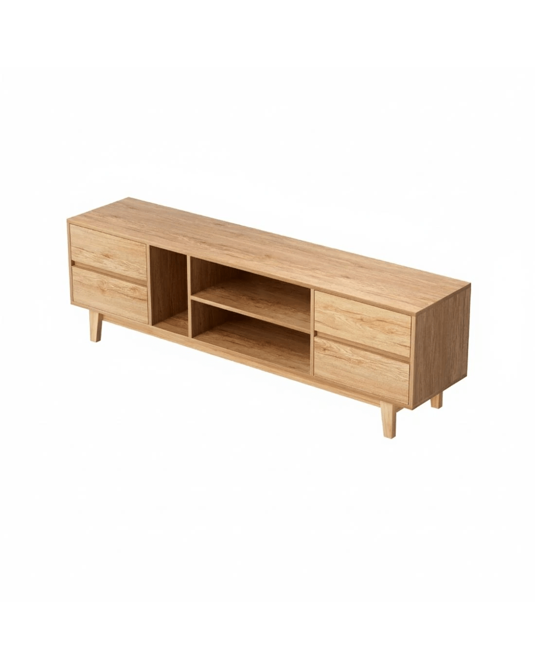 Style and functionality blend together in the beautiful Asa Entertainment Unit from Artiss. This lowline entertainment unit has the perfect height and storage capacity for all your entertainment needs, from your television to your sound system and consoles. The simple handle-less design and natural wood-grain finish will blend in perfectly with modern homes. Made from thick particleboard with a smooth melamine finish and solid rubberwood, the unit is sturdy and durable for long-lasting use. Four generous storage drawers and three open shelves with cable management are perfect for your media, books, equipment and other trinkets. The solid rubberwood legs feature anti-slip feet to ensure the unit stays standing and prevents scratches to your floors. Easy to assemble and even easier to maintain, the Asa Entertainment Unit will keep your home theatre organised for years to come.