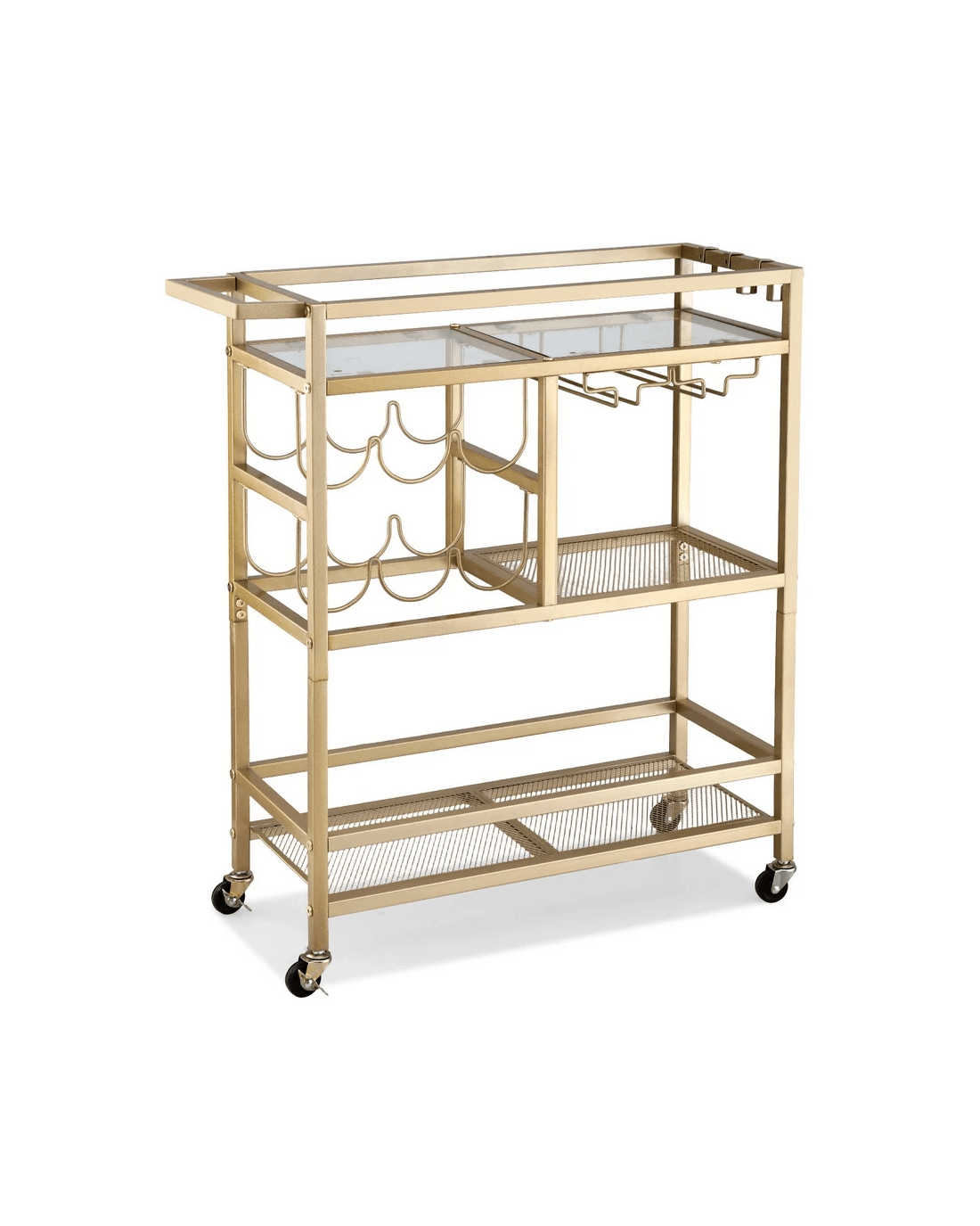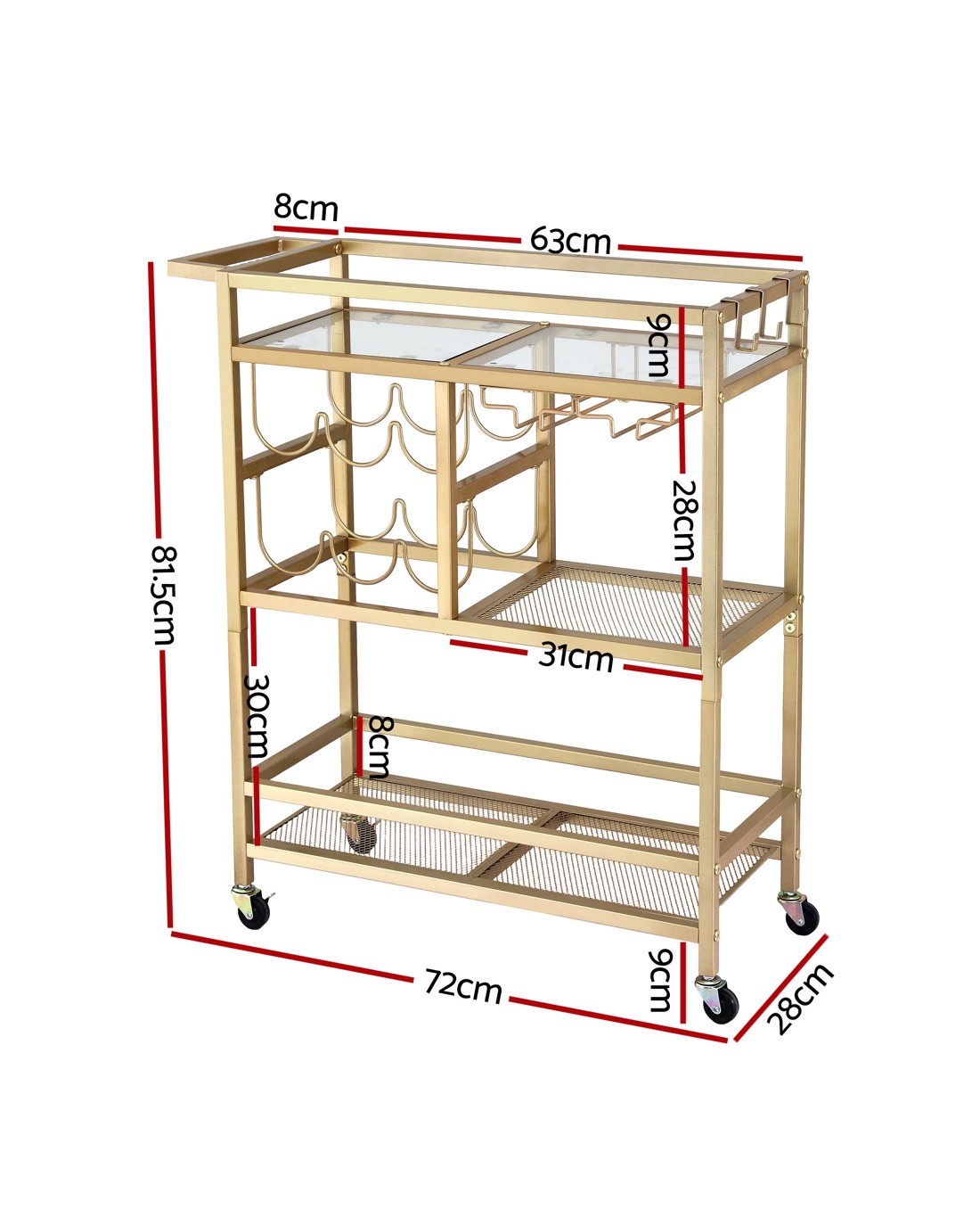 Sold by Aisle SixArtiss Bar Cart Drinks Trolley Serving Wine Rack Glass Holder 3 Hooks 72cm - Gold