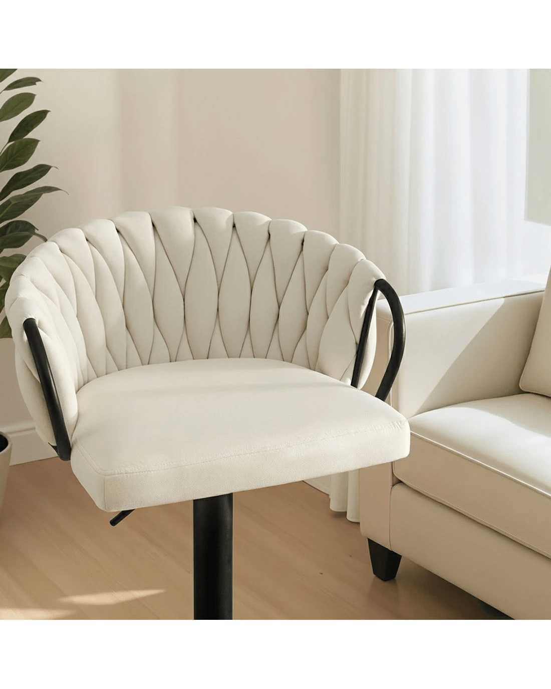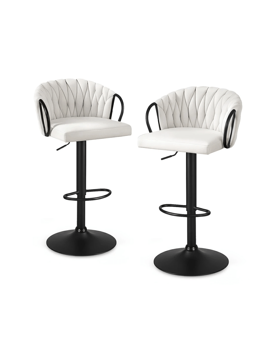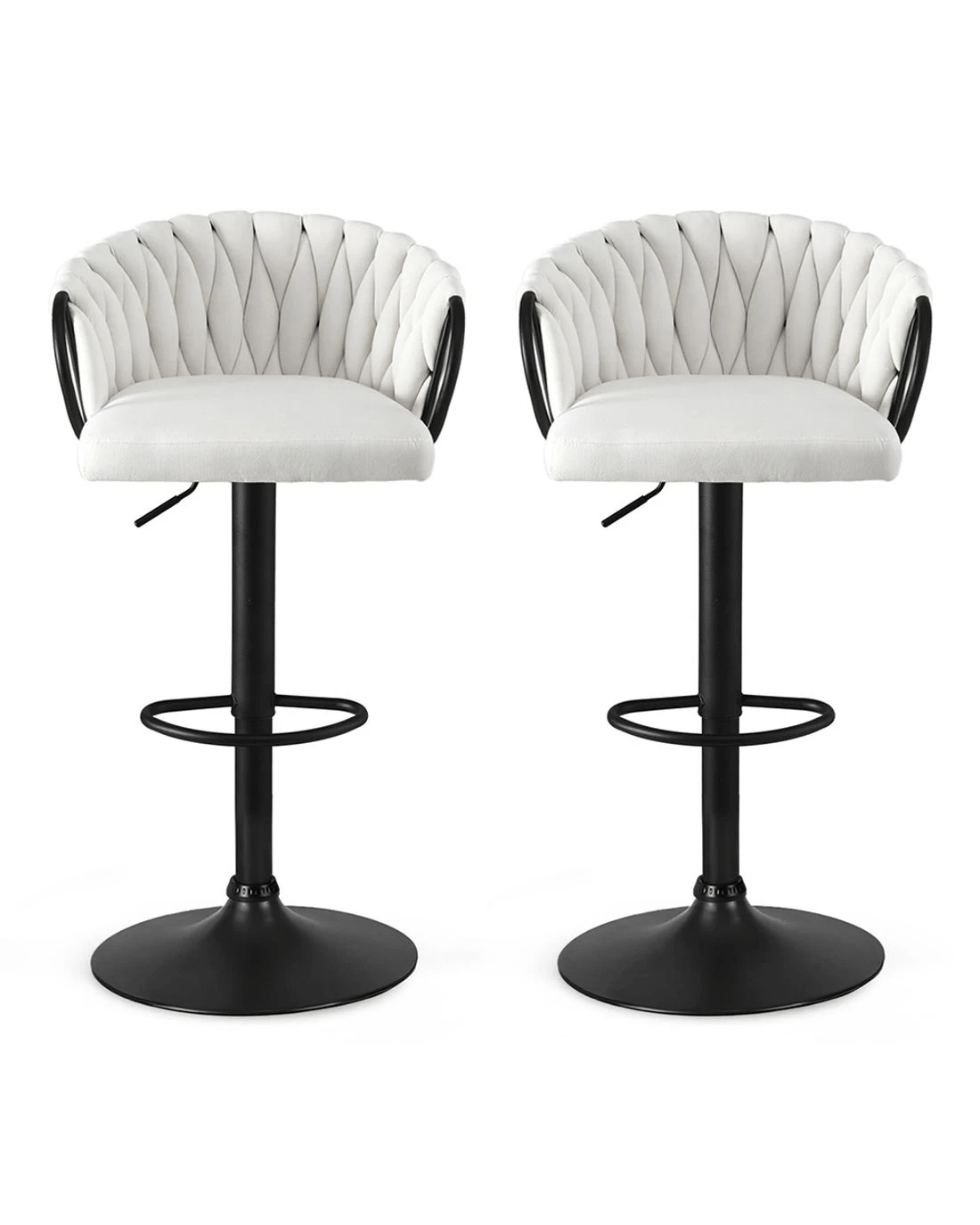 Redefine your seating experience with our set of 2 adjustable velvet bar stools. Featuring an ergonomic woven design and luxurious velvet seats, these stools combine comfort and elegance. The height adjusts effortlessly from 82-102cm, making them ideal for kitchen counters, bars, and islands. Sturdy metal construction and a reinforced gas lift cylinder ensure durability, supporting up to 120kg per stool. Designed with metal armrests and a semi-circular footrest, they offer superior comfort while protecting your floors with anti-slip protectors. Elevate your home with these stylish and functional bar stools today.