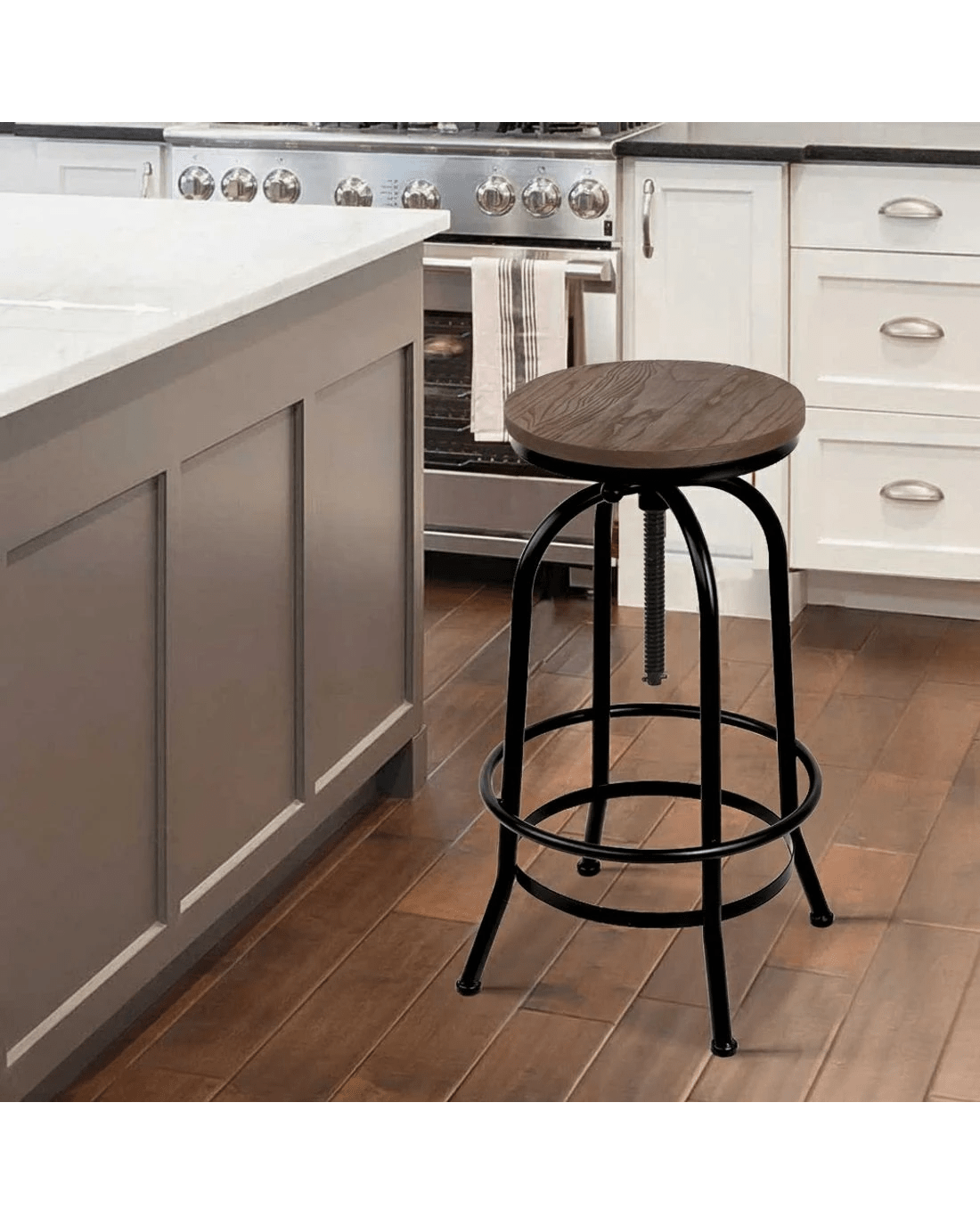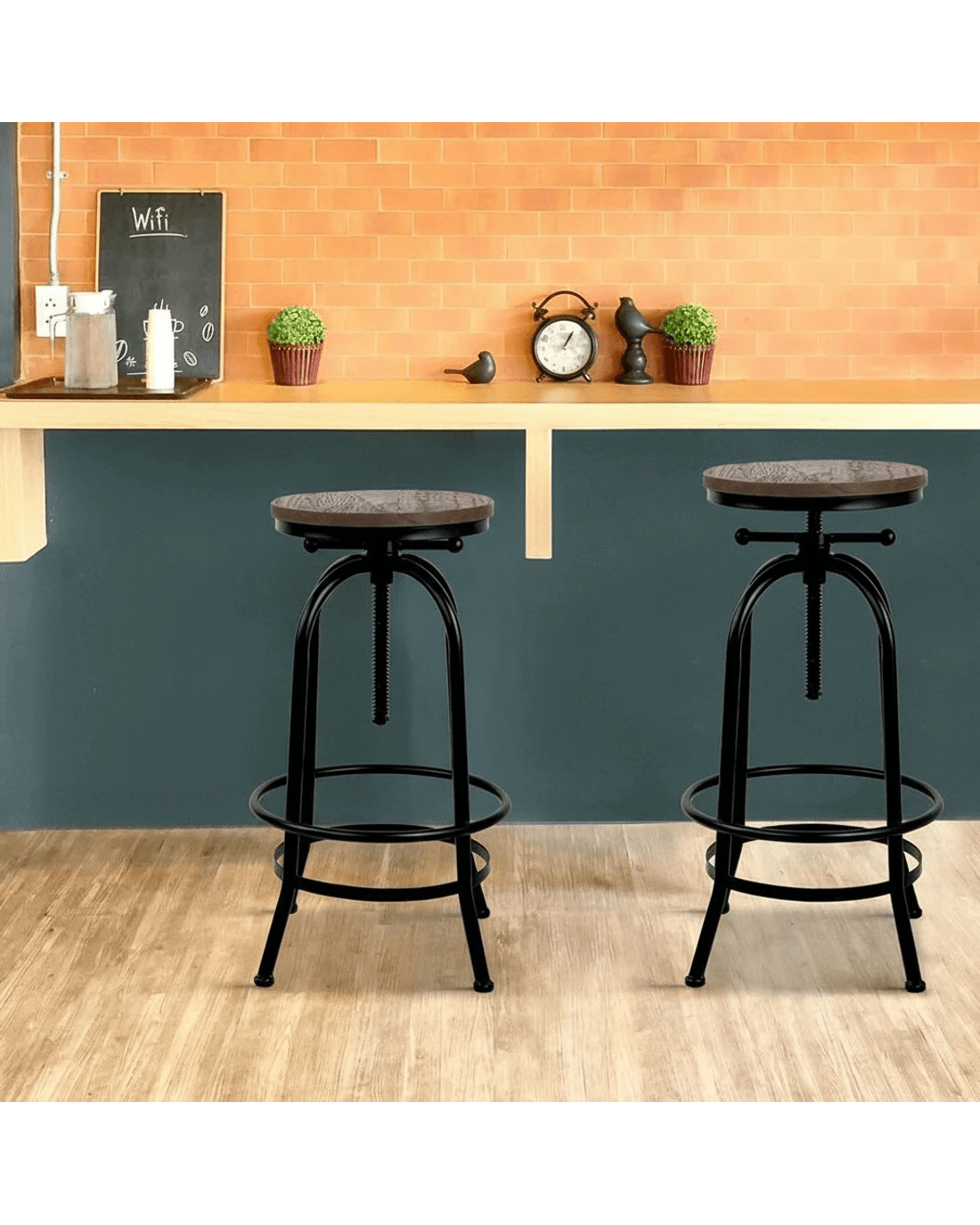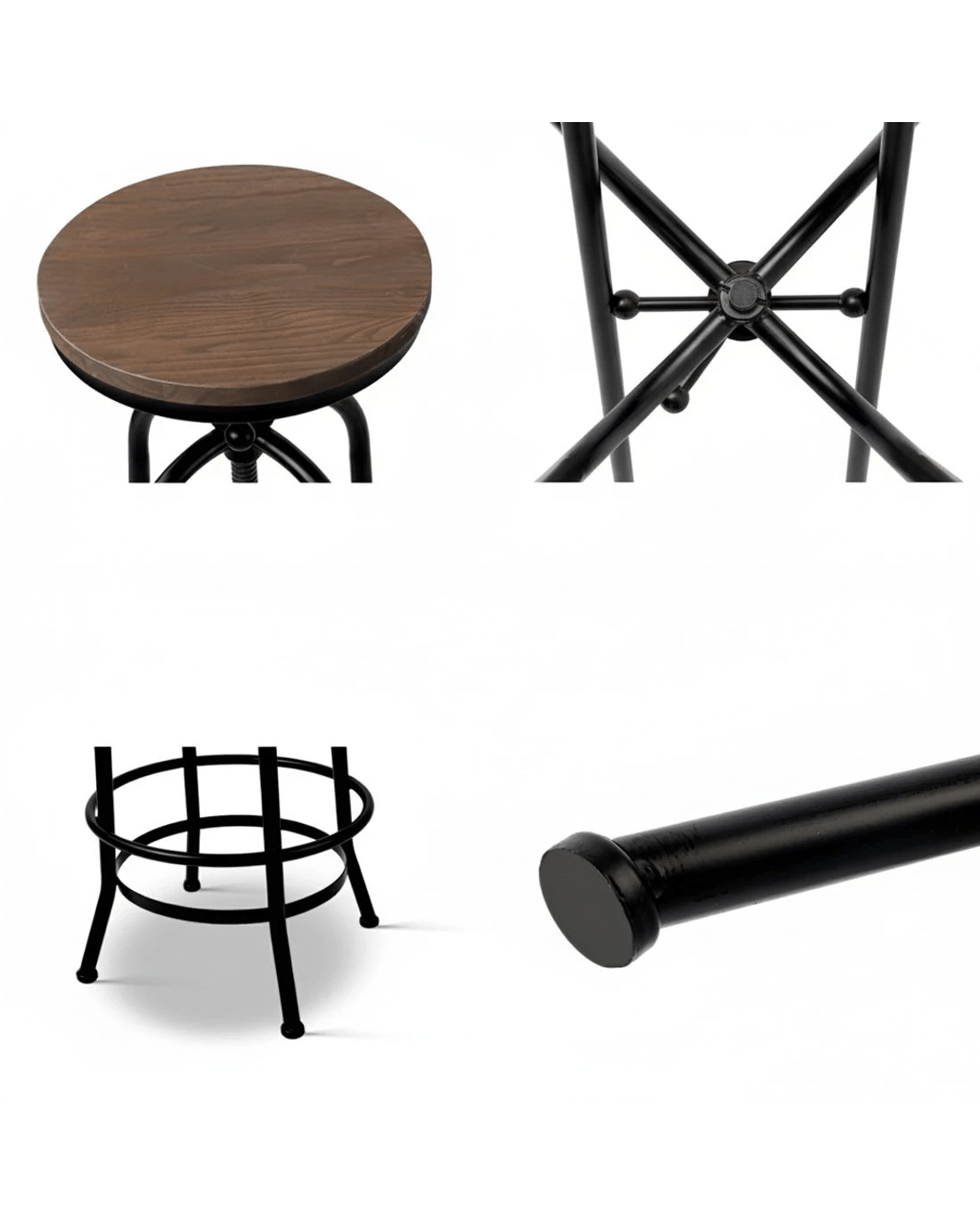 Upgrade your seating with style and strength! Our Angus adjustable bar stool boasts a premium elm wood seat and a sturdy steel framework, ensuring both comfort and durability. Its swivel design with adjustable height makes it versatile for various spaces, from kitchen counters to bars. The heavy metallic finish blends seamlessly with industrial or modern decor, while the anti-slip floor protector keeps your floors safe. Choose quality and style with this industrial bar stool. Add it to your home today!