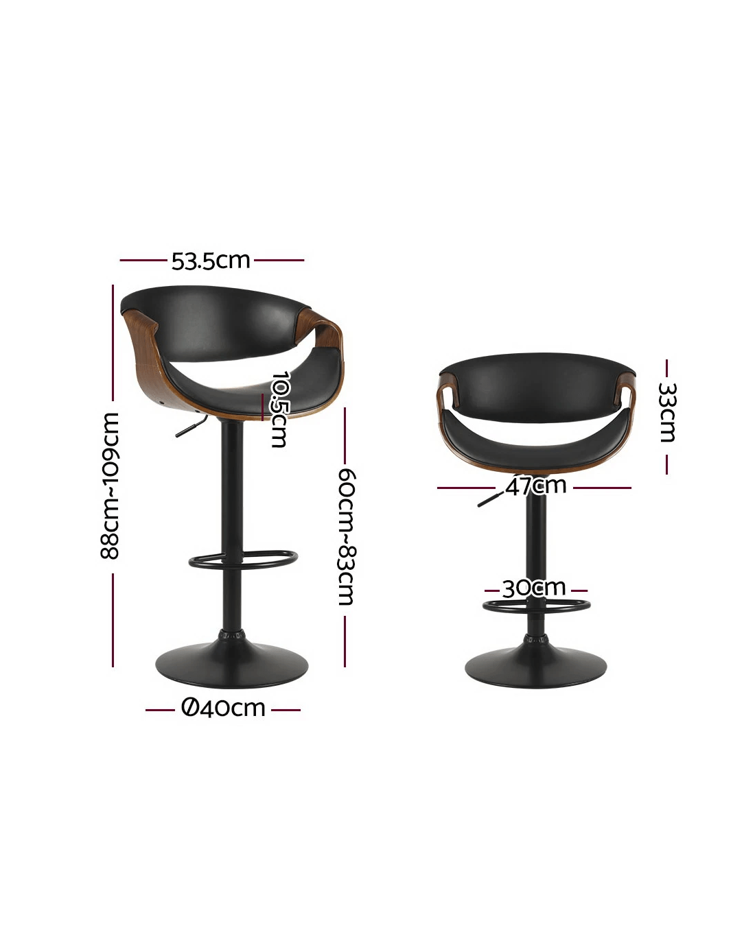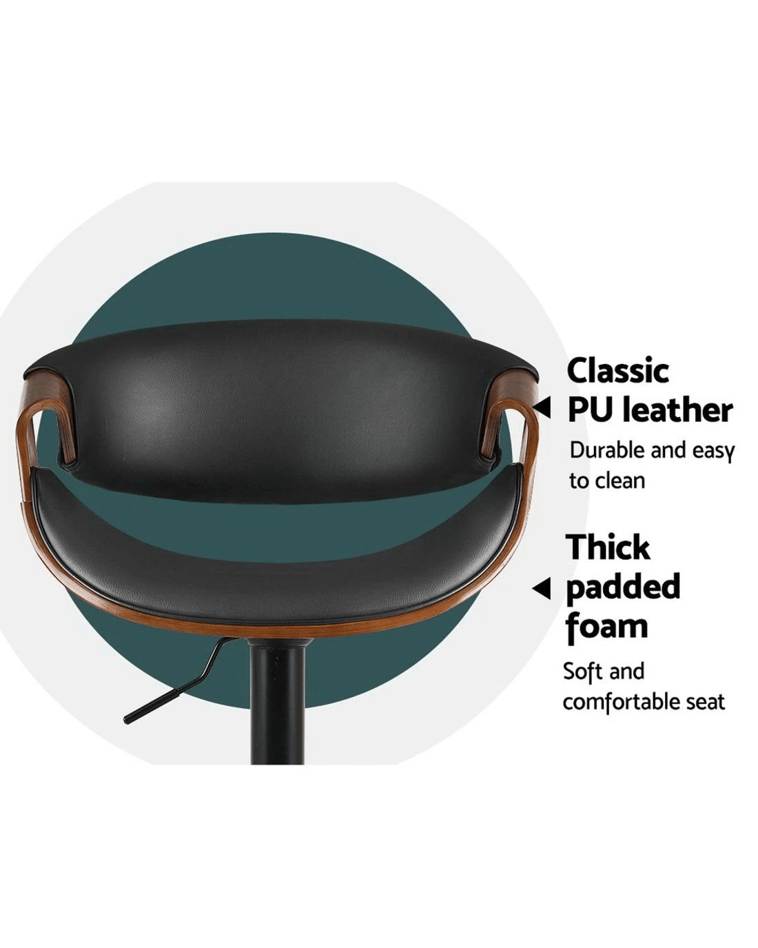 Sold by Aisle SixArtiss Bar Stools Gas Lift Leather w/Armrest - Black