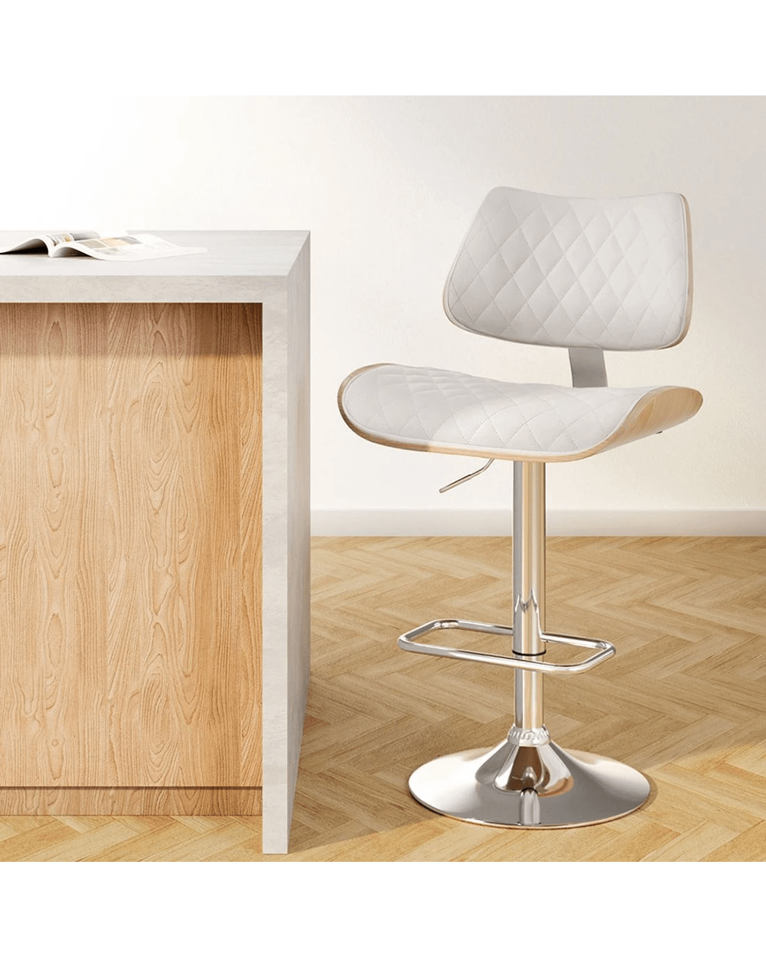 Sold by Aisle SixArtiss Bar Stools Kitchen Dining Chairs Gas Lift Stool Wooden Leather - White