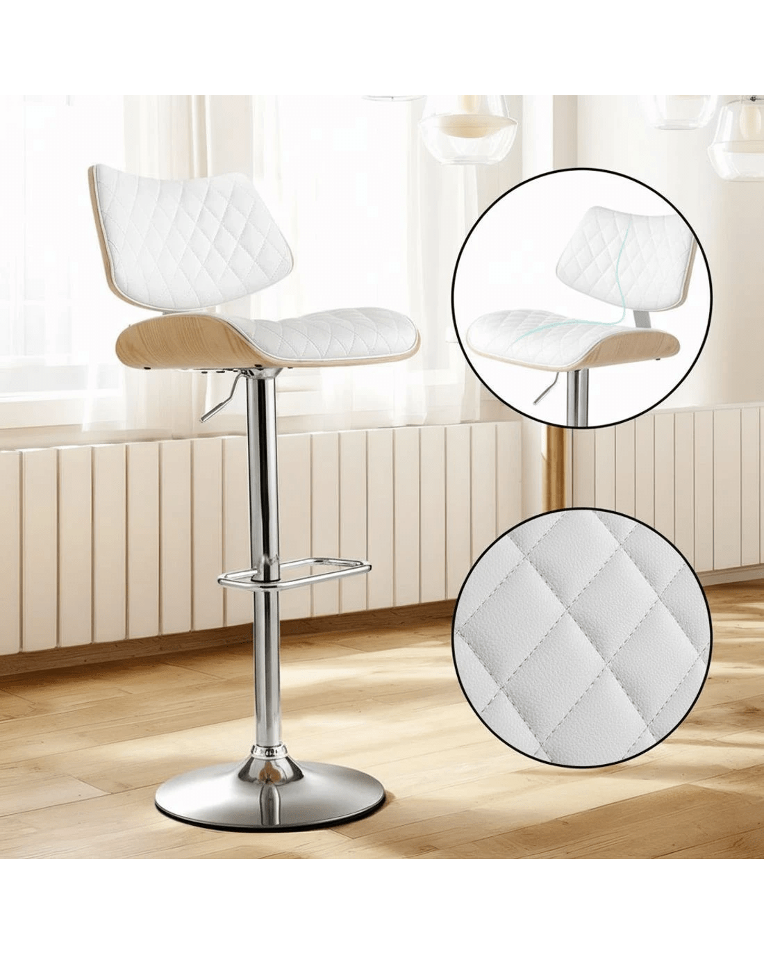 Discover the Artiss Quilla Bar Stools, where comfort meets sophistication. These stools feature a padded seat upholstered in premium PU leather, complemented by a curved bentwood seat with a striking wood grain finish. Enjoy full mobility with a 360-degree swivel seat and adjustable height courtesy of an SGS-tested gas lift lever, all while protecting your floors with a discreet floor protector under the base.