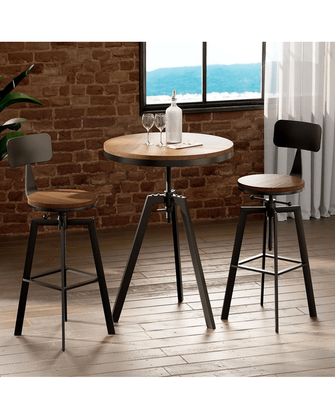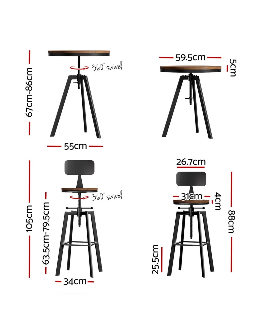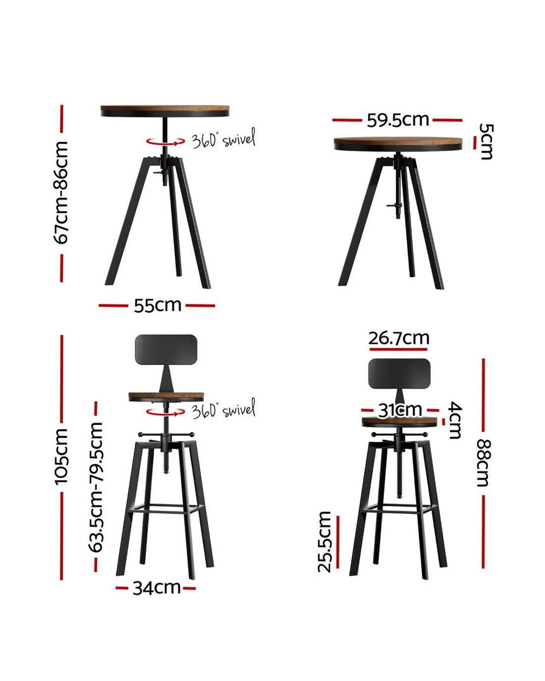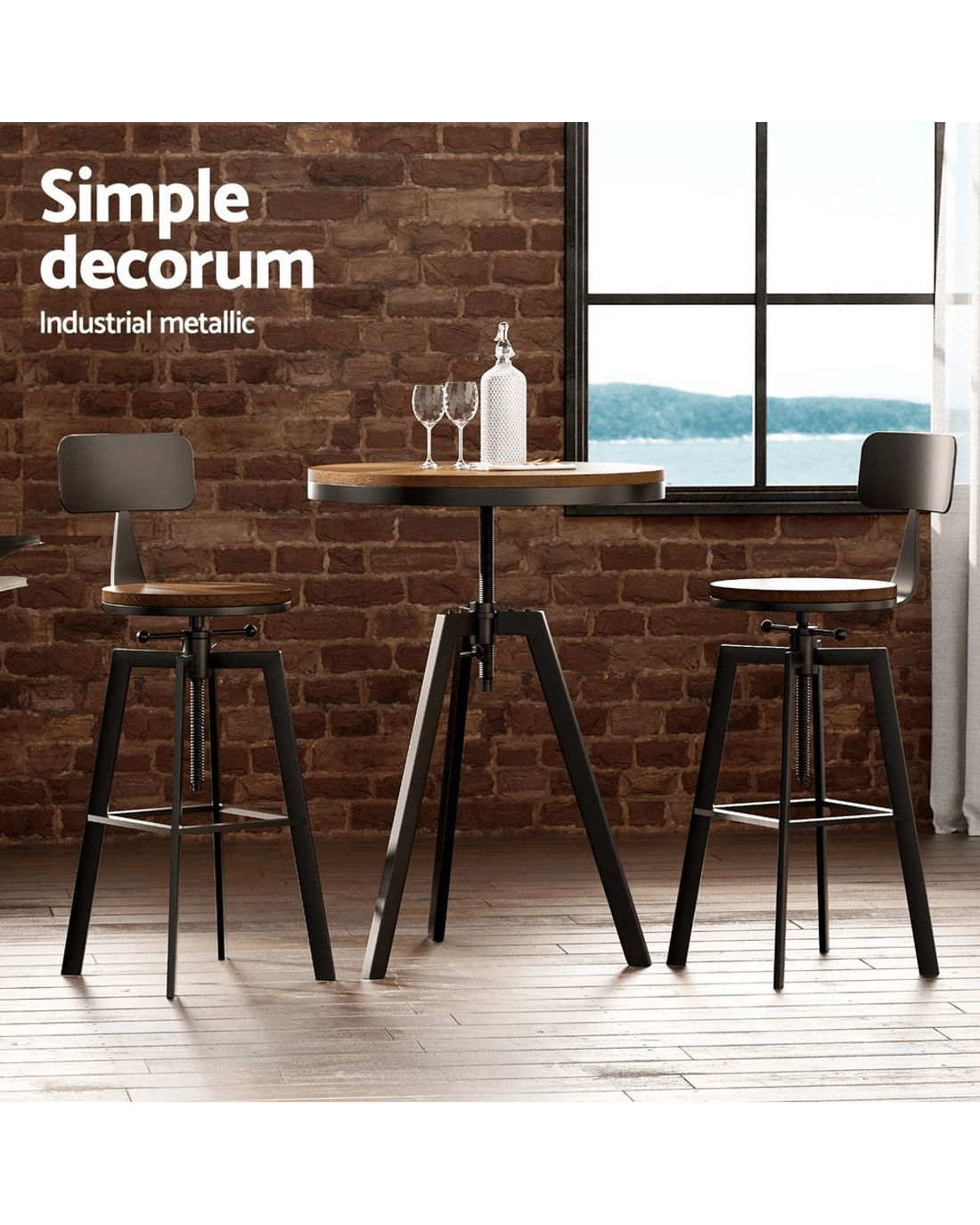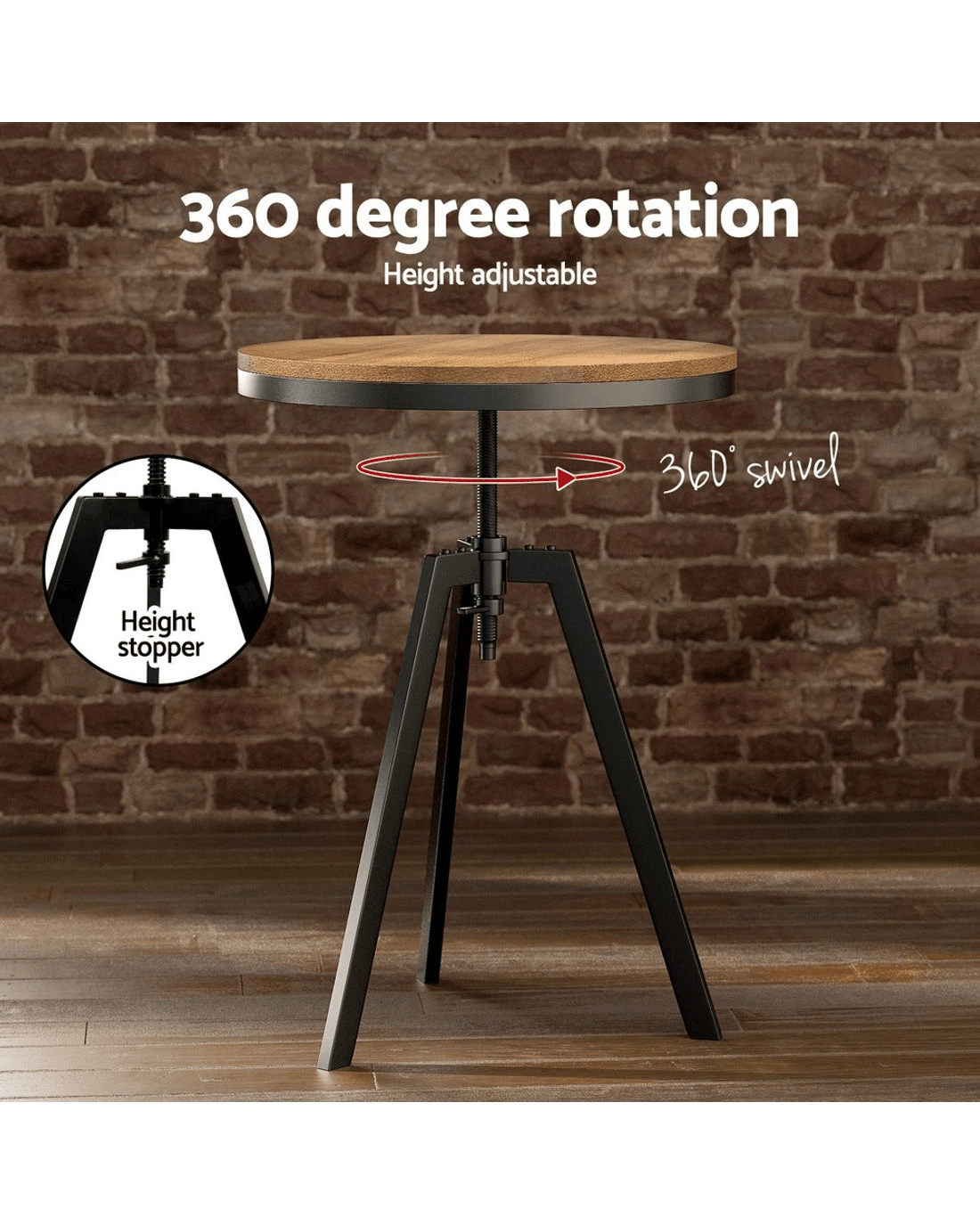 The Artiss Bar Table Stools Set combines industrial charm with modern functionality. Featuring a reinforced steel frame and heavy-duty fixings, these stools are built to last. The premium elm wood seats add a touch of elegance, while the 360-degree swivel and adjustable height with stopper ensure comfort and versatility. Perfect for dining desks, kitchens, cafes, or pubs, this set blends durability and style seamlessly.
