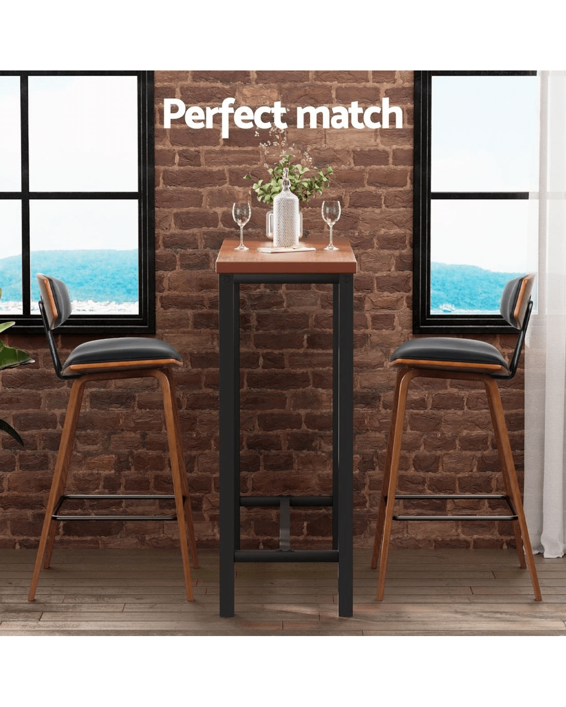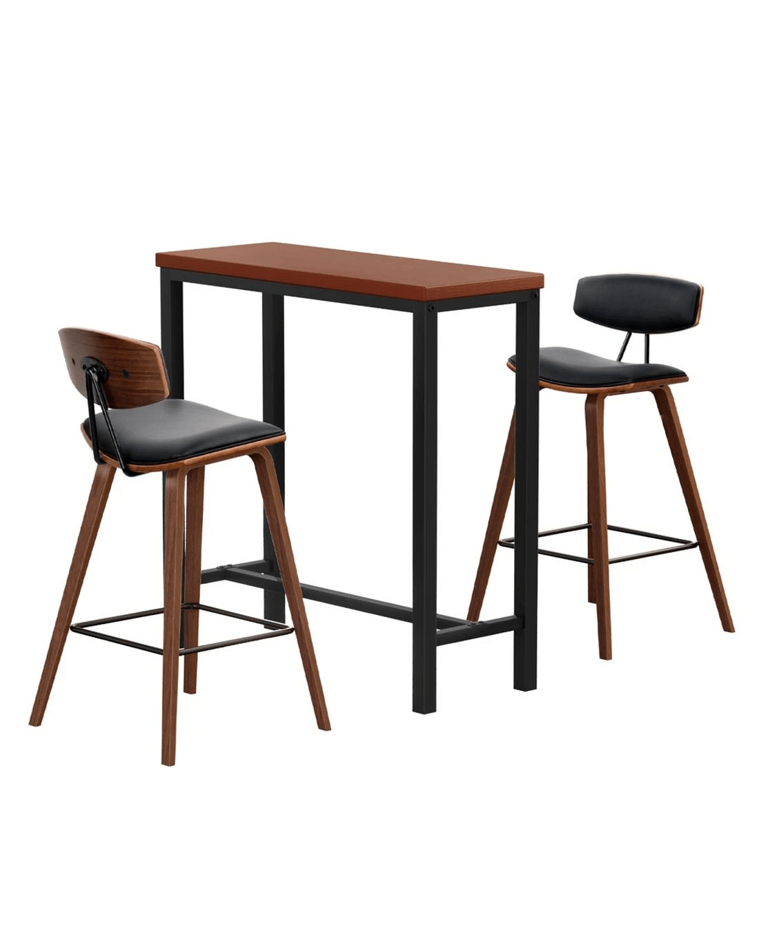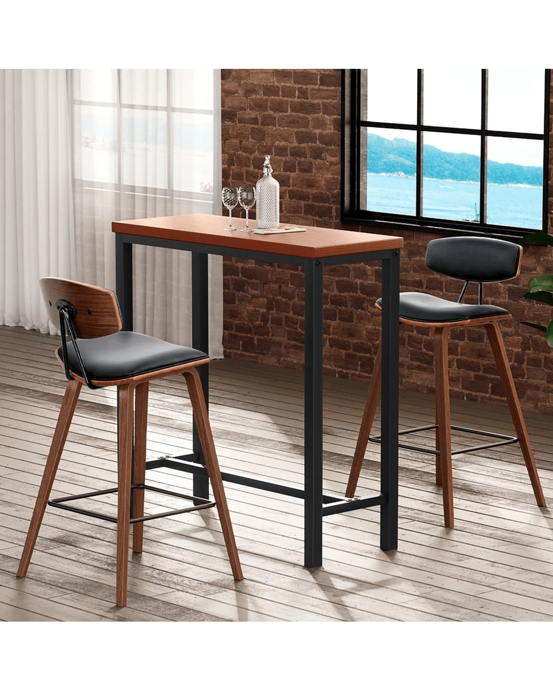 Upgrade your space with this stylish Bar Table & Stool Set, blending industrial charm with modern comfort. The bar table features a durable MDF top, reinforced steel frame, and a sturdy T-shape structure with anti-slip feet for stability. The bar stools showcase an elegant wooden structure, solid plywood frame, and a PU leather-padded seat with a wide, curved backrest for extra support. A powder-coated metal footrest and anti-slip rubber feet enhance comfort and safety. Perfect for kitchens, bars, or dining areas, this set combines durability with sophisticated design.