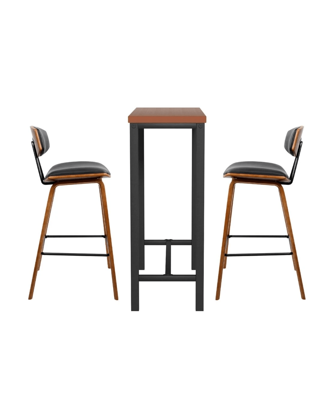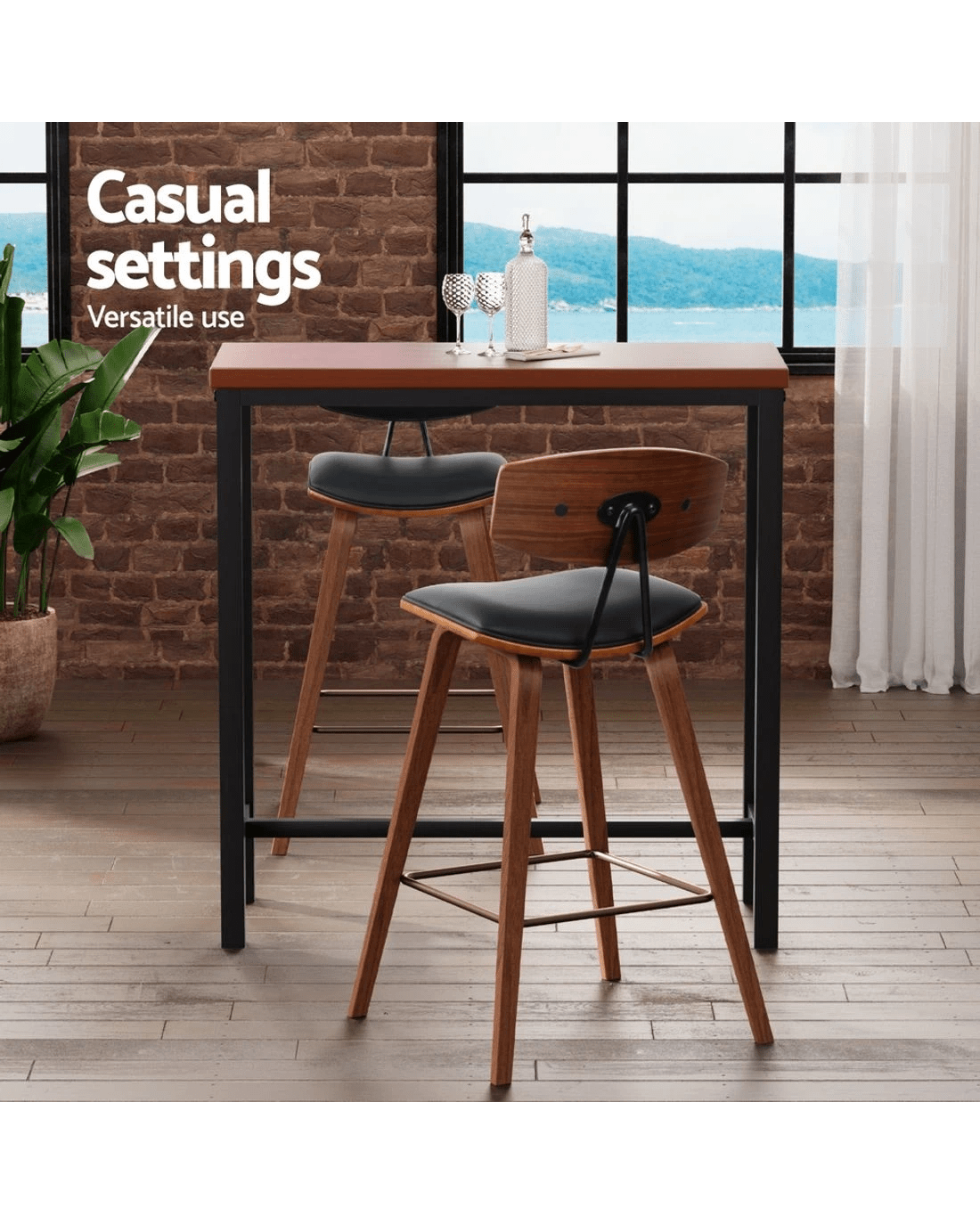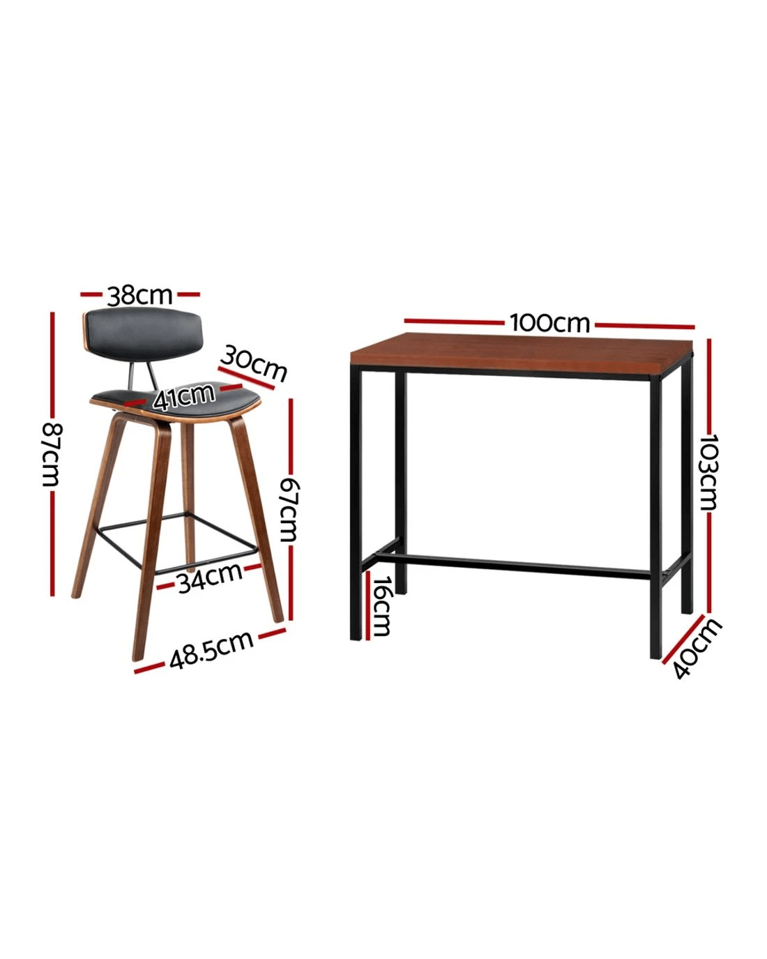 Upgrade your space with this stylish Bar Table & Stool Set, blending industrial charm with modern comfort. The bar table features a durable MDF top, reinforced steel frame, and a sturdy T-shape structure with anti-slip feet for stability. The bar stools showcase an elegant wooden structure, solid plywood frame, and a PU leather-padded seat with a wide, curved backrest for extra support. A powder-coated metal footrest and anti-slip rubber feet enhance comfort and safety. Perfect for kitchens, bars, or dining areas, this set combines durability with sophisticated design.