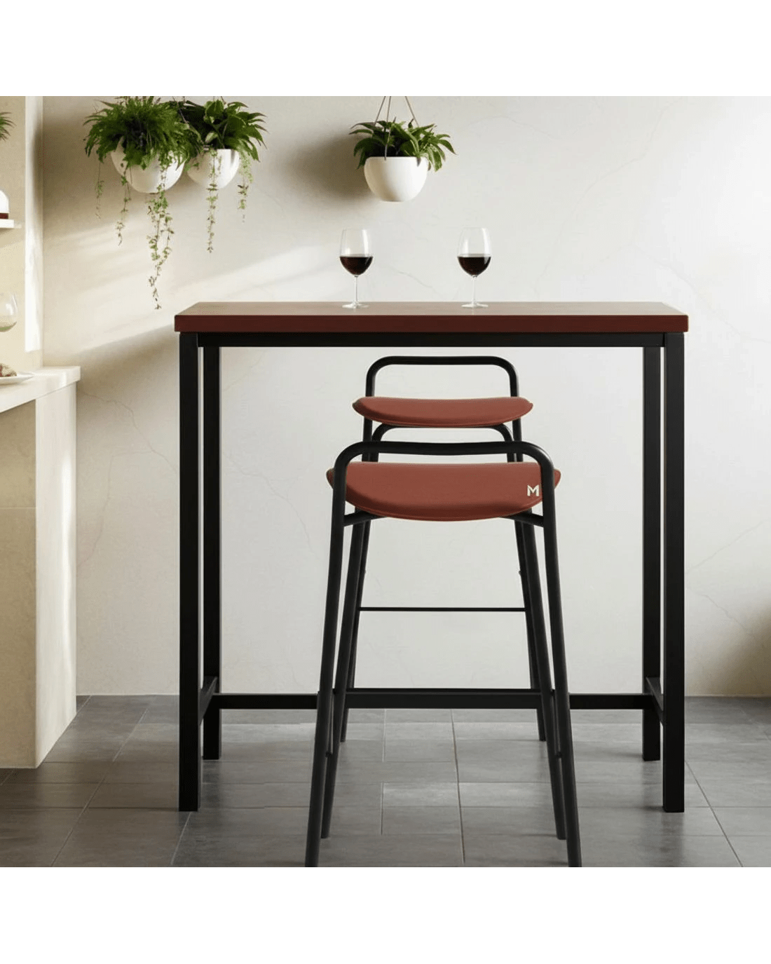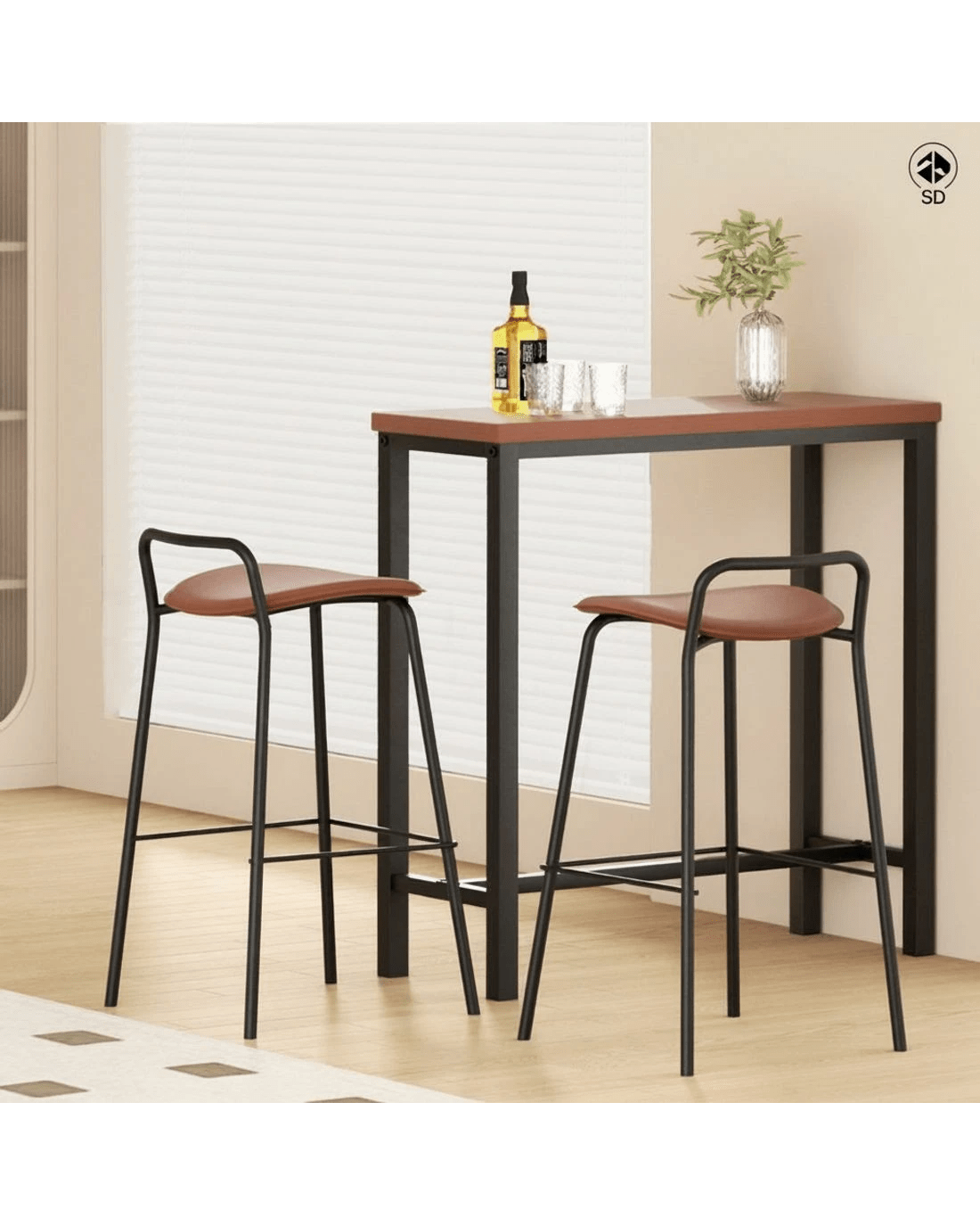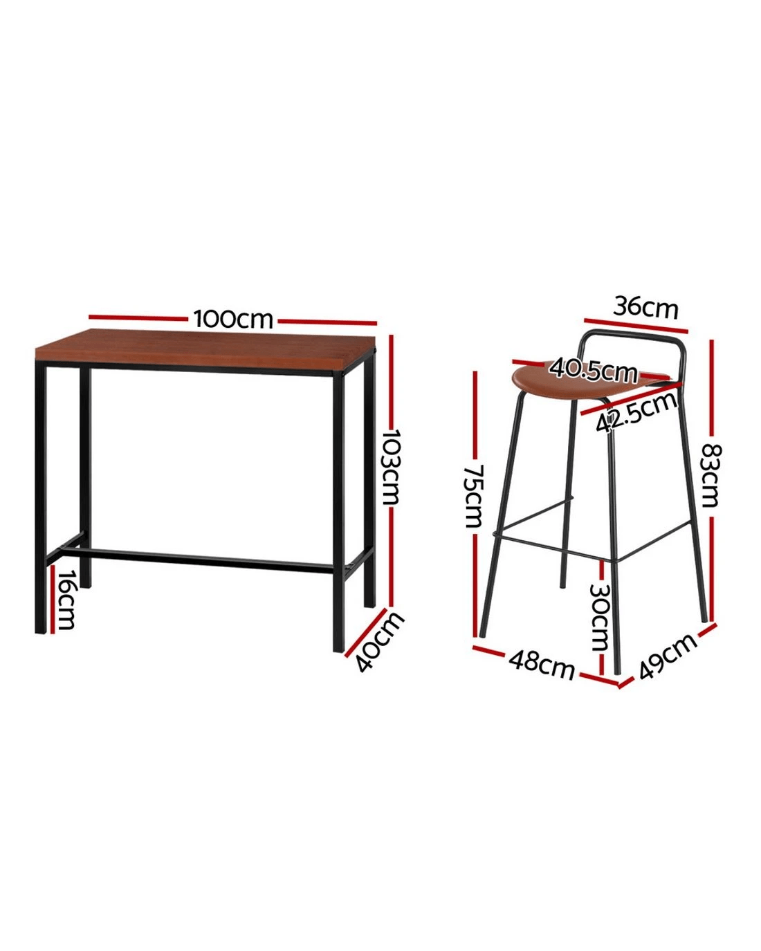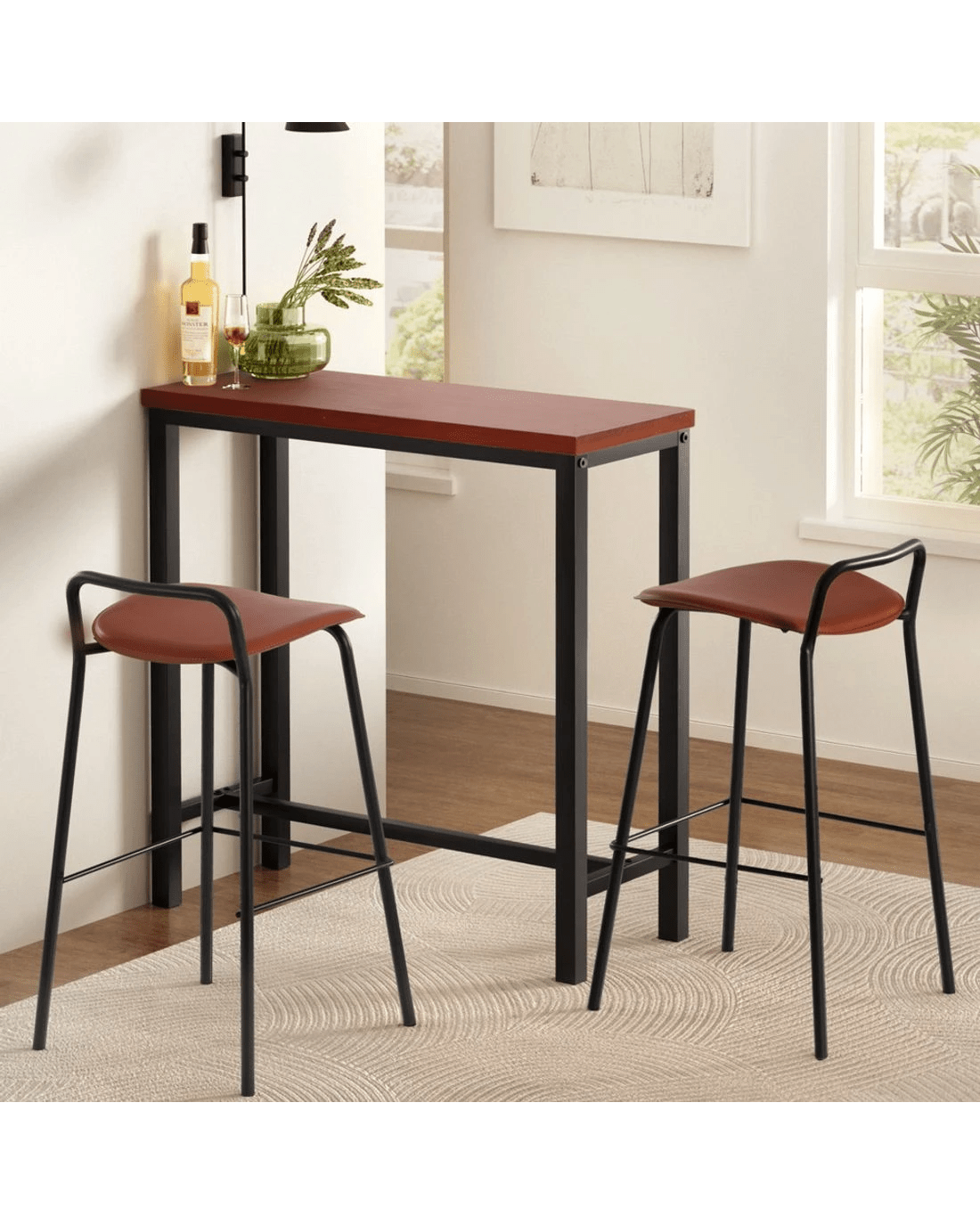 The Artiss Bar Table combines industrial charm with robust functionality. Its smooth MDF top and reinforced steel frame, finished in durable powder coating, ensure longevity and a rock-solid stance. The sturdy T-shape design, heavy-duty fixings, and anti-slip feet keep it firmly in place, even with heavy use. Pair it with the Artiss Bar Stools for a timeless look. These stools feature foam-padded PU seats, reinforced metal frames, and powder-coated finishes for durability. With stylish footrests and anti-slip protectors, they offer comfort and stability, making them perfect for modern kitchens, bars, or commercial spaces. Assembly required.