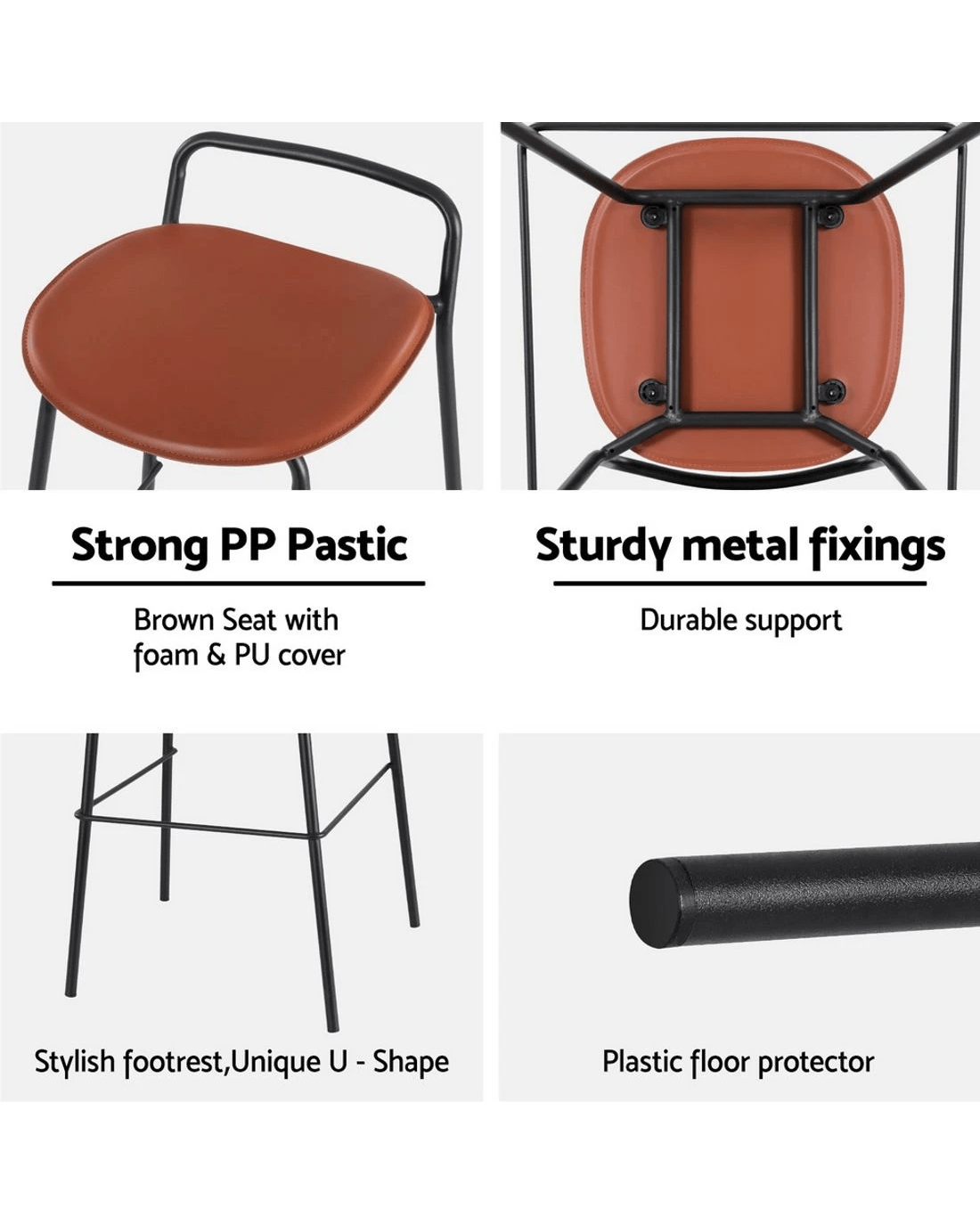 Seat Material : PP Seat with foam and Brown PU Cover
