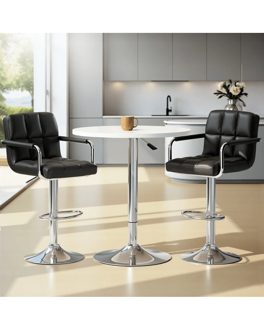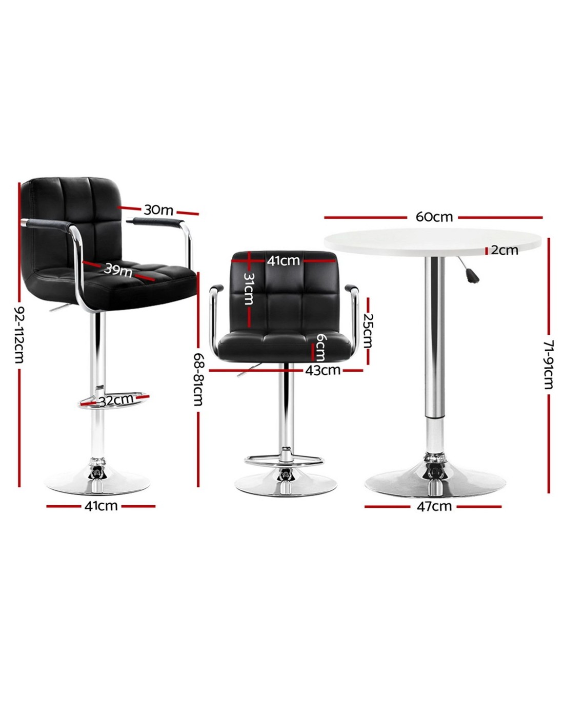 Upgrade your space with the Artiss bar table and stools set, blending contemporary style with functionality. The stools feature a 360-degree swivel and height-adjustable SGS-certified gas lift for personalized comfort, while the sturdy base and floor protectors ensure stability and surface care. Easy-to-clean surfaces and accessible gas lifts make maintenance a breeze. Perfect for both indoor and outdoor settings, this versatile set is ideal for residential or commercial use, offering durability and modern design in one sleek package.