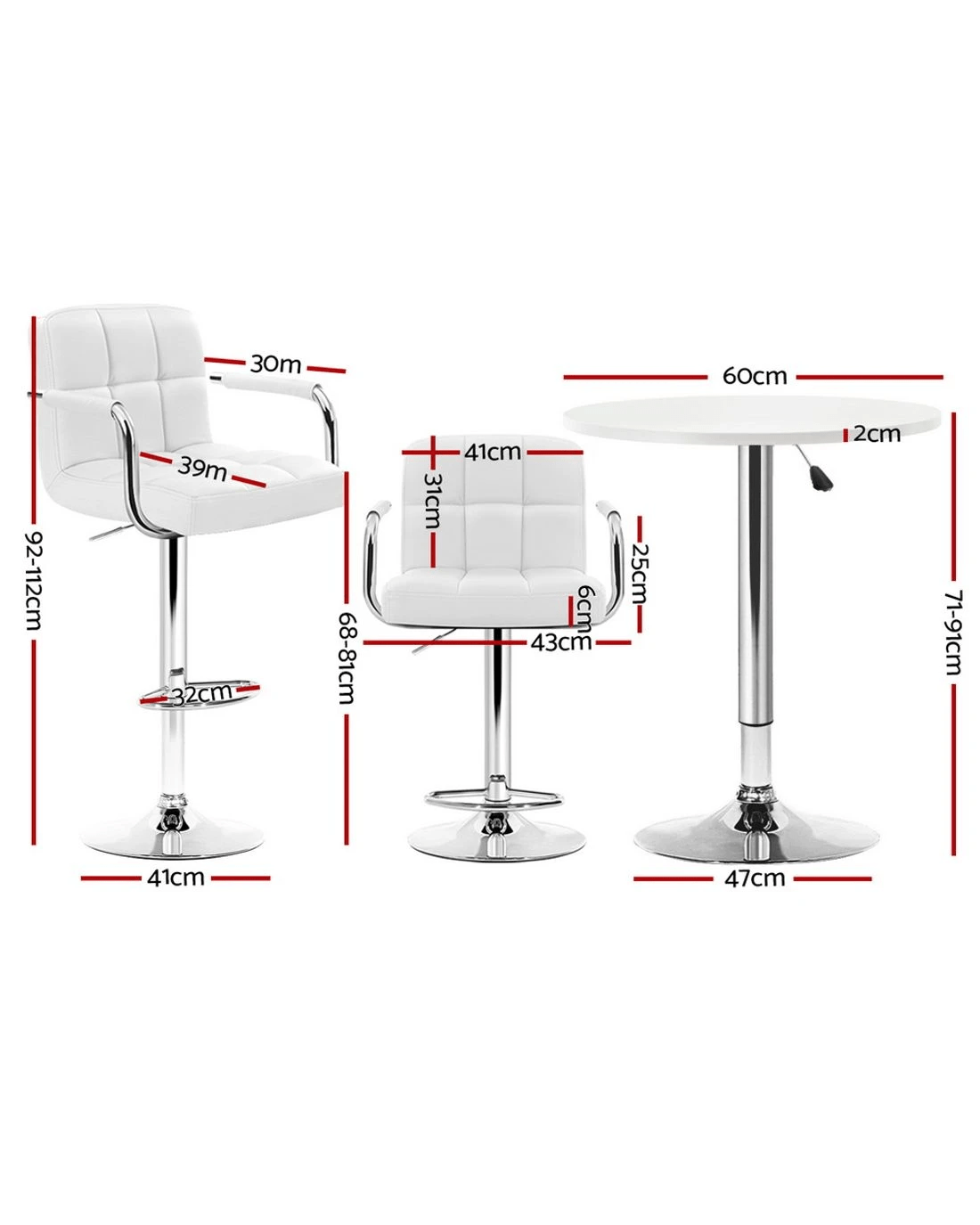 Upgrade your space with the Artiss bar table and stools set, blending contemporary style with functionality. The stools feature a 360-degree swivel and height-adjustable SGS-certified gas lift for personalized comfort, while the sturdy base and floor protectors ensure stability and surface care. Easy-to-clean surfaces and accessible gas lifts make maintenance a breeze. Perfect for both indoor and outdoor settings, this versatile set is ideal for residential or commercial use, offering durability and modern design in one sleek package.