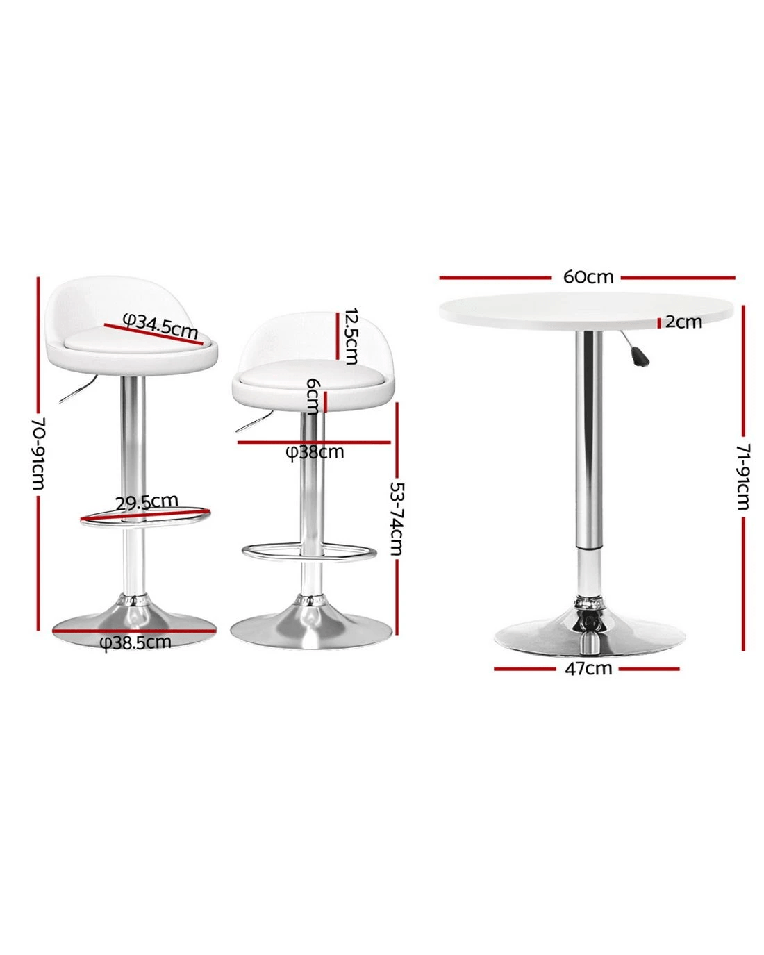 Upgrade your space with the Artiss bar table and stools set, blending contemporary style with functionality. The stools feature a 360-degree swivel and height-adjustable SGS-certified gas lift for personalized comfort, while the sturdy base and floor protectors ensure stability and surface care. Easy-to-clean surfaces and accessible gas lifts make maintenance a breeze. Perfect for both indoor and outdoor settings, this versatile set is ideal for residential or commercial use, offering durability and modern design in one sleek package.