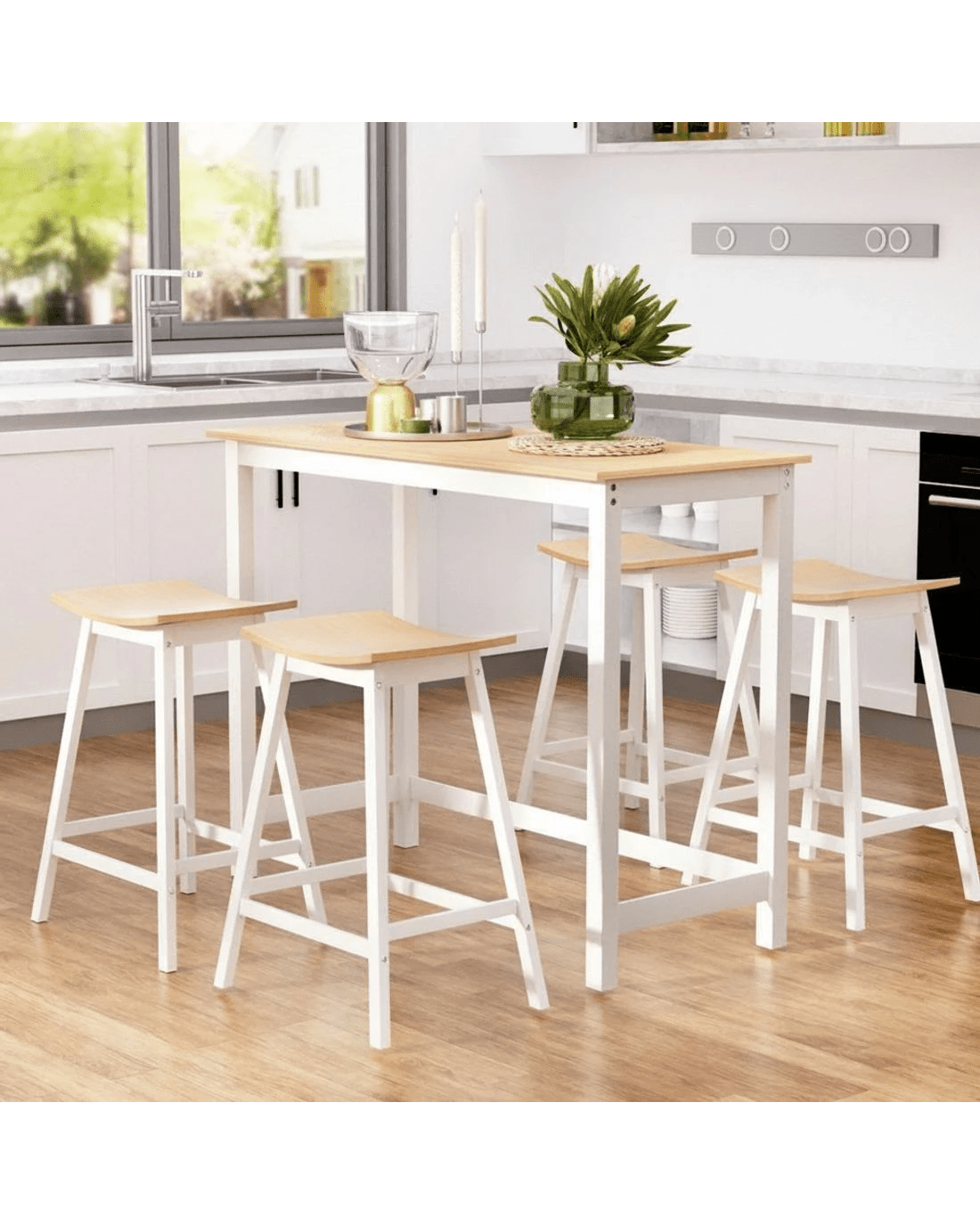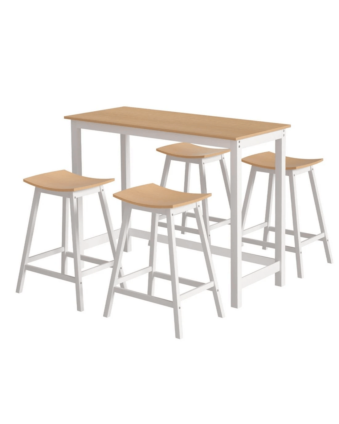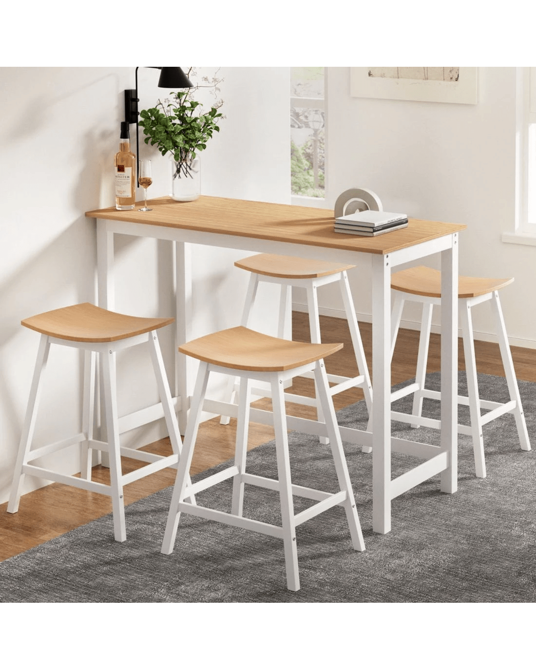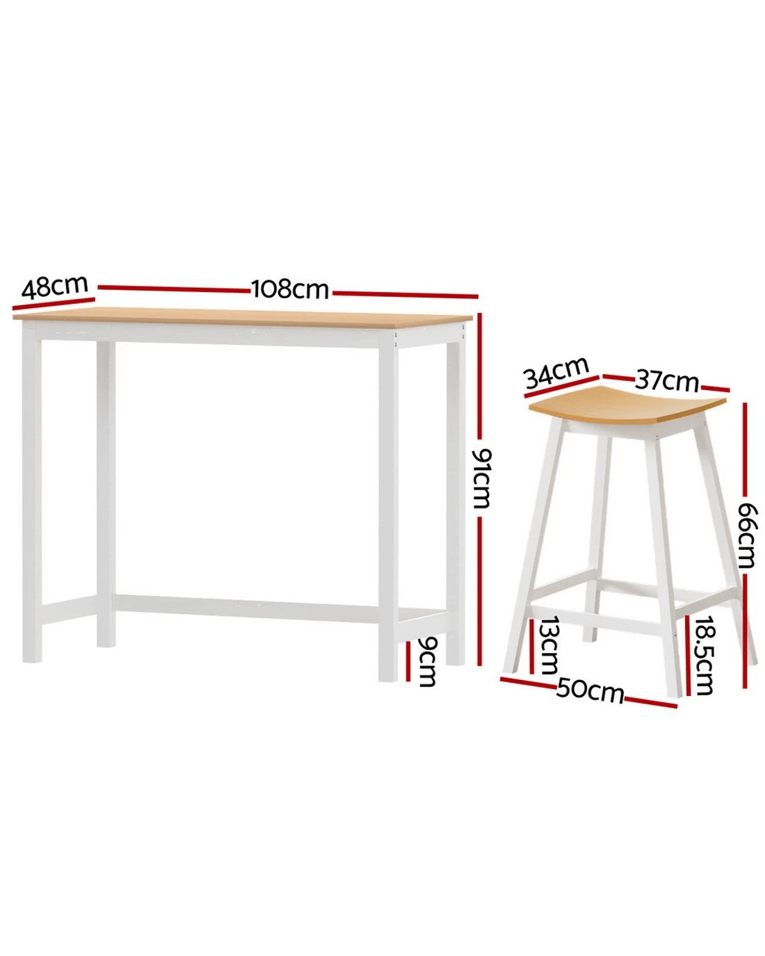 The Artiss Bar Table & Bar Stools Set combines modern style with durability. Featuring solid wood legs and a sleek saddle seat design, this set offers both comfort and stability. The heavy-duty fixings and sturdy L-shape structure of the bar table ensure long-lasting use, while anti-slip floor protectors prevent floor damage. With smooth edges for safety and easy assembly, this set is the perfect addition to any kitchen, dining area, or bar space.