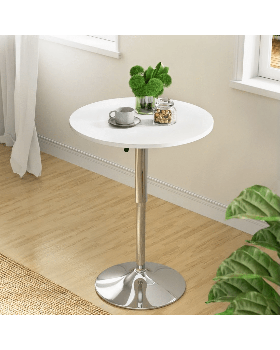 Entertain in style with our snazzy stainless steel Artiss Bar Table. Stunning in looks and equally as functional, this bar table has plenty going for it. With an adjustable height to set the table at the preferred level to suit your bar stool or chairs, the bar table is perfect for use at home and at retail establishment or events both indoors and outdoors. Its smooth lacquered wooden top with a weight capacity of 80kg is well finished and provides ample space for practical use. Plus, a 47cm diameter sturdy base ensures your drinks only go down one way and definitely not on the floor. Better still, the round table top can be rotated 360° for hassle-free facing in any direction. Not least, the attached floor protector keep your floor pristine at all times from its robust use.