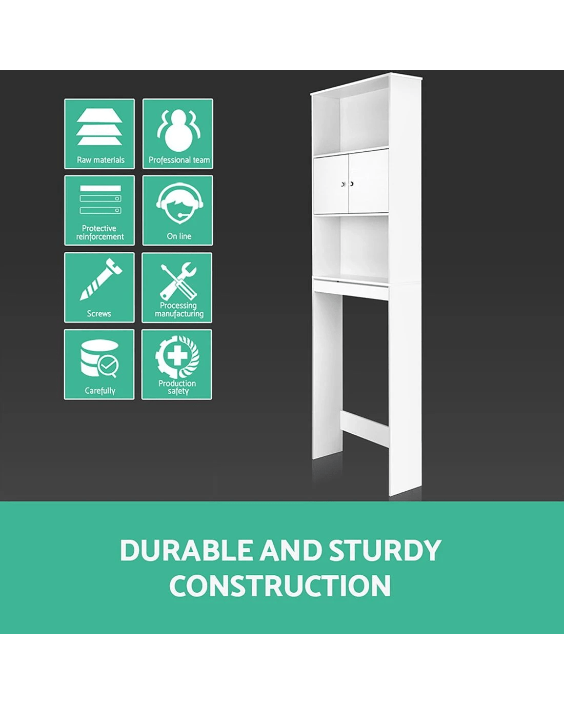 Made of quality and eco-friendly MDF board, it is more stable and stands up better in heat and humidity. Designed with a simple outlook, this over-toilet-cabinet definitely is your best choice for your bathroom. Add on some plants and colourful candles for the little extra ambient.