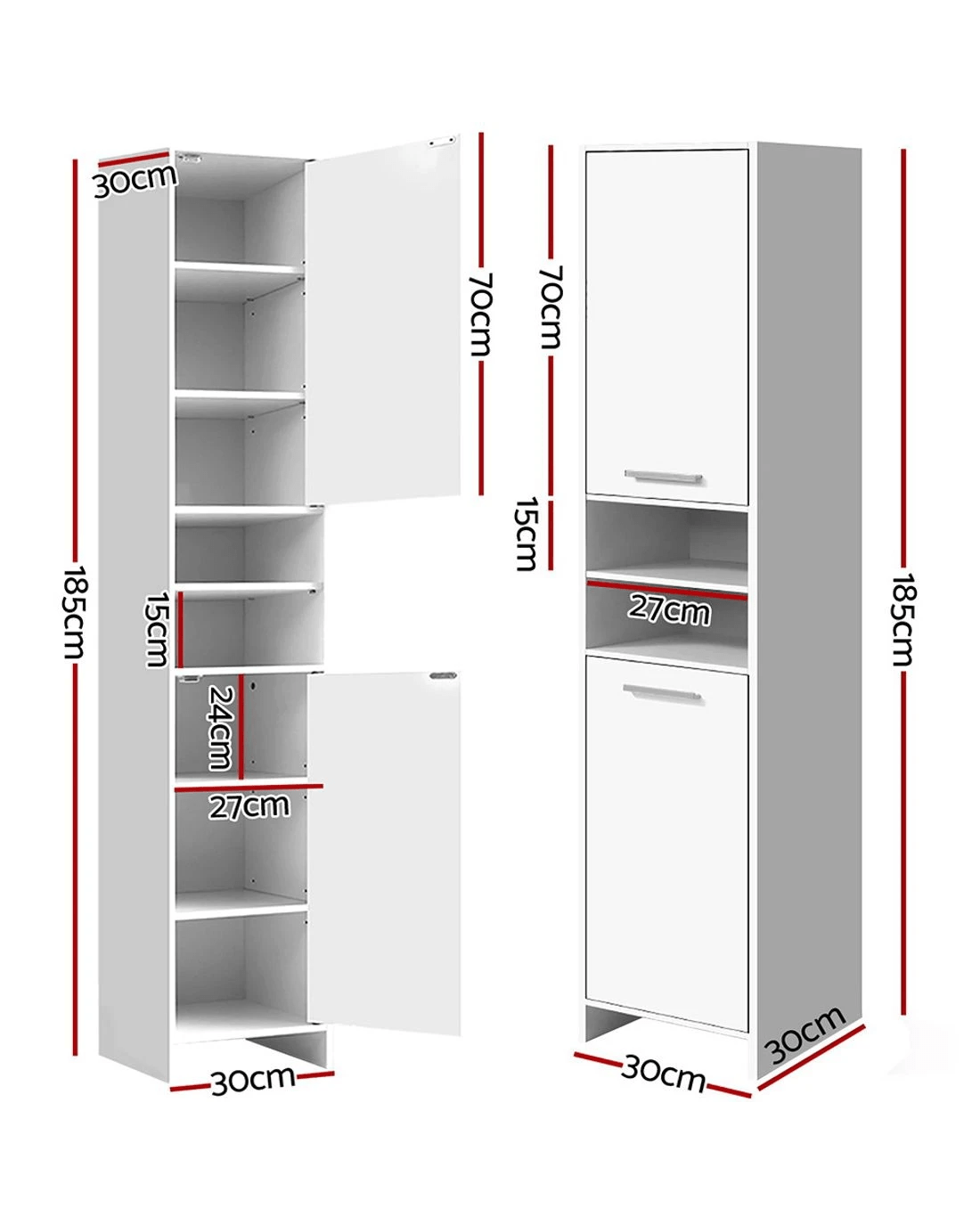 Overall dimensions: 30cm x 30cm x 185cm