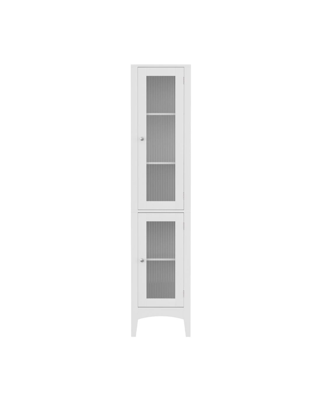 Sold by Aisle SixArtiss Bathroom Storage Cabinet 160cm Tall Slim Floor Cupboard Toilet Glass Door - White