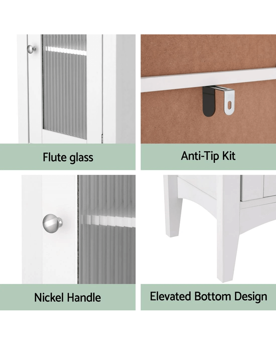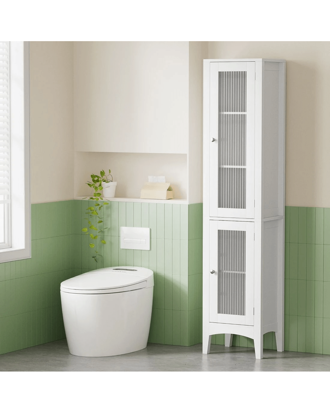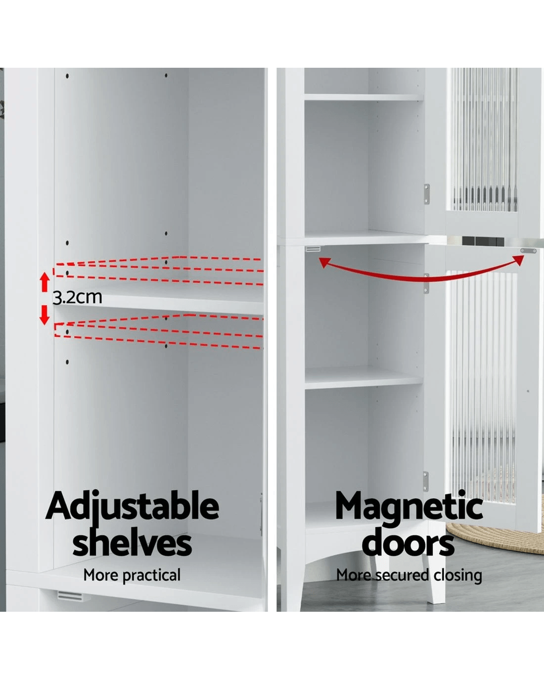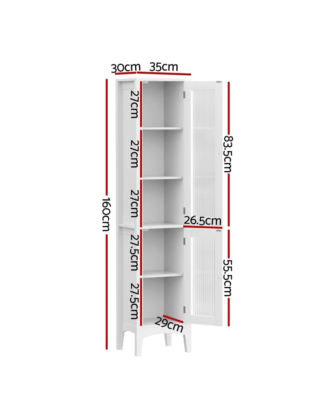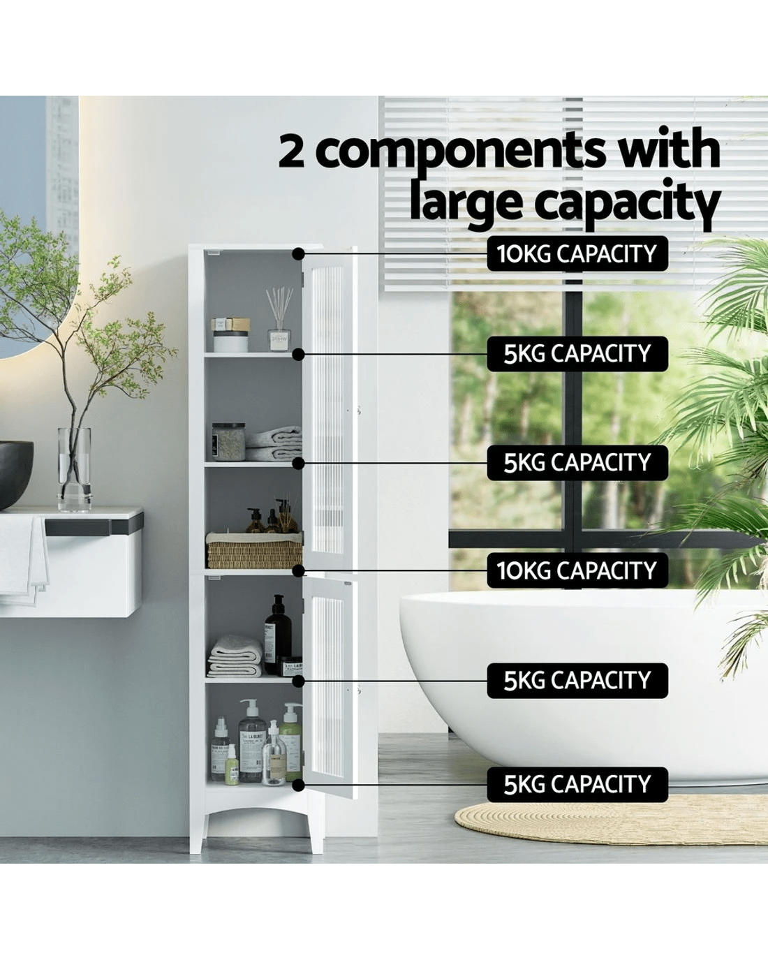 The Artiss Bathroom Storage Cabinet is the perfect space-saving solution with style and functionality. Its slim, vertical design fits seamlessly into tight spaces, while the large-capacity storage includes five-tier shelves enclosed by tempered glass doors for a modern and practical touch. The clean white finish effortlessly complements most décor styles.Crafted for durability, the cabinet is made from sturdy MDF with a painted finish that's easy to clean. Adjustable shelves inside allow for flexible storage, while the anti-toppling device and elevated base provide added stability. Magnetic doors with nickel handles ensure smooth operation, making this cabinet a versatile choice for bathrooms, bedrooms, and beyond.