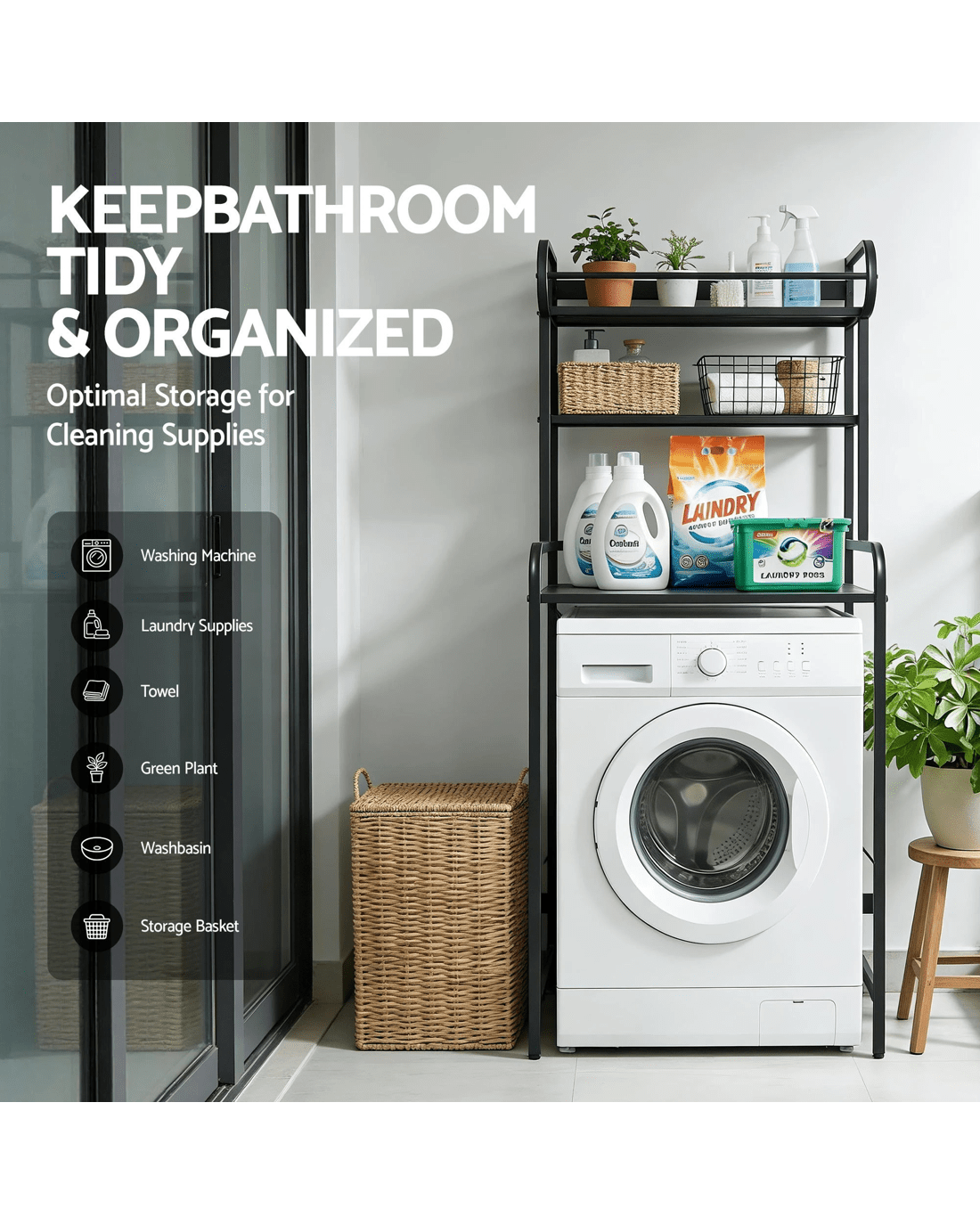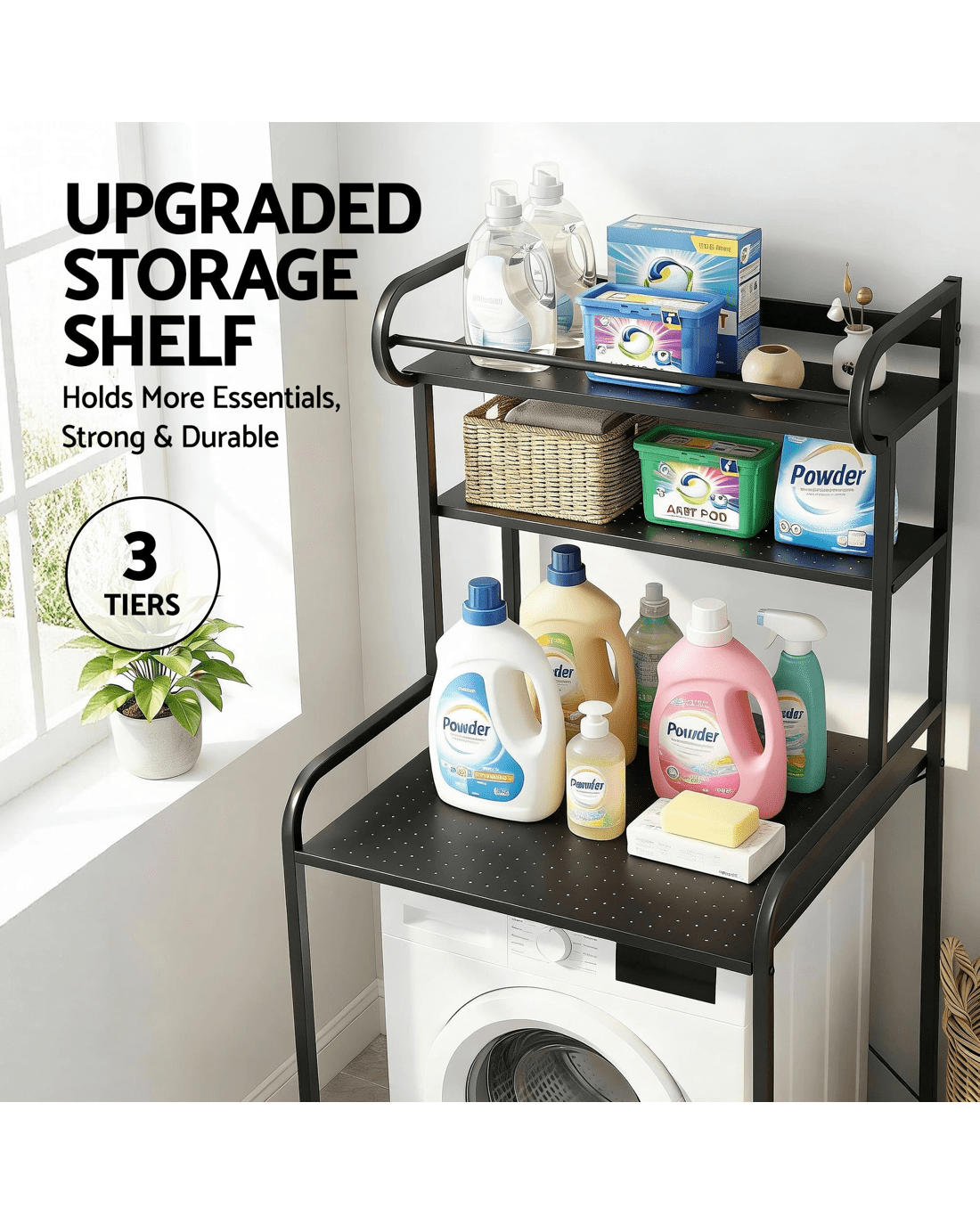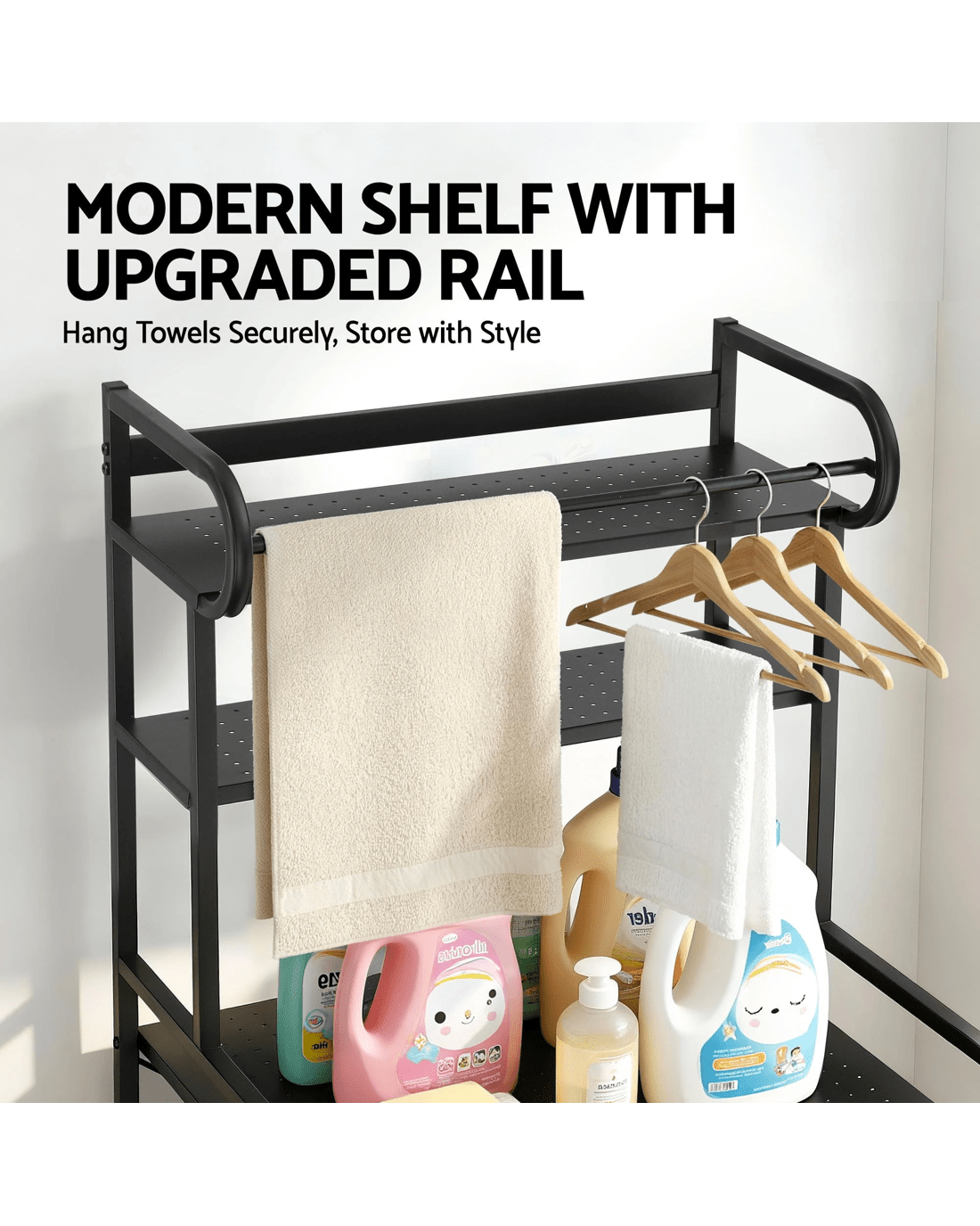 Maximise your laundry area with this Artiss over washing machine storage rack. The three wide tiers hold detergents, towels and daily essentials, while the top rail offers extra towel space. Designed with rounded corners, reinforced bracing and sturdy feet, it provides stable, long-lasting laundry storage.