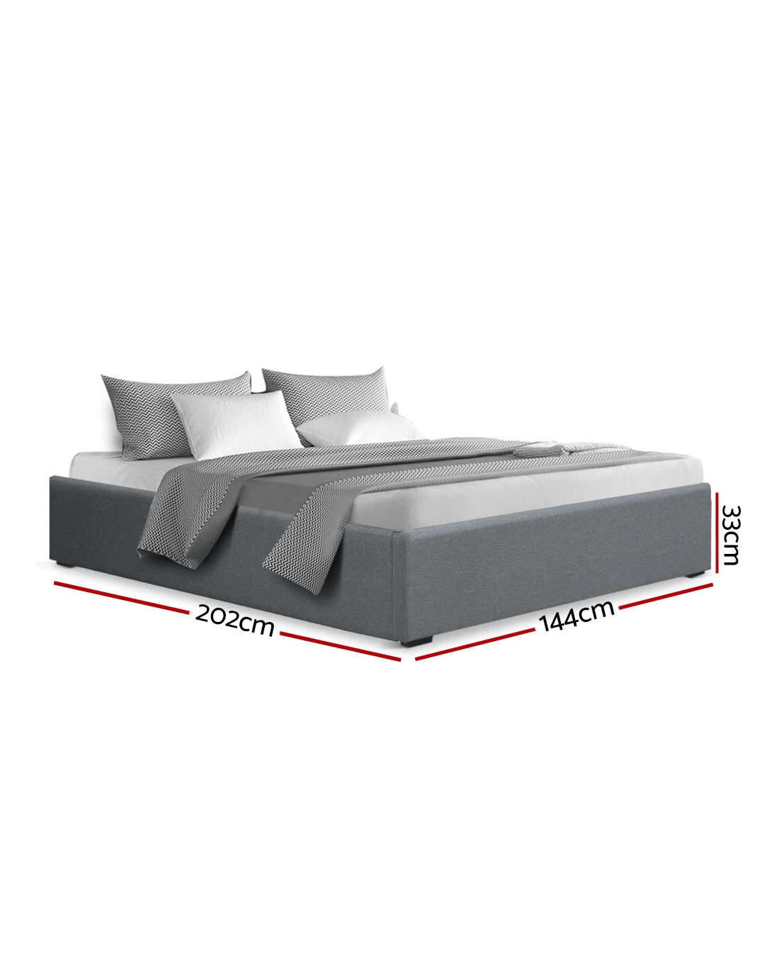 Our Toki Gas-Lift Bed Frame combines exquisite style with great storage practicality. The frame is built with reinforced steel construction while the wooden arched slat frame helps to distribute weight evenly across the framework. Heavy-duty connectors are used throughout the frame to increase its durability and reliability with long -term robust use. And for an elegant finish, the bed frame is padded with high-density foam and upholstered with premium linen fabric. Best of all, the bed frame comes with a gas-lift storage system where you will find acres of space underneath the slatted frame to store all your bedroom and home essentials. And if so desired, the bed frame can be matched with our complementary bed head for a complete look. The bed frame is designed to fit standard Australian-sized mattress.