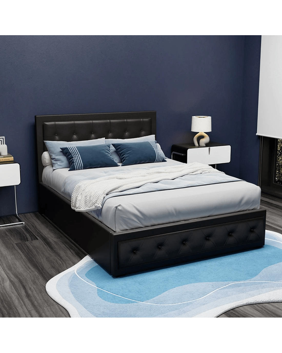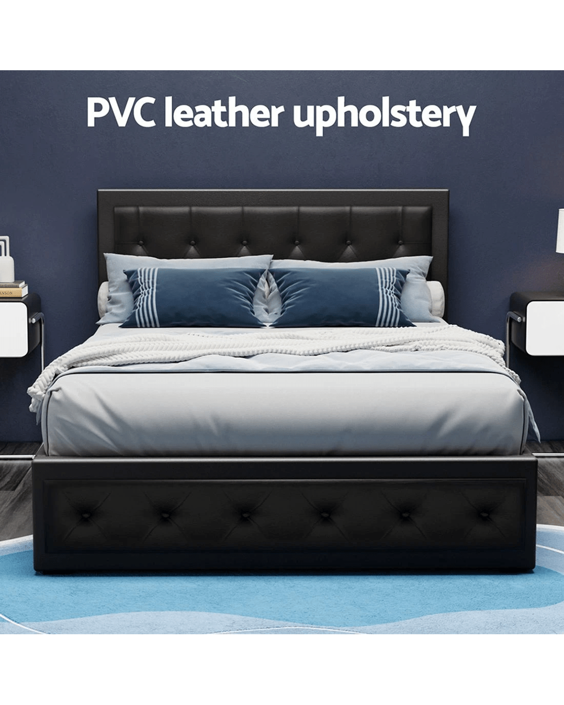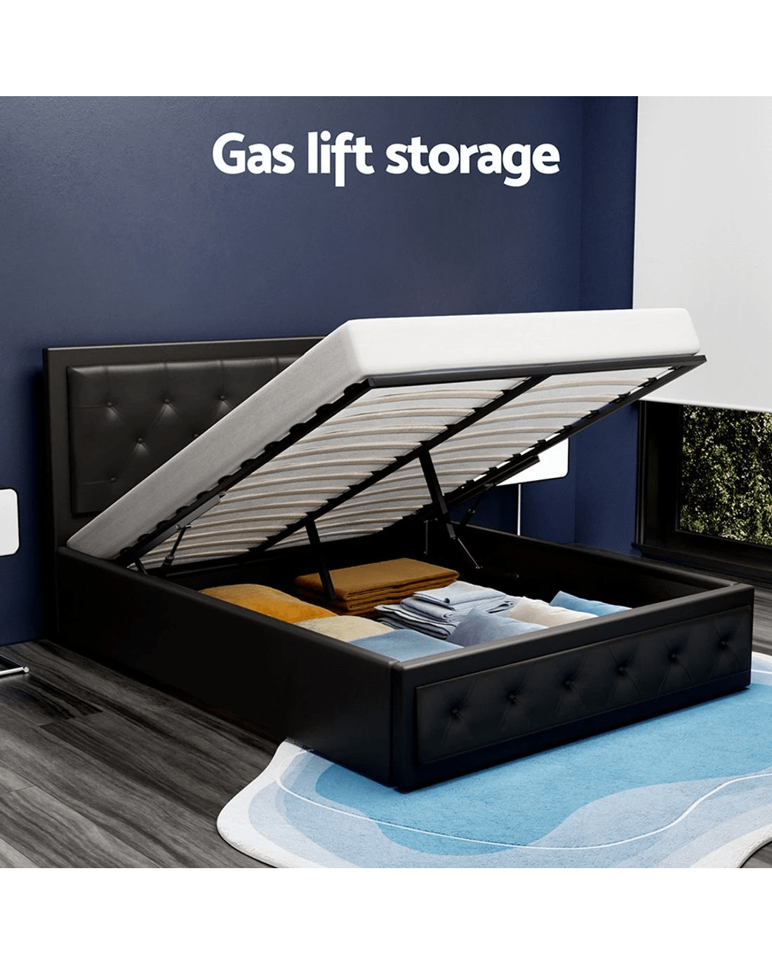 From the outside, our contemporary Artiss Tiyo Gas Lift Bed Frame looks absolutely plush. The premium PVC leather tufted headboard and sides all exudes fine craftsmanship. But there is more to this luxurious bed frame than meets the eye. Lift up the frame and you will find acres of storage space under the wooden arched slat base. The gas lift system and hand strap enable you to effortlessly lift the bed to store all your seasonal beddings and linen such as extra quilts, pillows and comforters and more. The wooden arched slat base is also designed to flex appropriately so that it can better distribute the weight exerted on it. Overall, the bed frame is well-built with reinforced steel bars within its sturdy steel frame. Heavy-duty metal connectors keep the frame sturdy with additional central support from an adjustable centre support beam. Enjoy your wonderful sleep in more ways than one with our innovative Tiyo Gas Lift Bed Frame.