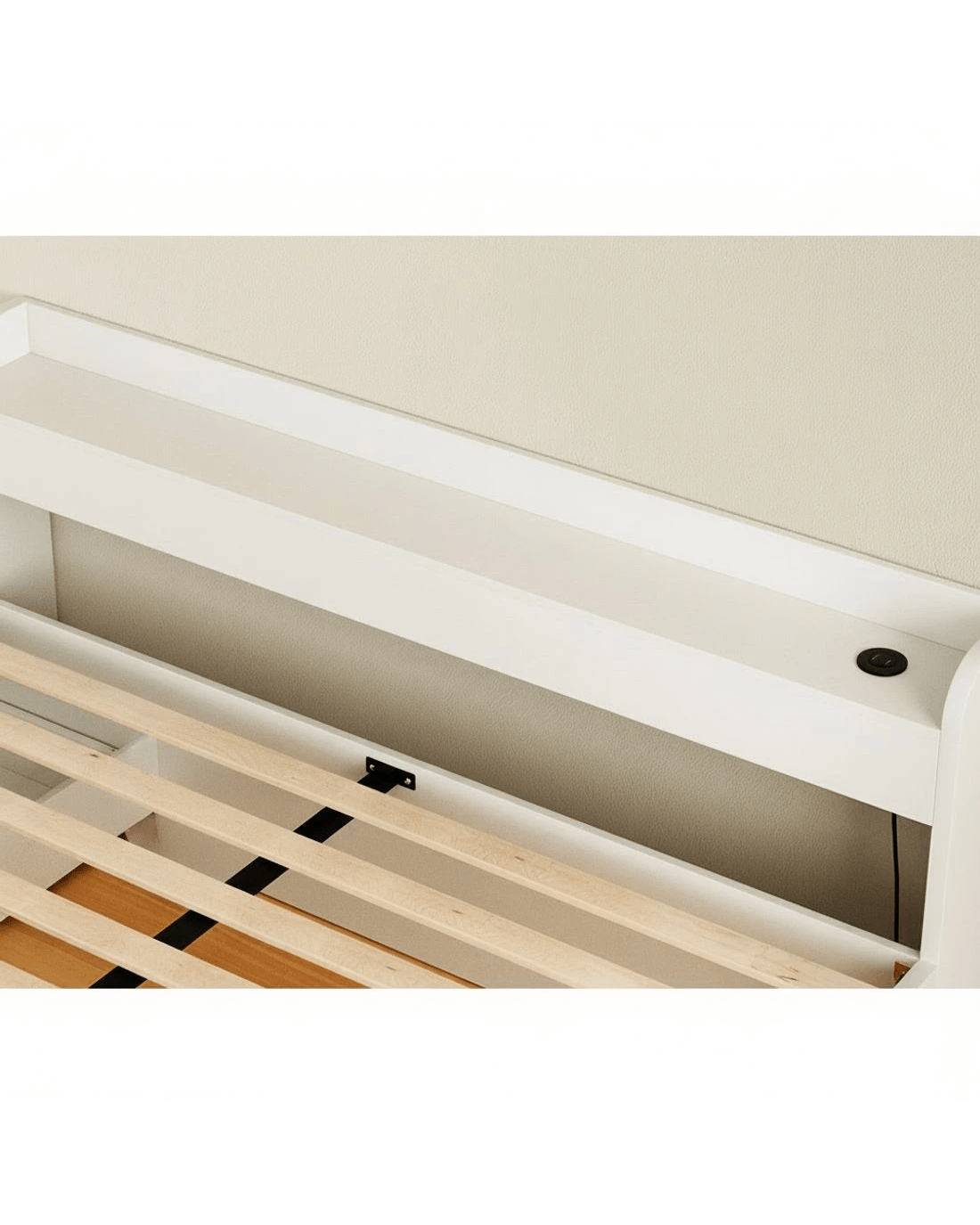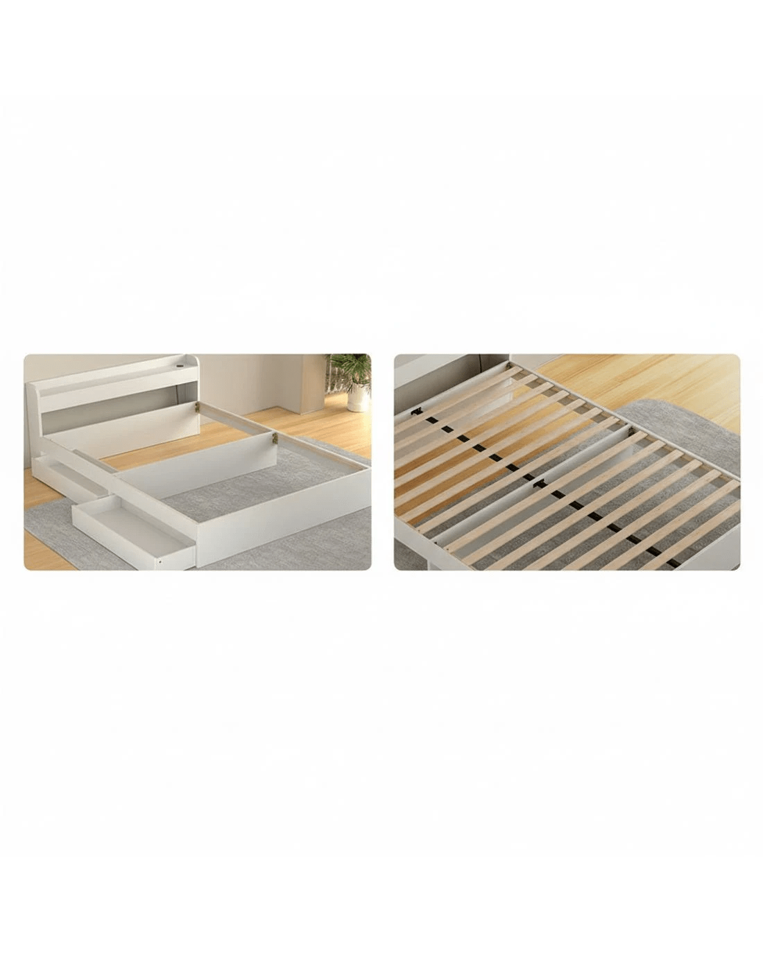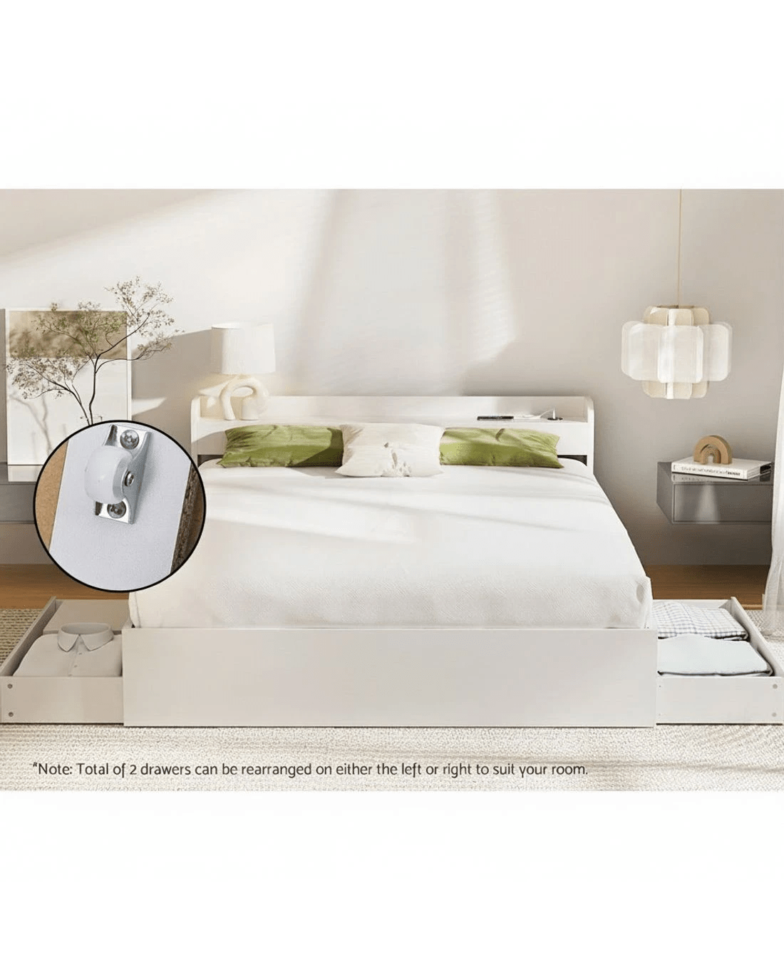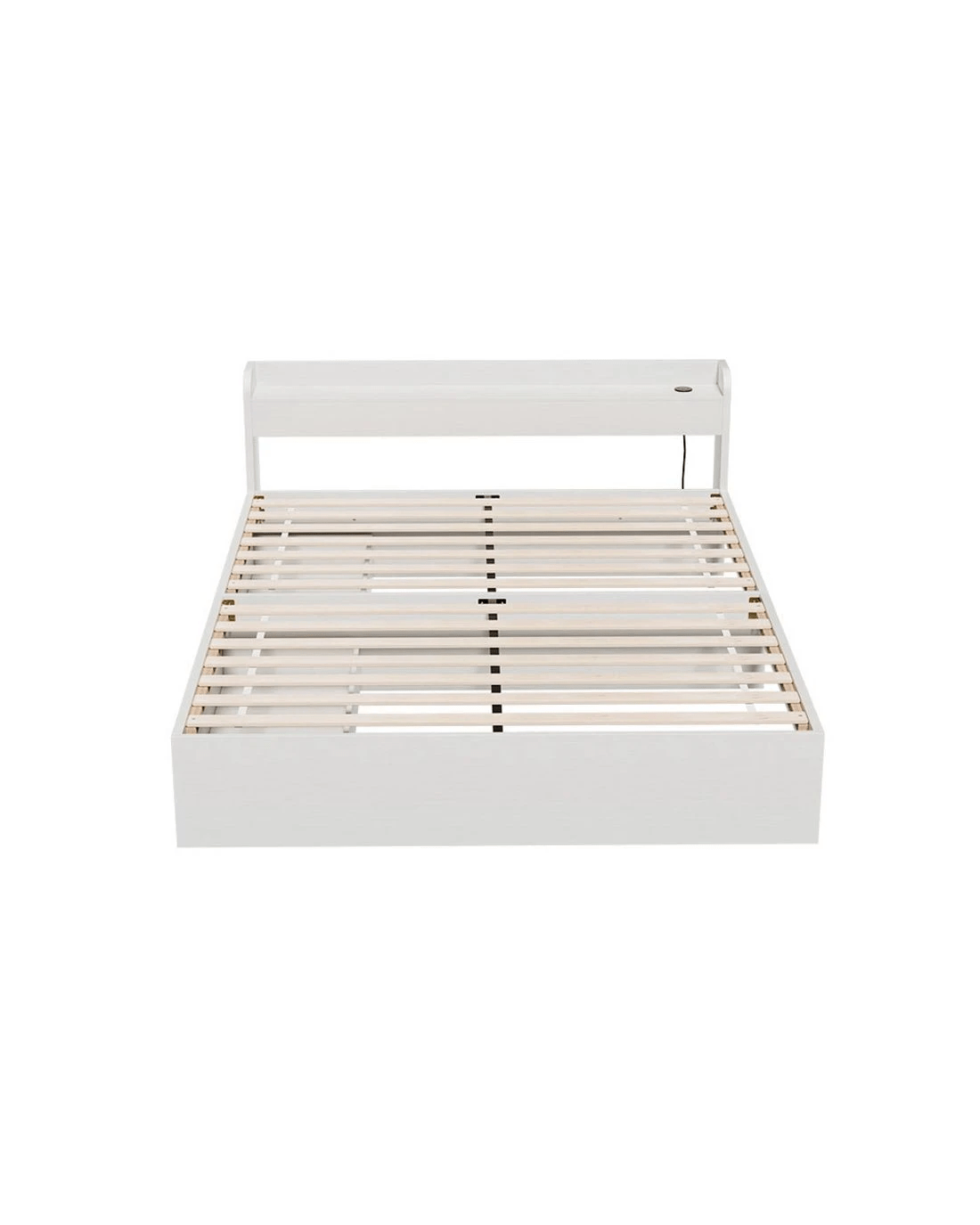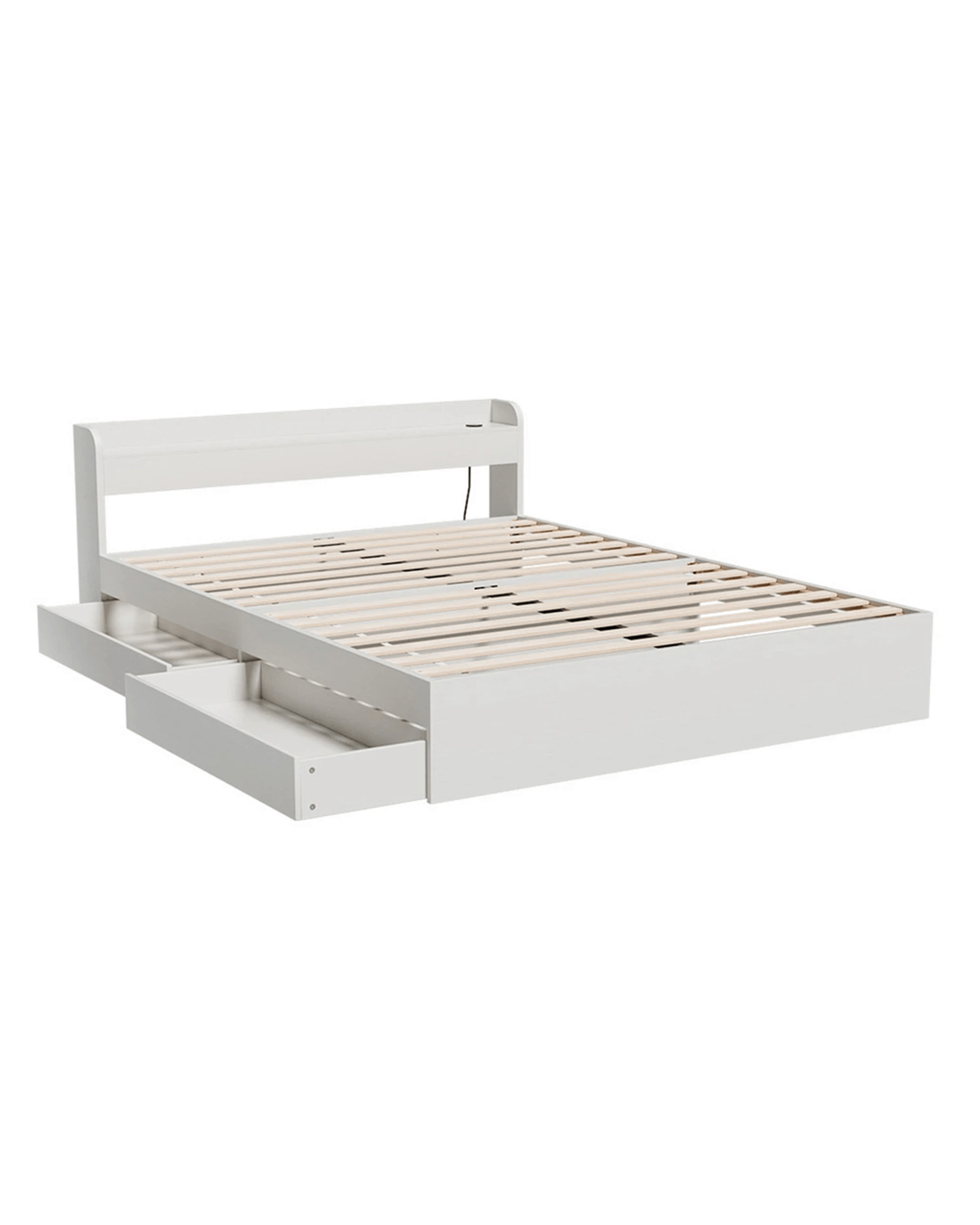 Sold by Aisle SixArtiss Bed Frame Double Size with Charging Ports and 2 Drawers AURA - White