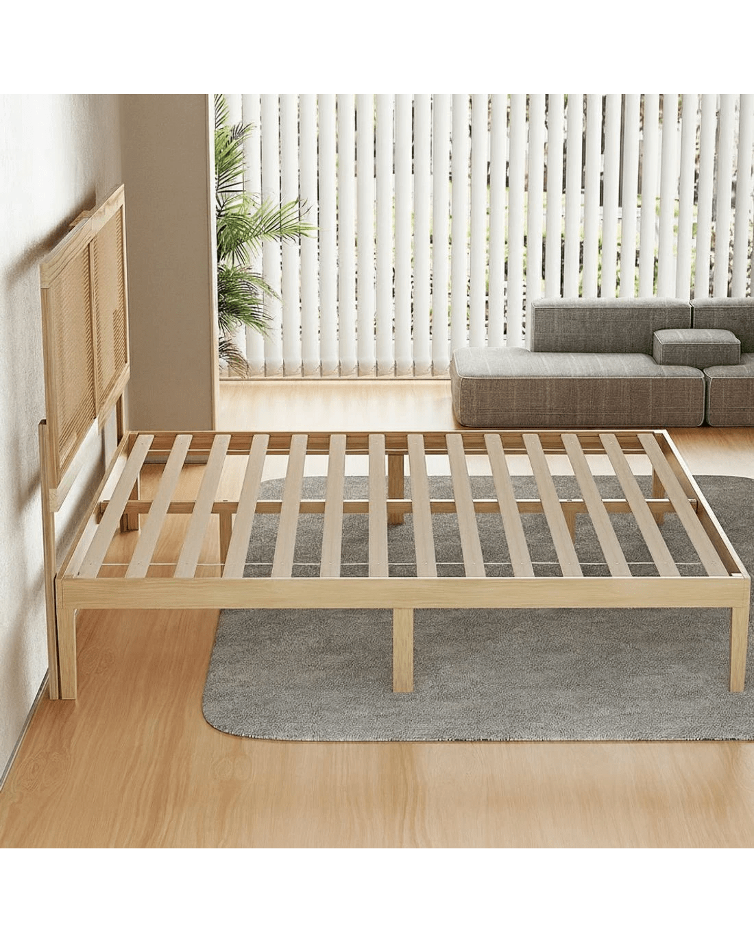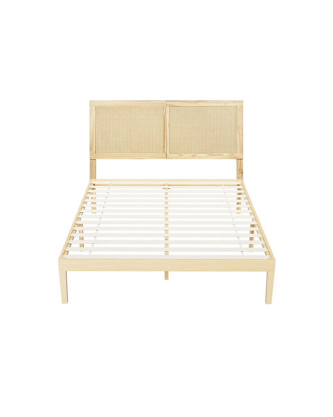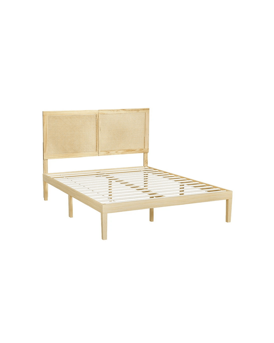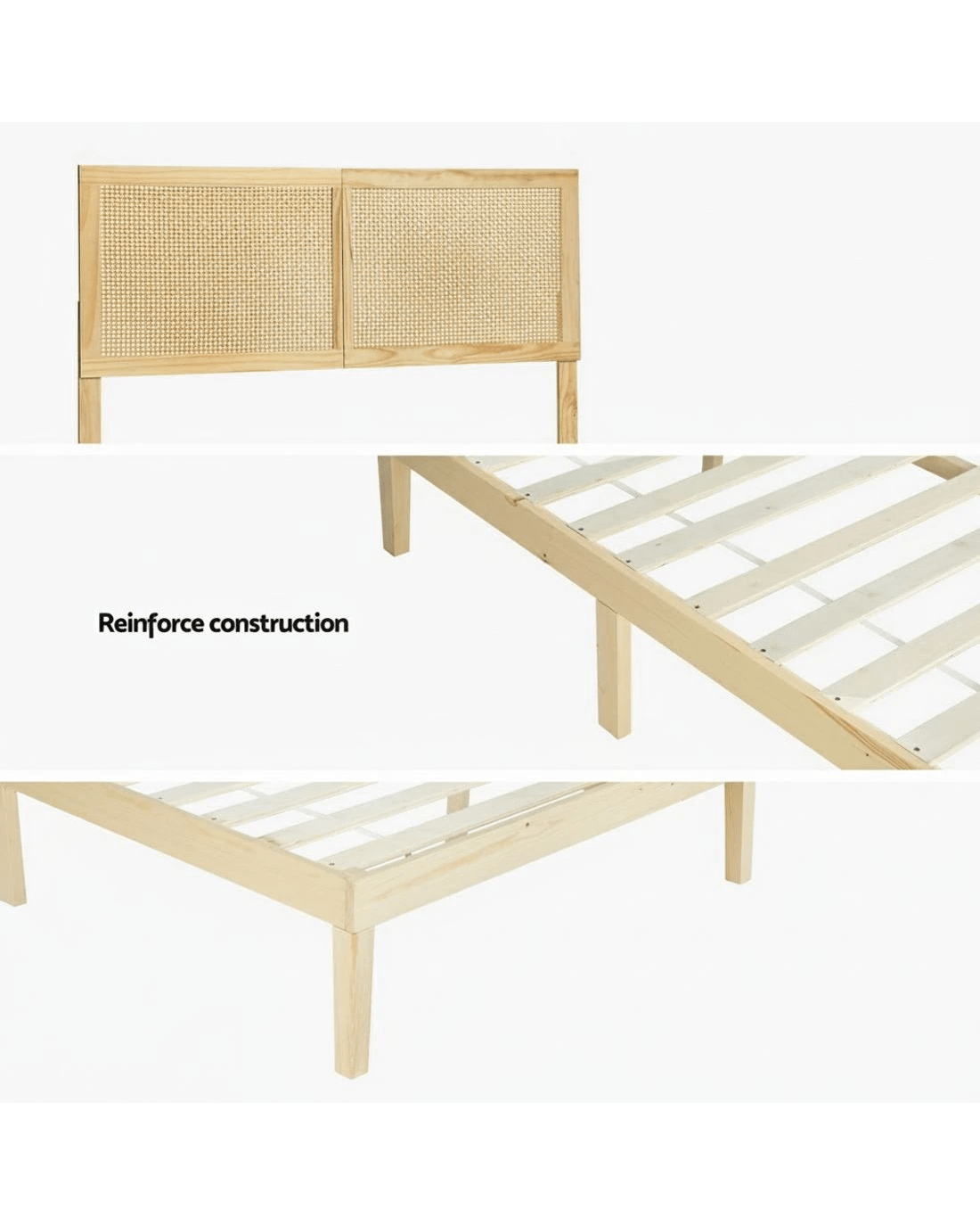 Solid pinewood frame with Rattan Headboard