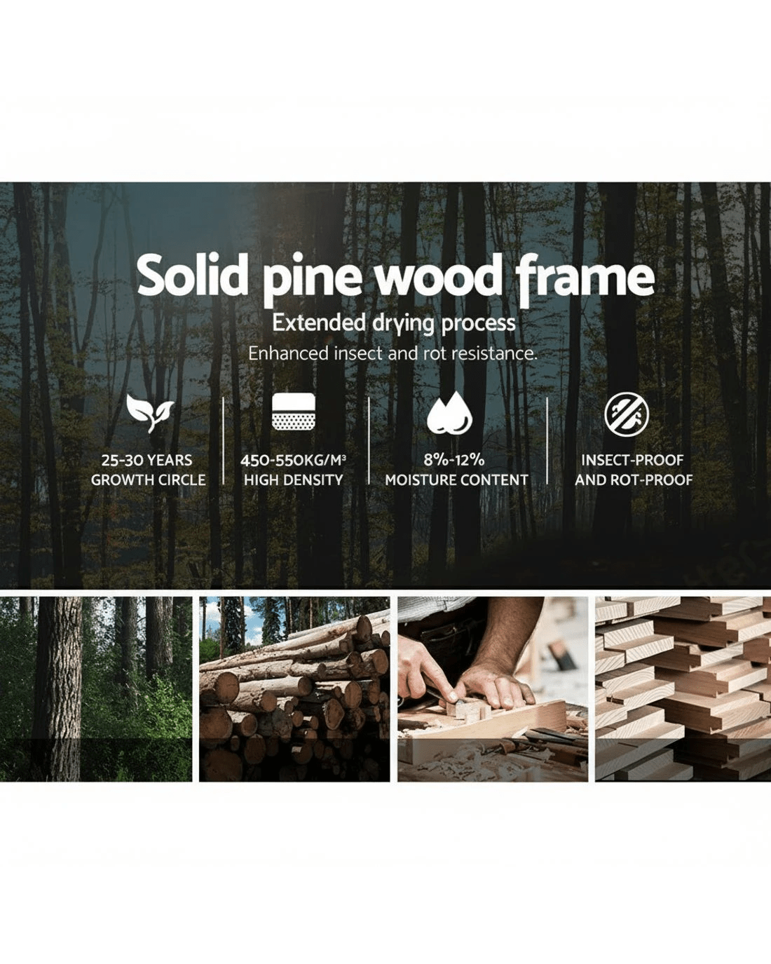 Bed frame material: Pine wood