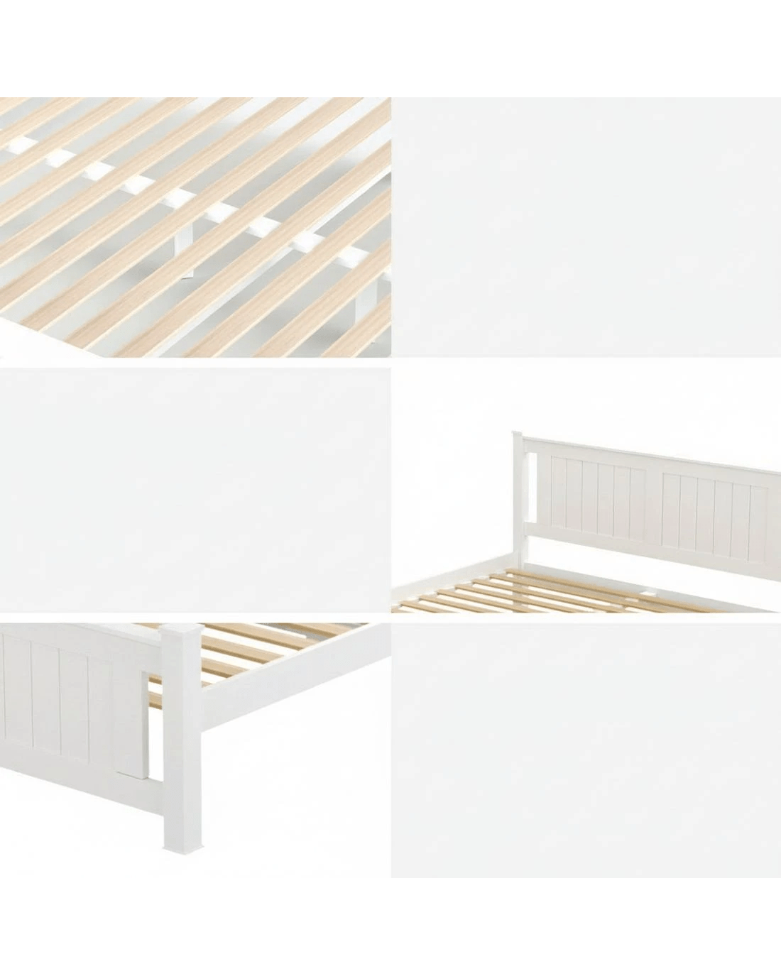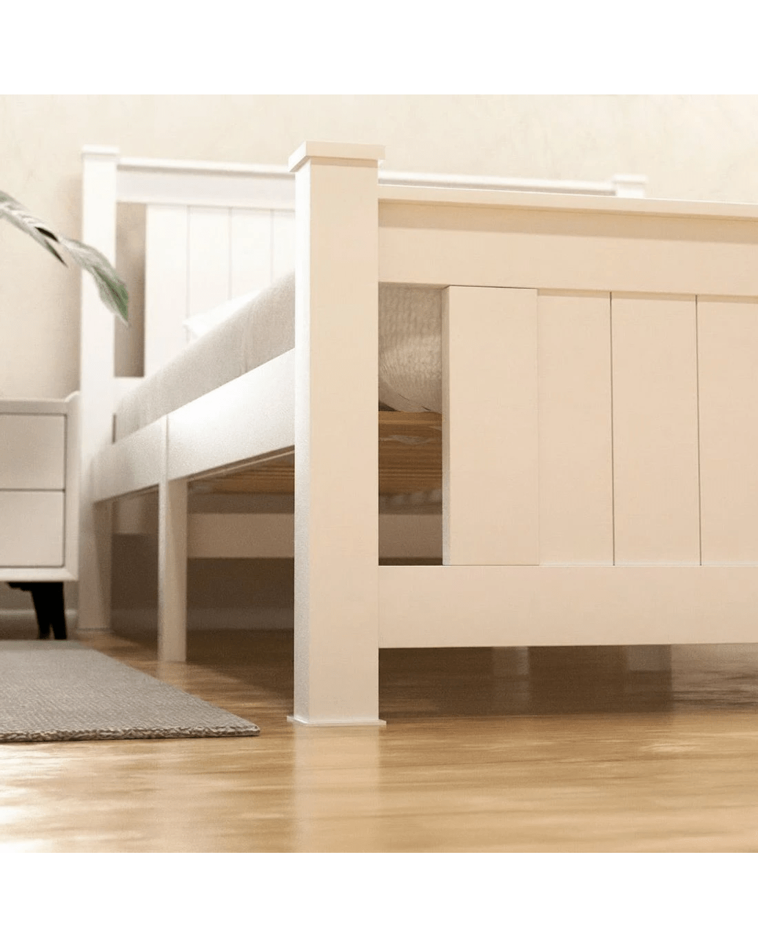Made of natural pine wood, the Rio bed frame is ideal for your kids as it for any adult. Strong and sturdy, the bed frame comes with a solid timber slated base, stylish headboard, heavy duty steel fixings and smooth edges all round. Finished in a non-toxic, eco-friendly white paint, the neutral coloured bed frame makes for easy décor coordination with any bedroom. So, the next time you need a durable and contemporary bed frame that has quality written all over it, make it a Rio bed frame from ozplaza.living. We make living great.The bed frame with two storage drawers provides additional space for storing bedding essentials.