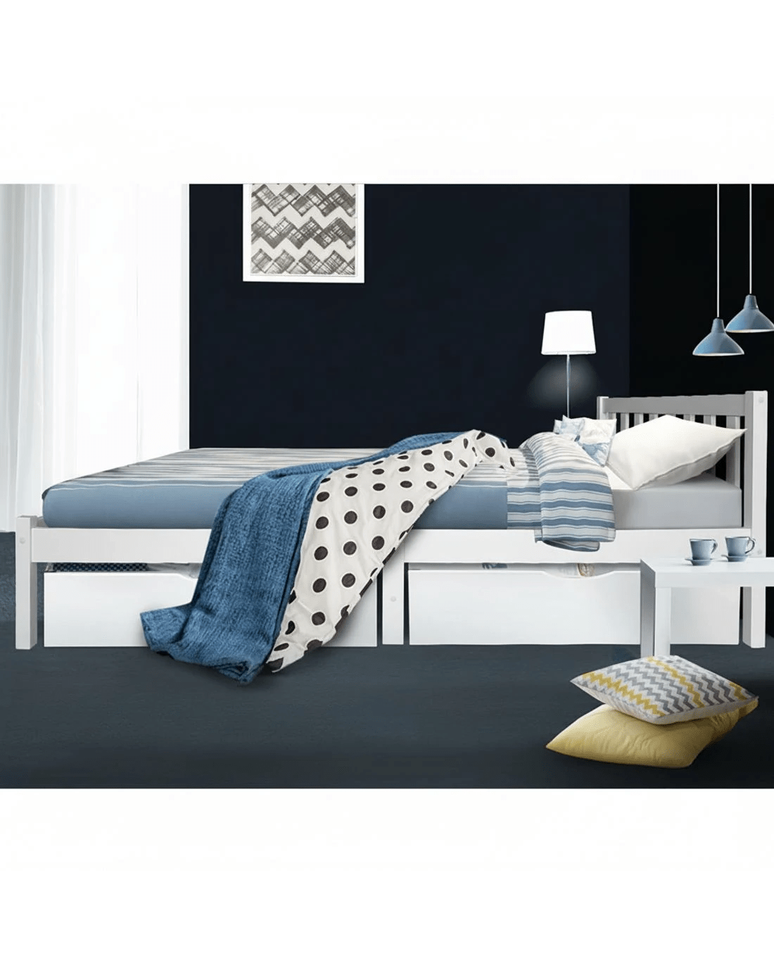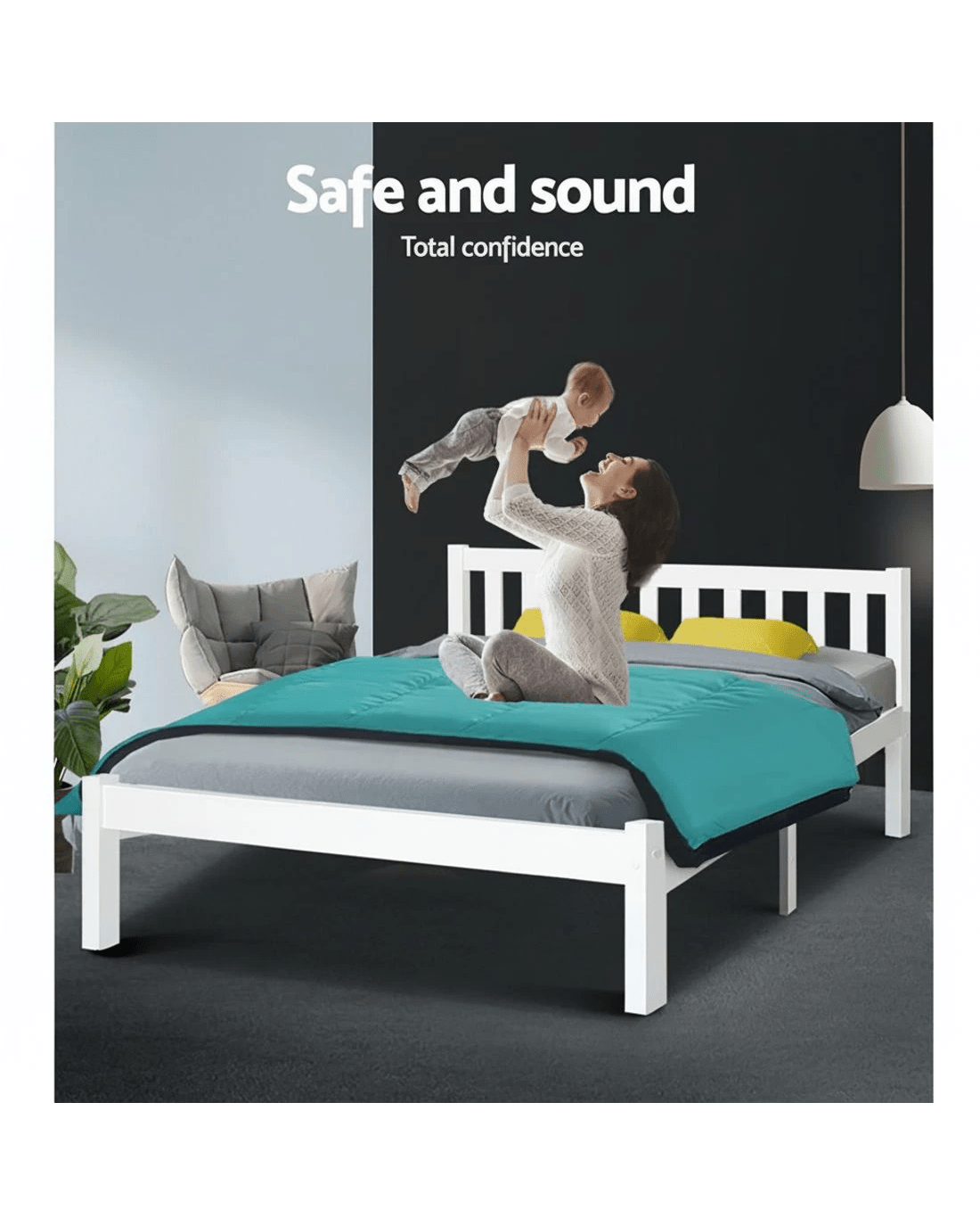 Made of solid pine wood, the Sofie Bed Frame is an all-round functional design that is compatible with most Australian sized mattresses and ideal for use by both young and old alike.