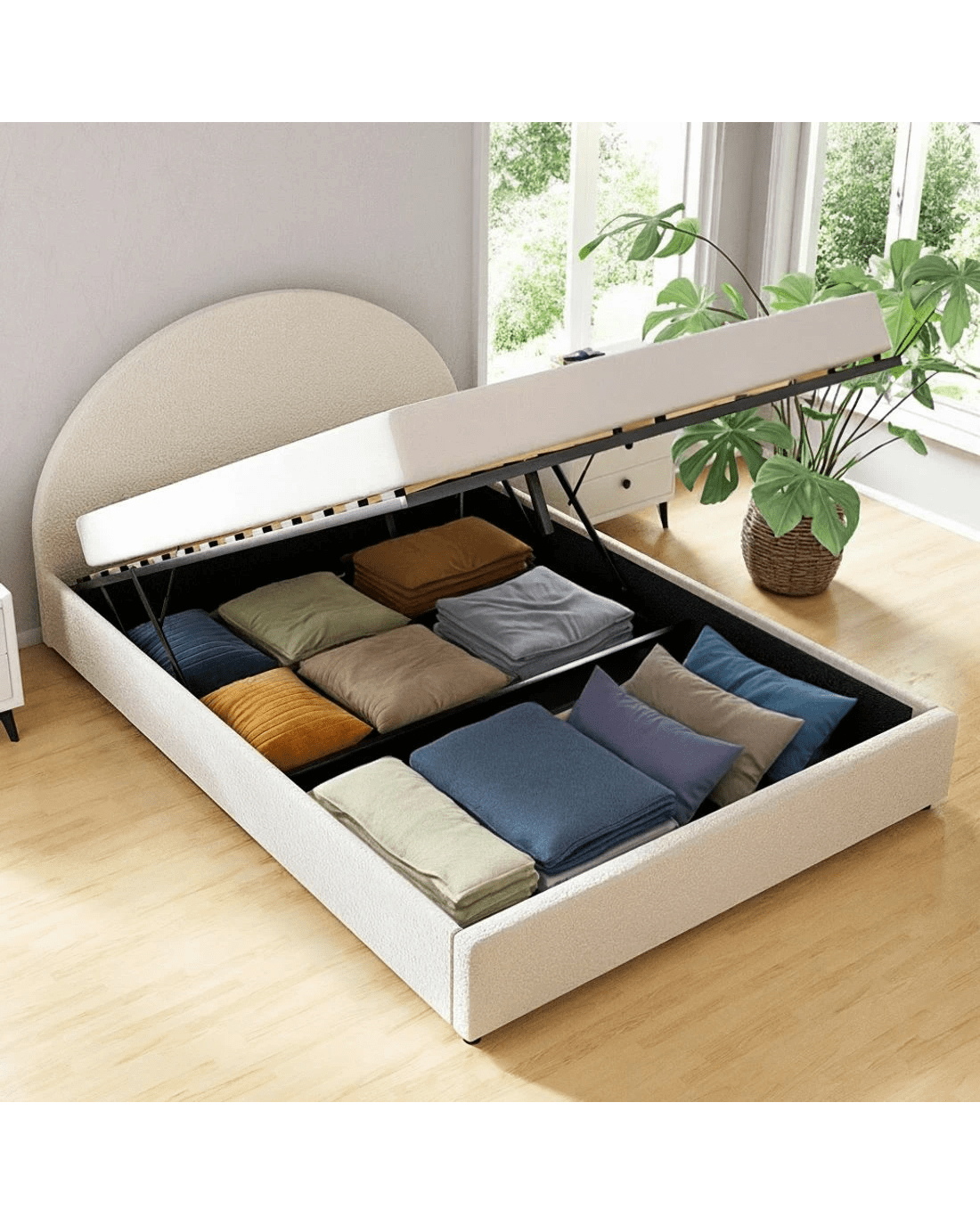 Artiss Bed Frame Gas Lift Strorage Beds Base Platform Boucle Fabric Queen ELLA - Beige