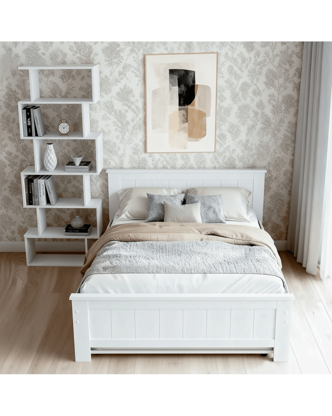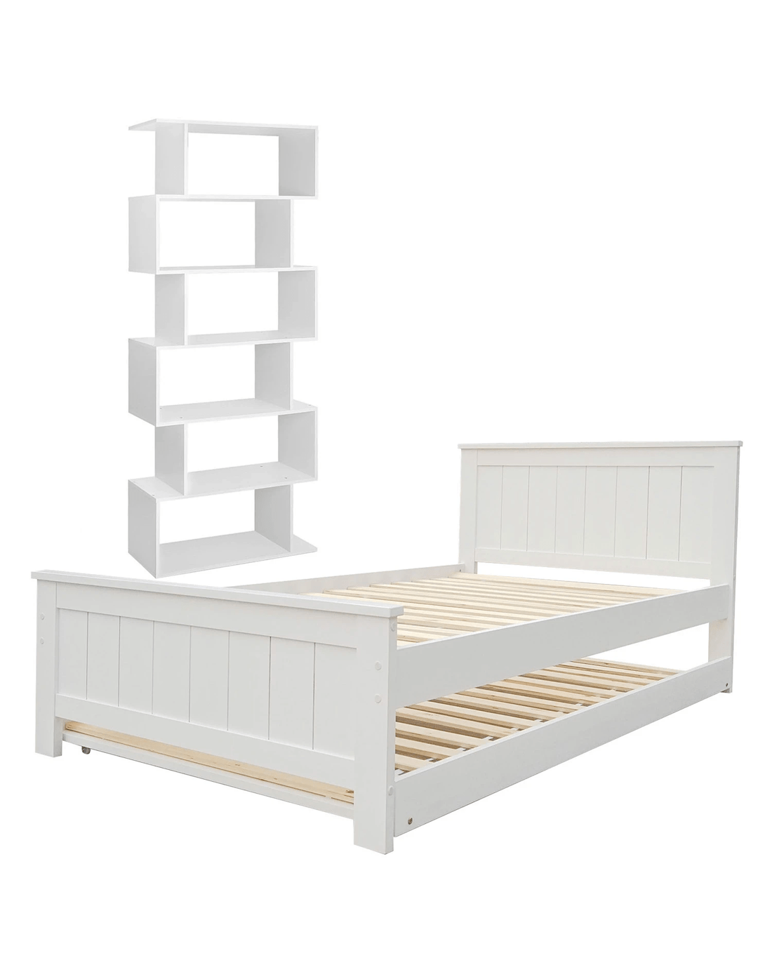 Artiss Elvis Trundle Bed and S-Shape Display Shelf Set