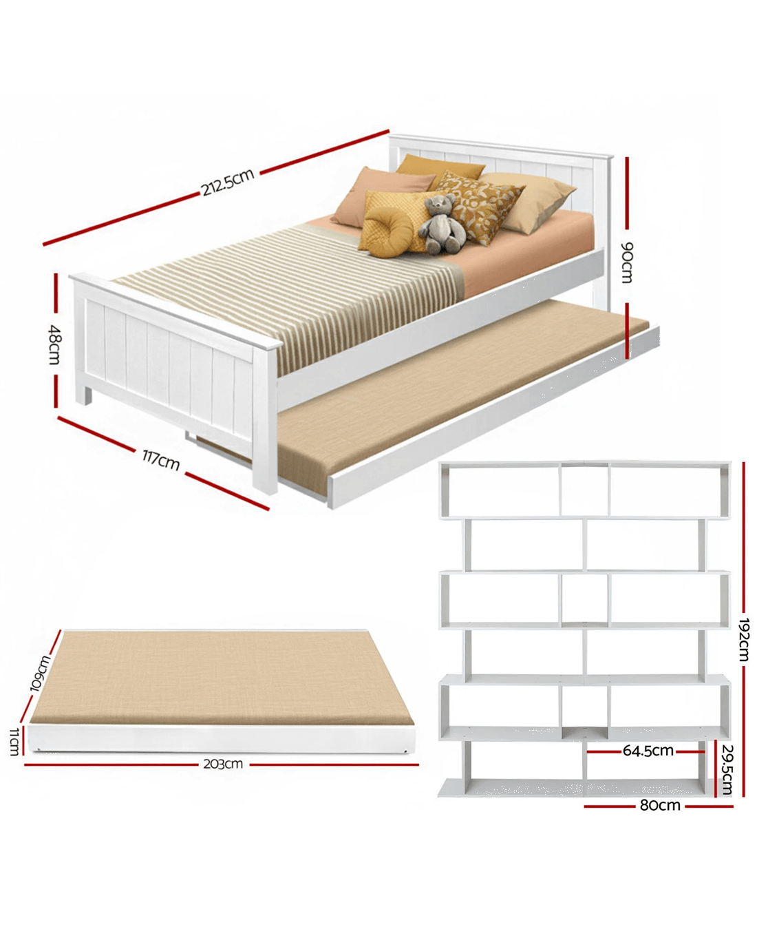Bottom trundle dimensions: 203cm x 109cm x 11cm