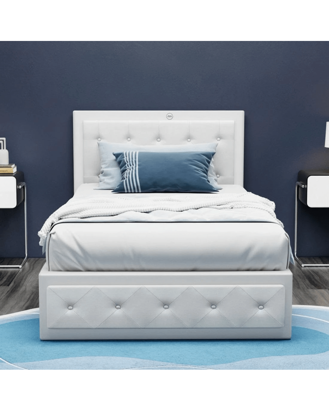 Sold by Aisle SixArtiss Bed Frame King Single Size Gas Lift TIYO - White