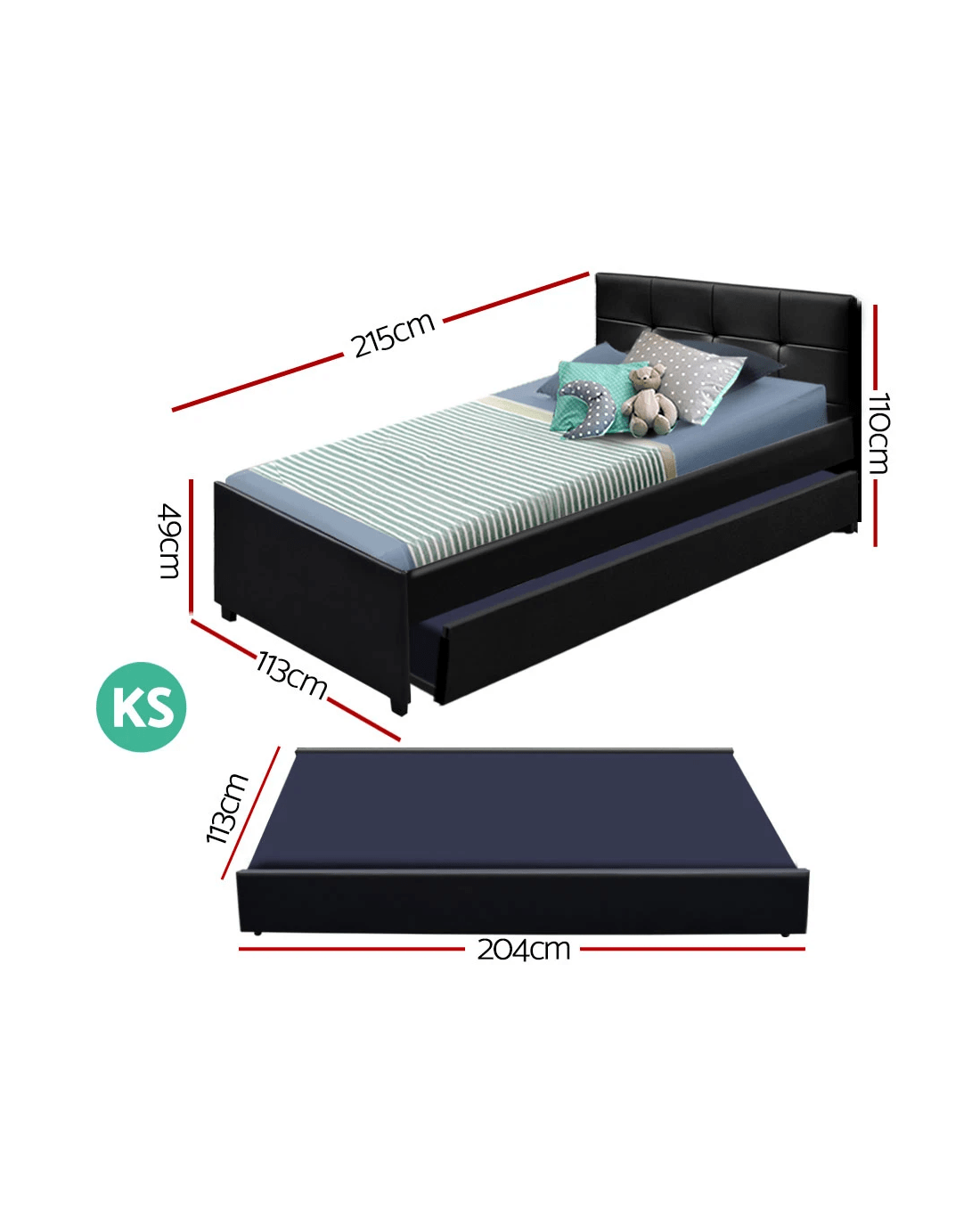 Sold by Aisle SixArtiss Bed Frame King Single Size Trundle Daybed - Black
