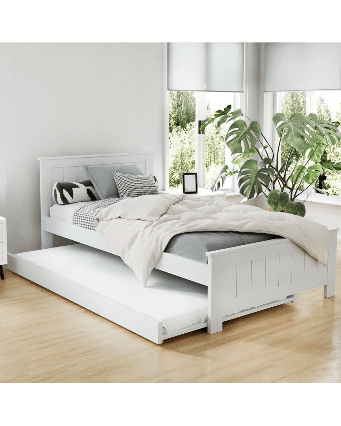 Sold by Aisle SixArtiss Bed Frame King Single Size Wooden Trundle Daybed ELVIS - White