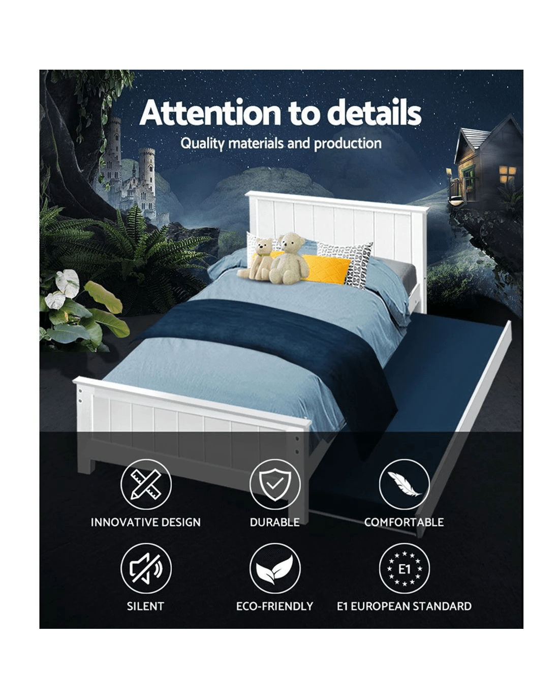Pull-out trundle bed – can be slide out either side